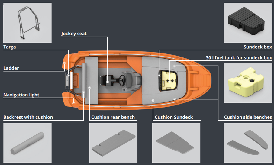 Deze variant is speciaal ontworpen met verhuur in gedachten. Zijn robuuste constructie van polyethyleen met 3-laags sandwichtechnologie maakt de boot praktisch onverwoestbaar en hufterproof – ideaal voor intensief gebruik. Bovendien is de boot vrijwel onderhoudsvrij, wat betekent dat verhuurbedrijven minimale inspanning nodig hebben om hem in topconditie te houden.