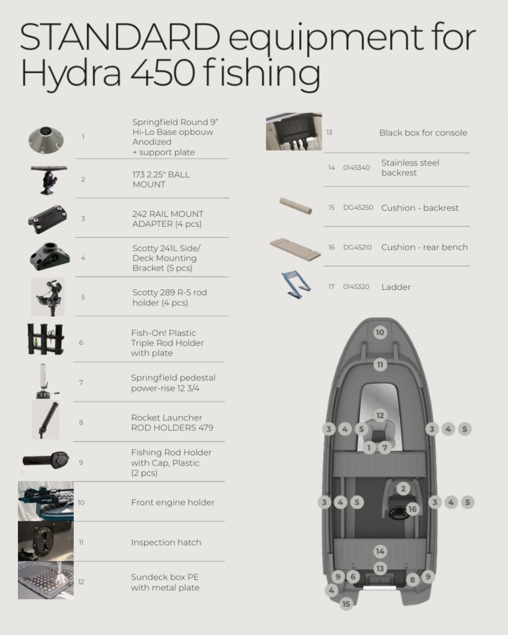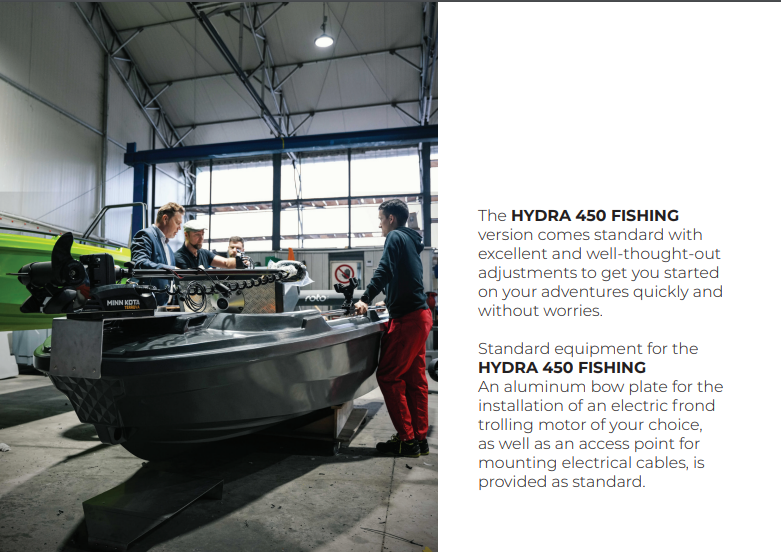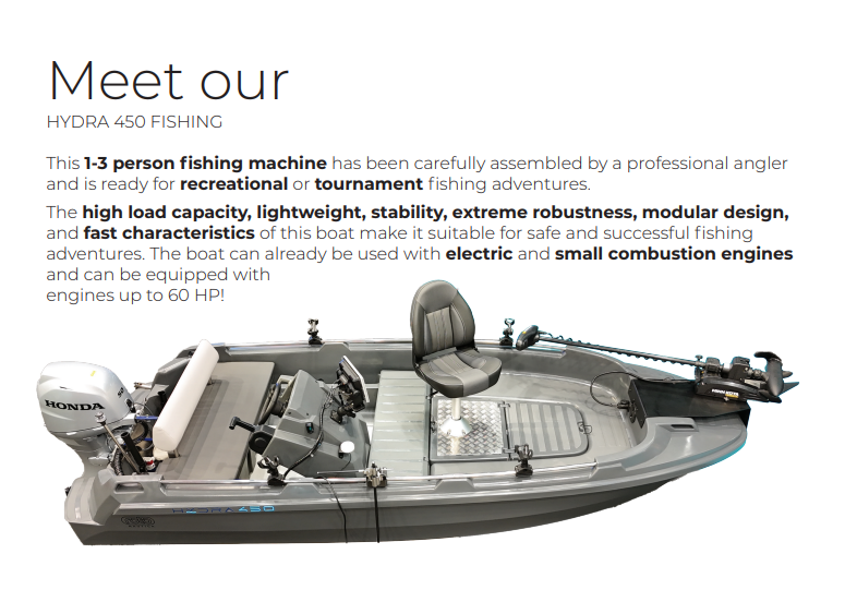 Ben je op zoek naar een krachtige, stabiele en veelzijdige visboot voor recreatief of wedstrijdvissen? Maak kennis met de HYDRA 450 FISHING – een zorgvuldig geassembleerde visboot, ontwikkeld door een professionele visser.