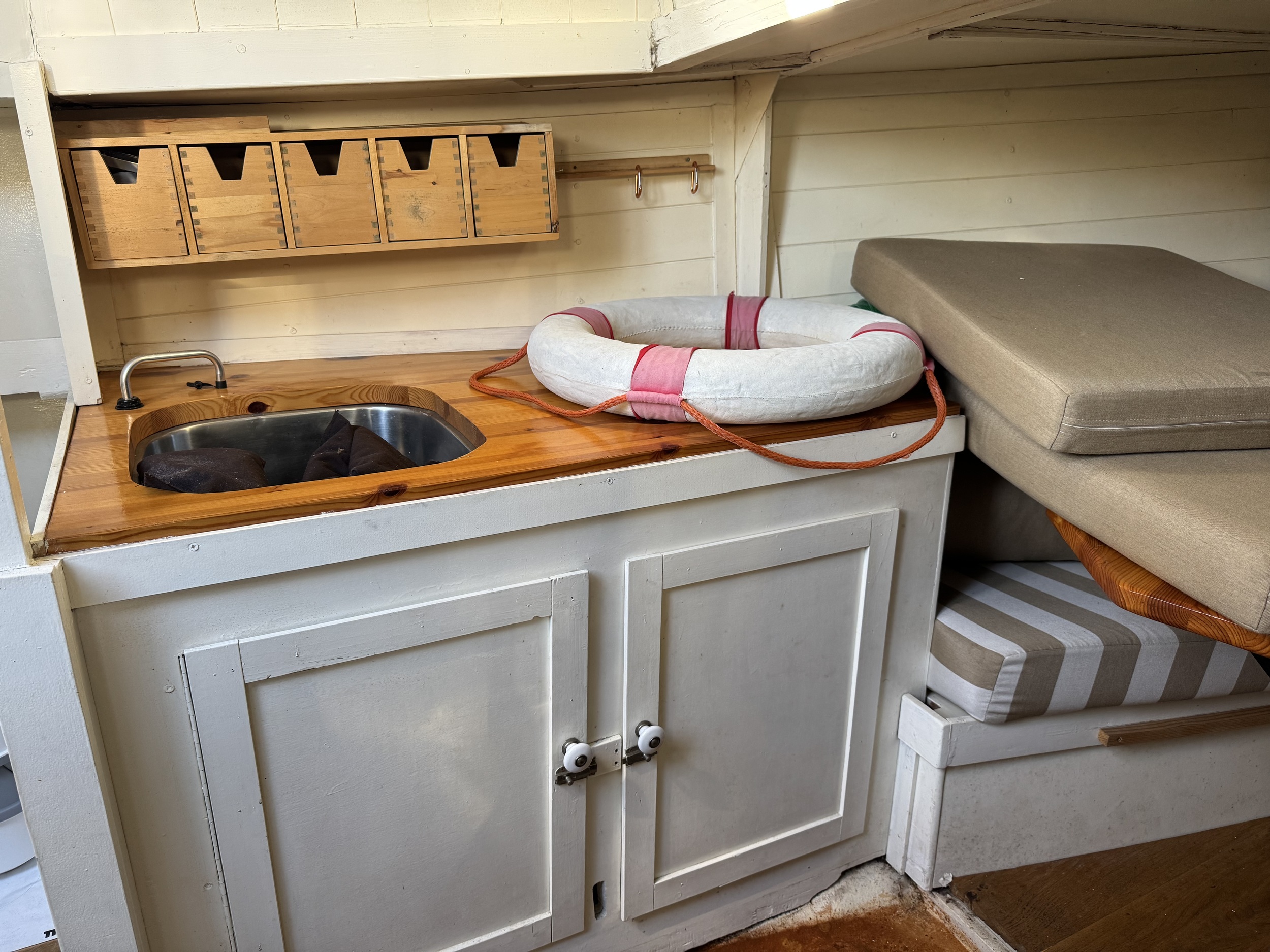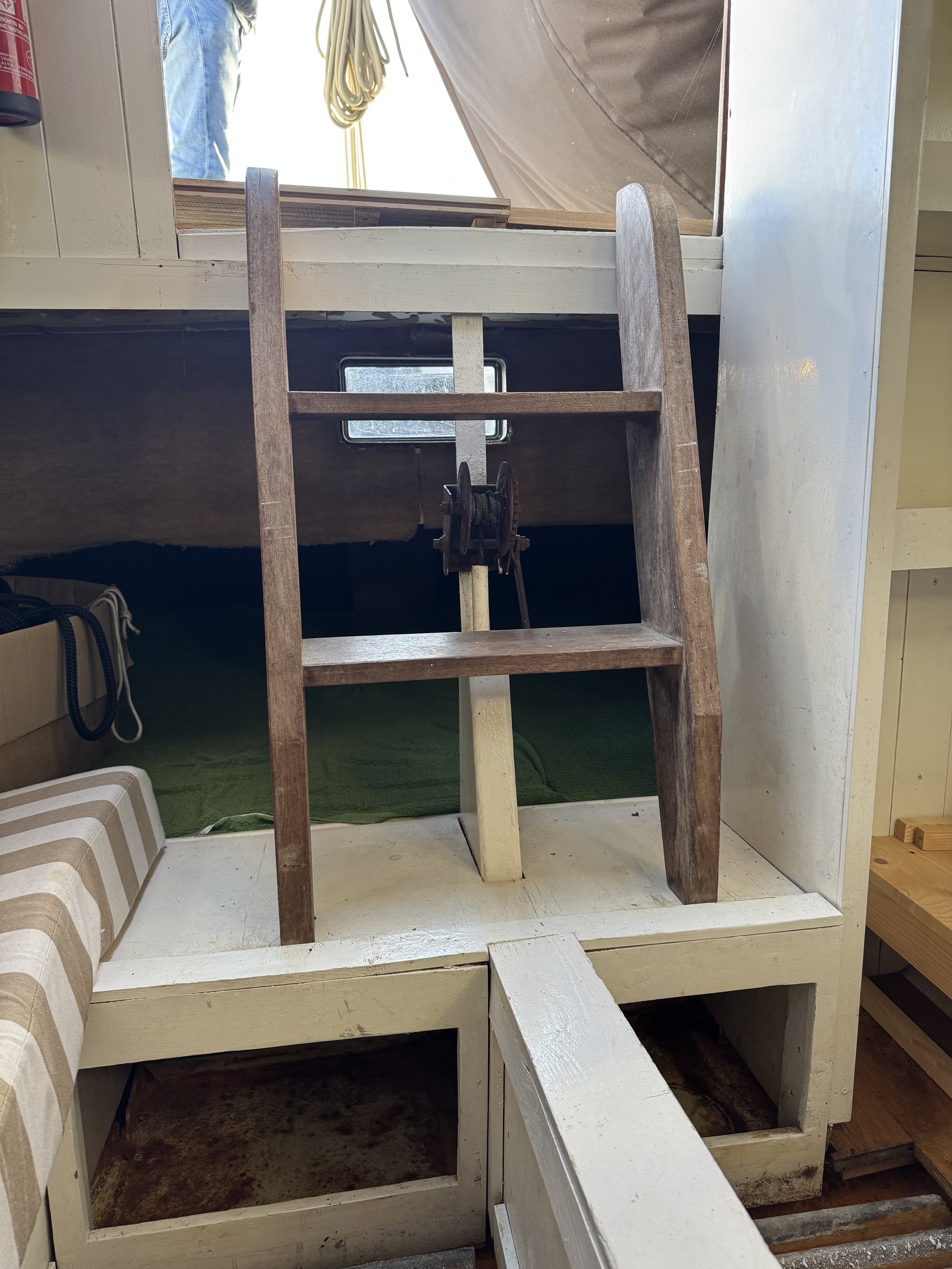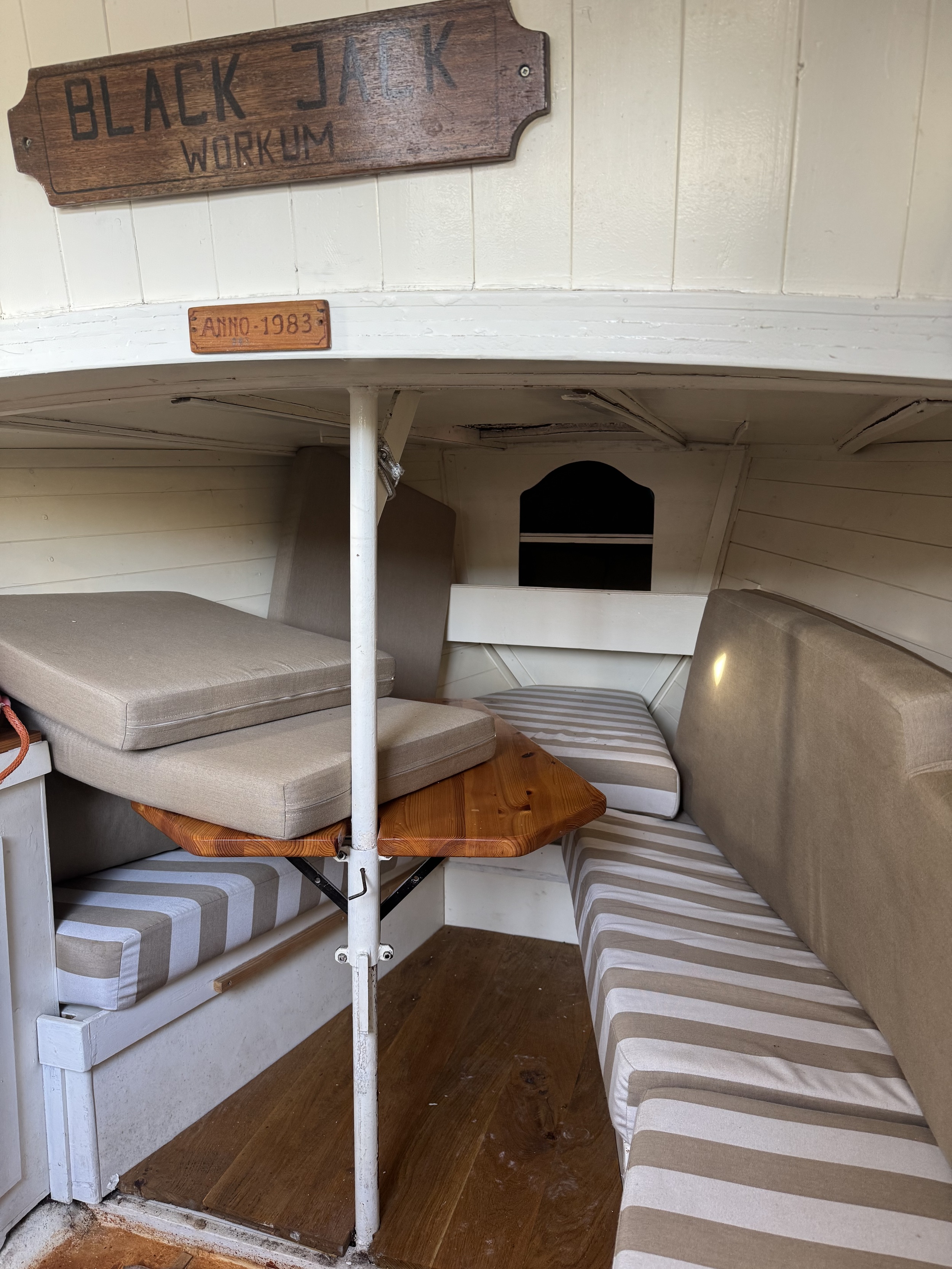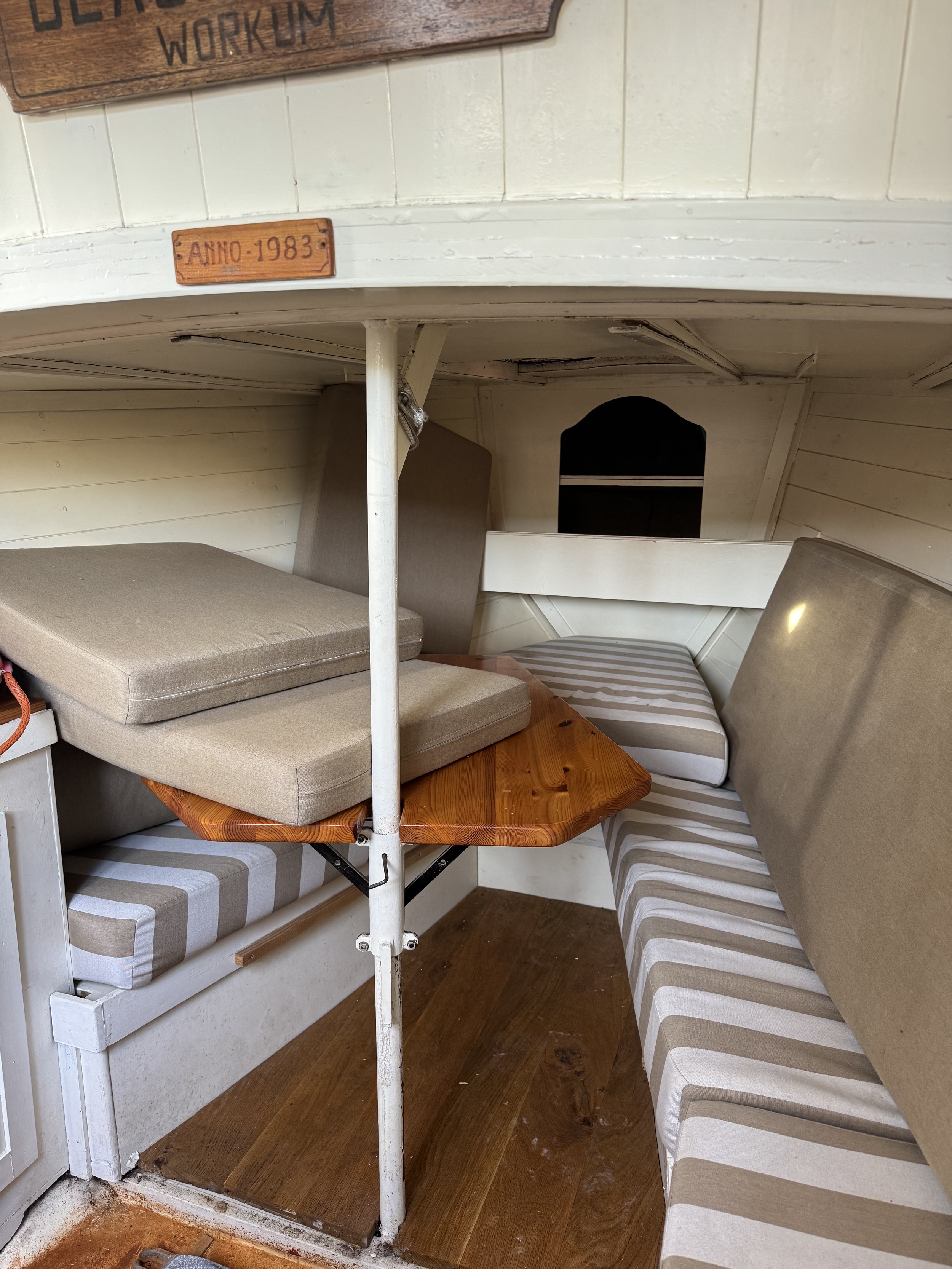 De boot verkeert in opknapstaat: de binnenkant en uitrusting moeten geheel worden vernieuwd. Luxe is er niet – dit is een pure, eerlijke zeiler die wacht op iemand die haar weer tot leven brengt.