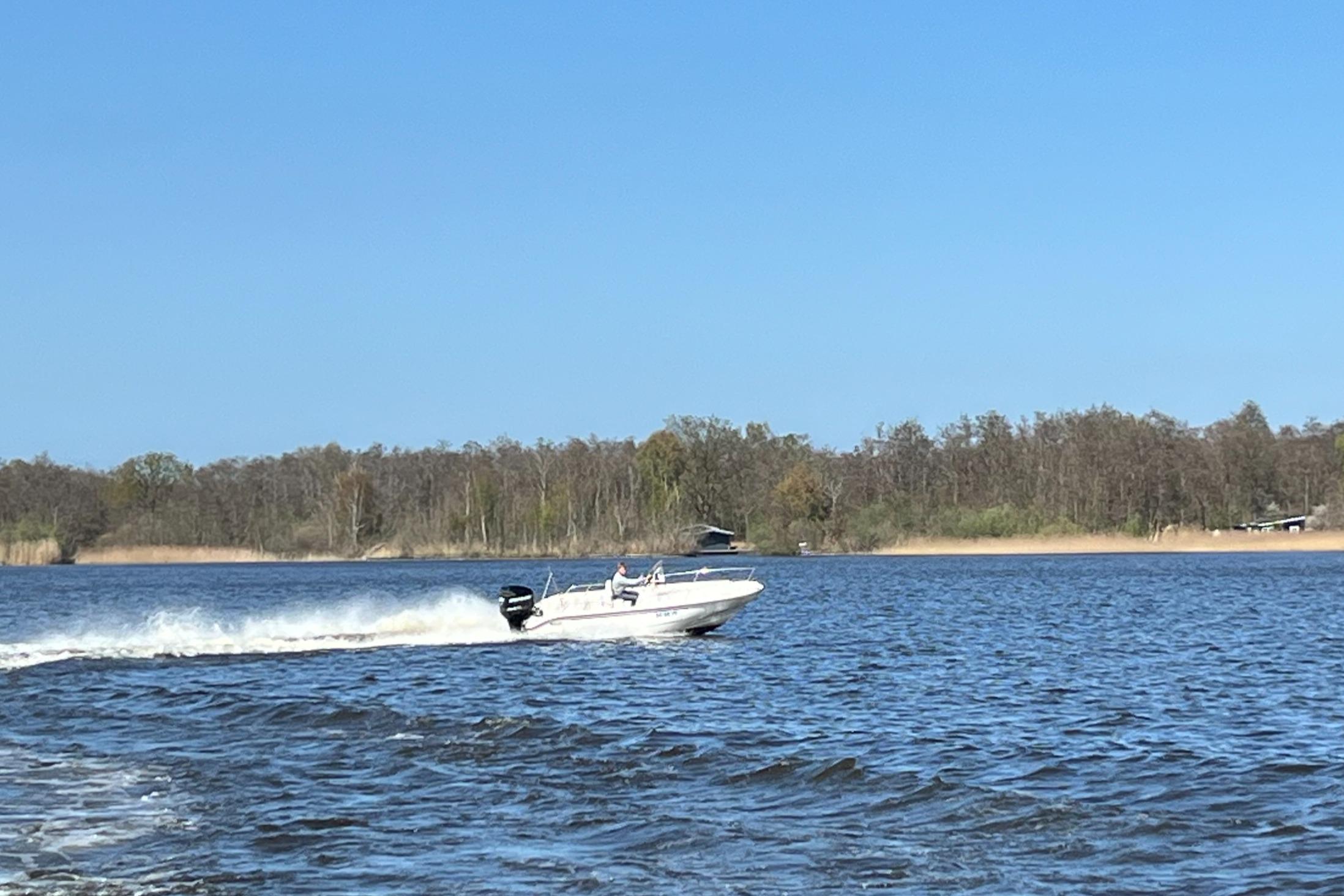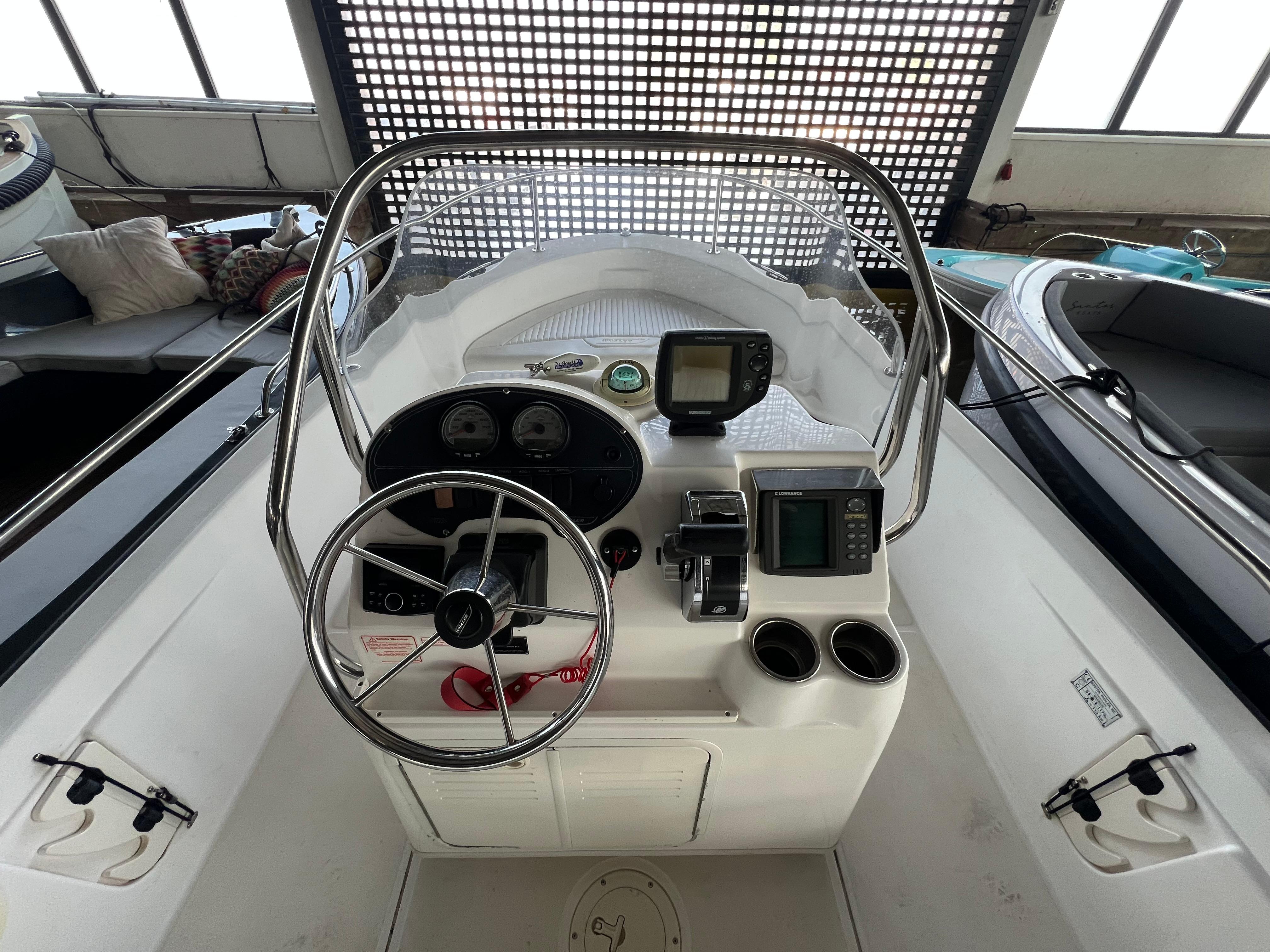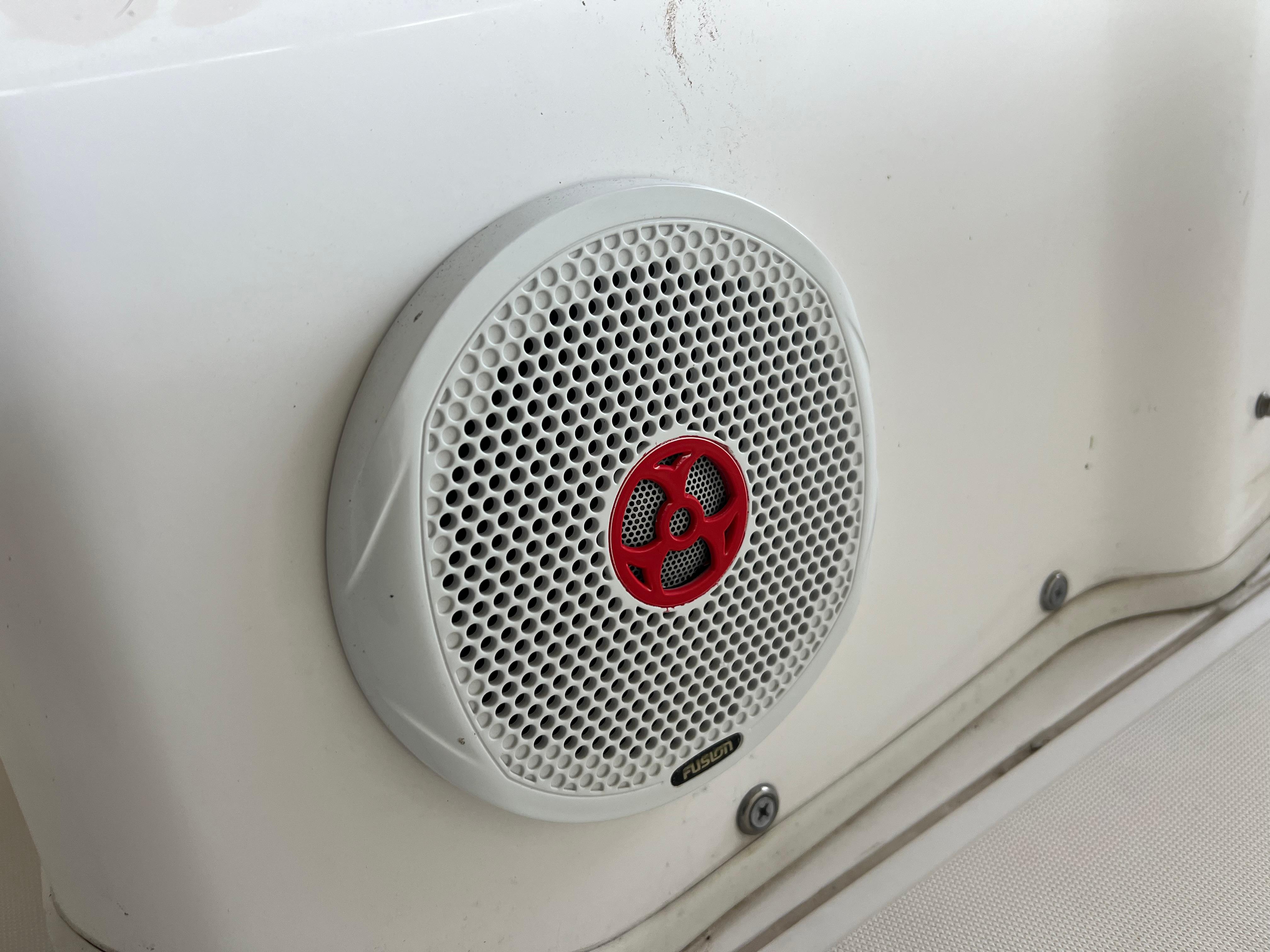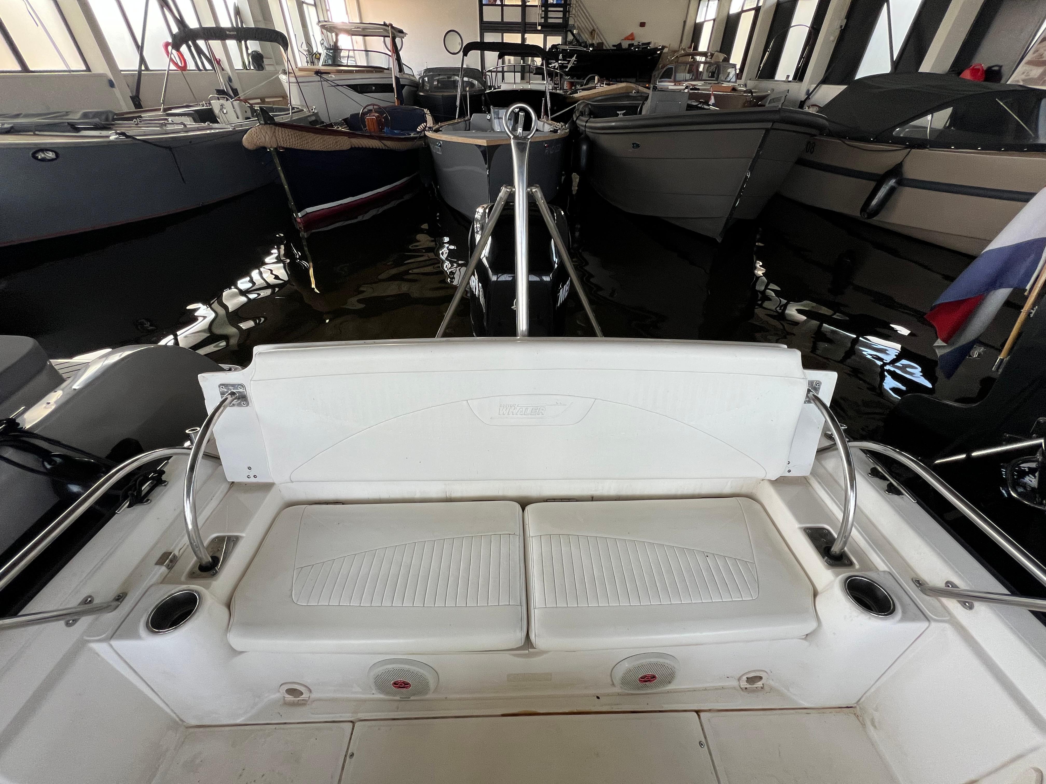 De boot is voorzien van een kussenset, waterskipaal, lowrance navigatiesysteem, bekerhouders, audioinstallatie, stuurstandhoes en een zelflozende kuip.