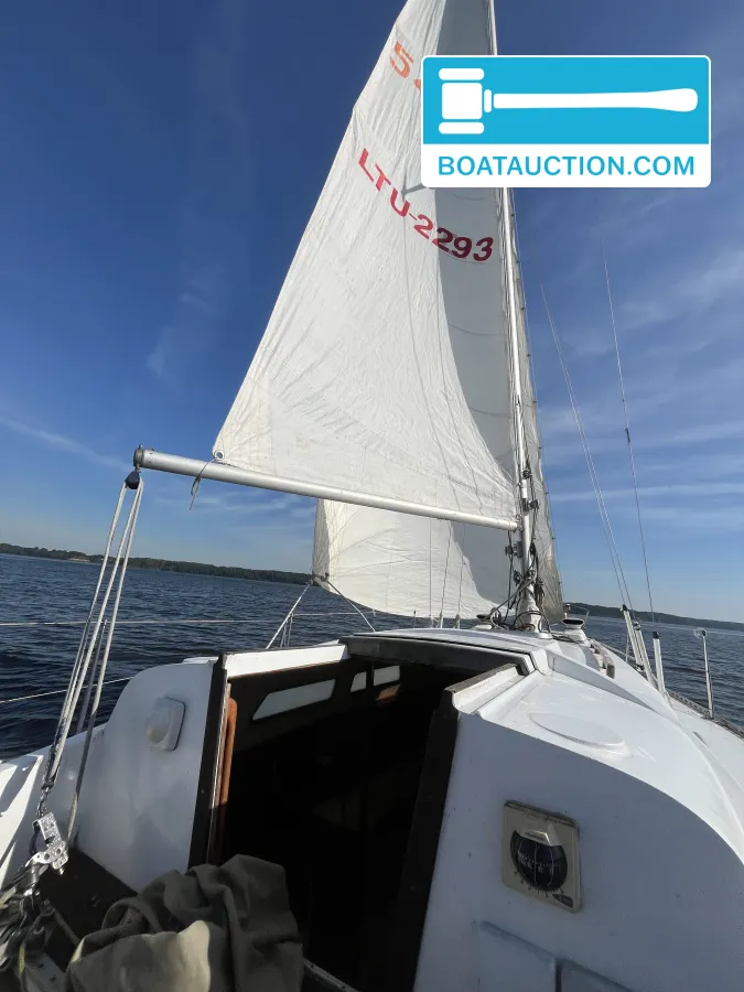 Zeiluitrusting en gebruikBij de verkoop worden meerdere zeilen meegeleverd. De boot is in het verleden gebruikt voor recreatief zeilen op meren en werd ingezet voor weekendverblijven.