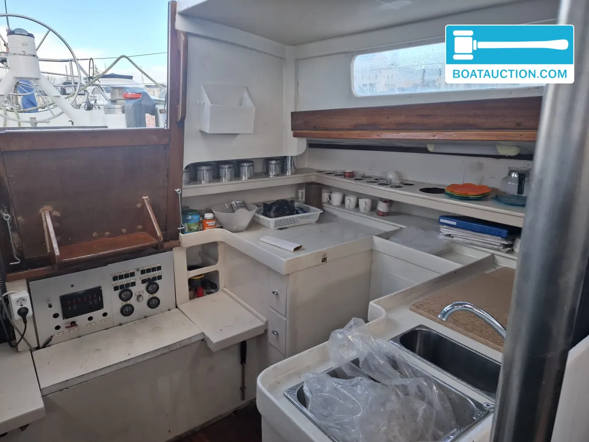 Motorisatie en technische specificatiesDe Carter 42 is uitgerust met een Volvo Penta dieselmotor van het type inboard. De motor beschikt over vier cilinders en wordt elektrisch gestart. Hoewel het bouwjaar van de motor niet is gespecificeerd, is aangegeven dat de motor momenteel functioneert. De brandstofvoorziening is gebaseerd op diesel, wat gebruikelijk is voor zeiljachten van dit formaat en zorgt voor een betrouwbare voortstuwing tijdens motorvaren of manoeuvreren in havens.
