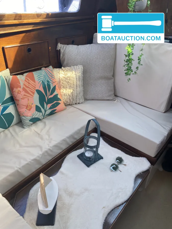 Compromis 850 AK Ohana nu in de online veiling. Iedereen kan meebieden tot en met 24 november 2025.Binnenin de Compromis 850 AK Ohana bevindt zich een praktische en ruime leefomgeving. De salon is voorzien van een zithoek die omgebouwd kan worden tot twee extra slaapplaatsen. De kussens van deze zithoek zijn recent vernieuwd en op maat gemaakt. Daarnaast is er een dubbel bed met een eveneens nieuwe matras, wat bijdraagt aan het comfort tijdens overnachtingen aan boord.
