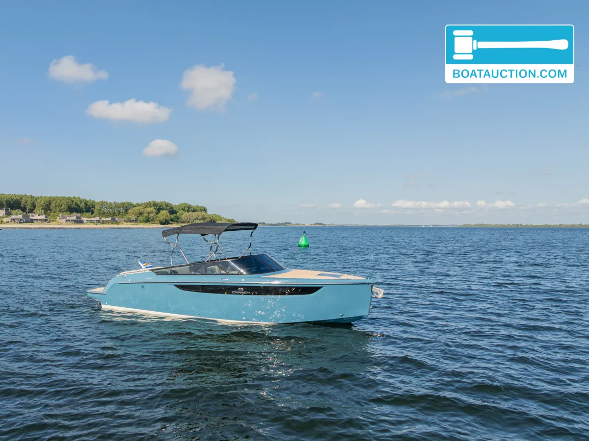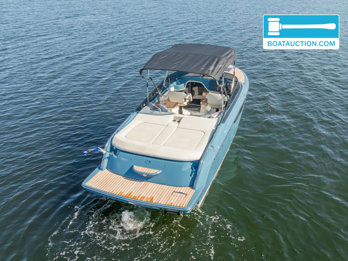 Cranchi E26 Classic nu in de online veiling. Iedereen kan meebieden tot en met 24 november 2025.De Cranchi E26 Classic is uitgerust met een krachtige Volvo Penta V8 inboard benzinemotor met een vermogen van 350 pk. Deze motor, eveneens uit 2020, heeft slechts 96 draaiuren en wordt elektrisch gestart. De motorinstallatie is voorzien van diverse meetinstrumenten, waaronder een brandstoftankmeter, oliedrukmeter, temperatuurmeter en toerenteller. De brandstoftank heeft een inhoud van 270 liter, wat zorgt voor een ruime actieradius.