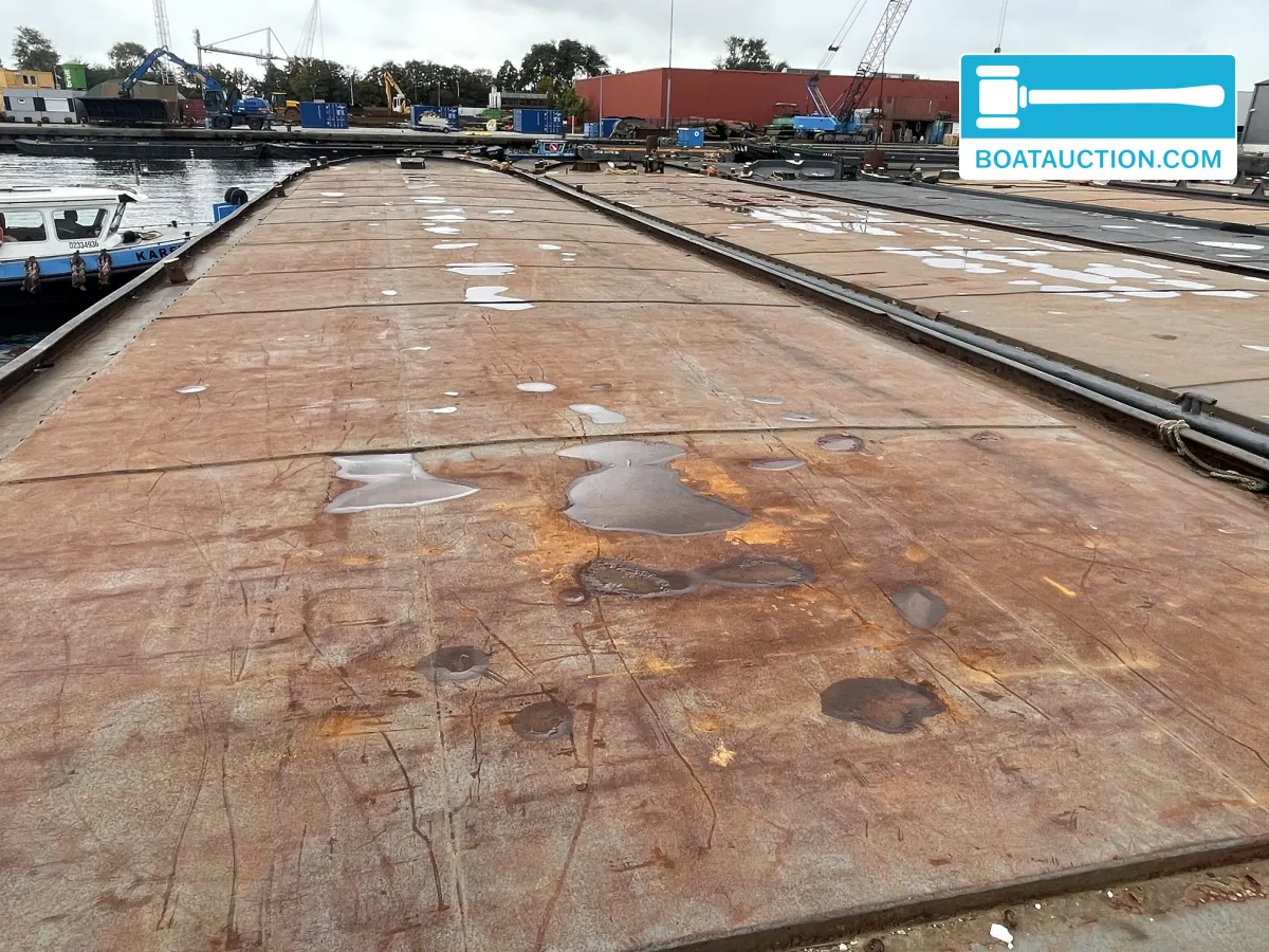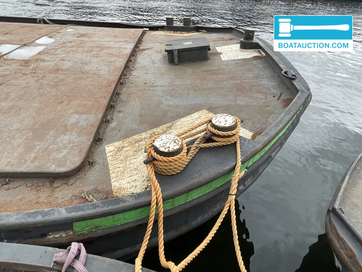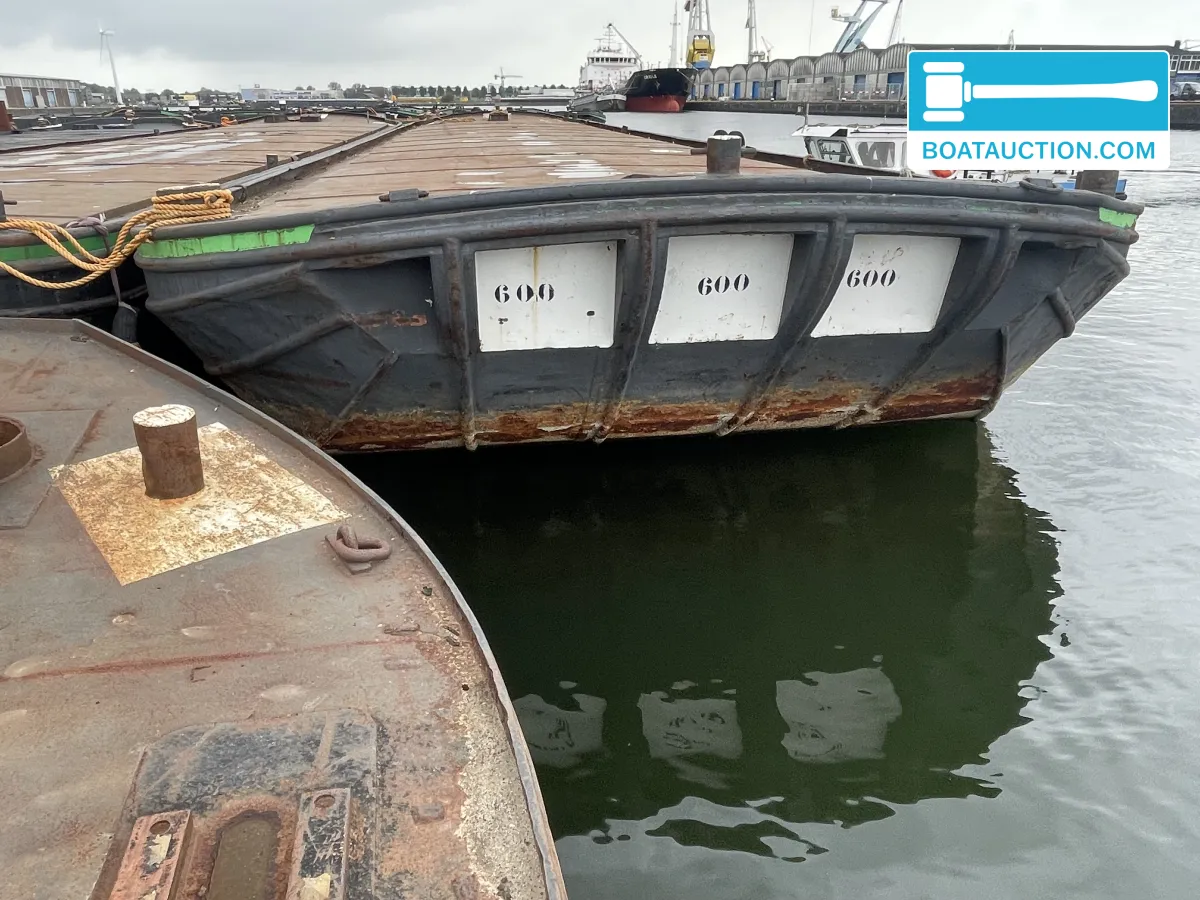 Dekschuit 600 nu in de online veiling. Iedereen kan meebieden tot en met 24 november 2025.De Dekschuit is volledig uit staal vervaardigd en is robuustheid gebouwd. De dekschuit 600 is ontworpen voor bedrijfsmatig gebruik en voorzien van een enkel roer. De dekschuit is ingezet voor diverse toepassingen voor transport over het water en als tijdelijk platform op het water. De tonnage is 235