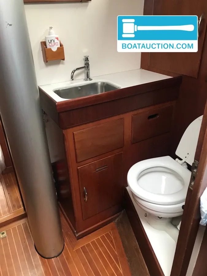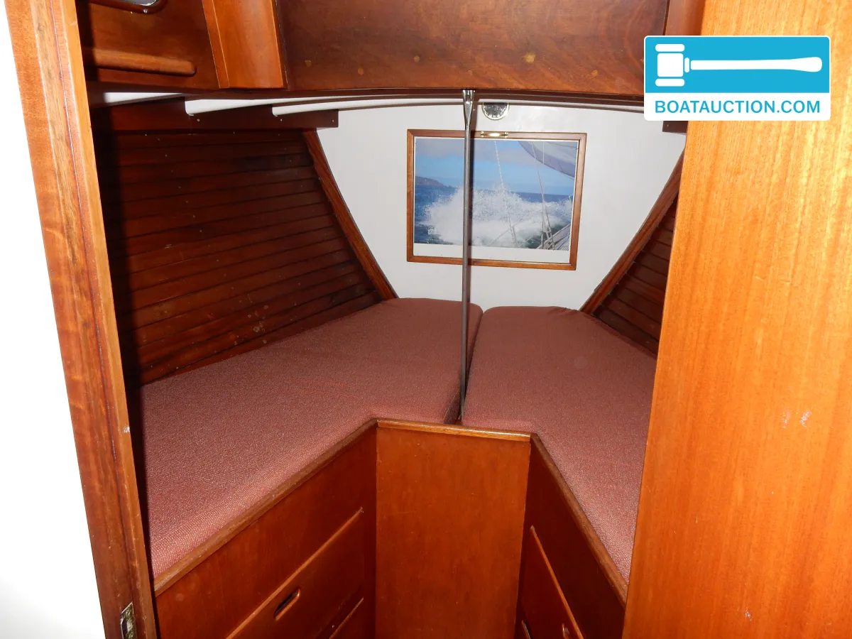 Frans Maas Hawk 42 nu in de online veiling. Iedereen kan meebieden tot 27 oktober 2025.Binnenin biedt de Hawk 42 een klassieke en functionele indeling, gericht op zeewaardigheid en comfort tijdens langere tochten. De stahoogte bedraagt 2 meter, wat zorgt voor voldoende bewegingsvrijheid. Er zijn vier vaste slaapplaatsen en twee extra slaapplaatsen beschikbaar, verdeeld over een traditionele indeling met zeevaste kooien. De betimmering is degelijk uitgevoerd en afgestemd op gebruik onder zwaardere omstandigheden.