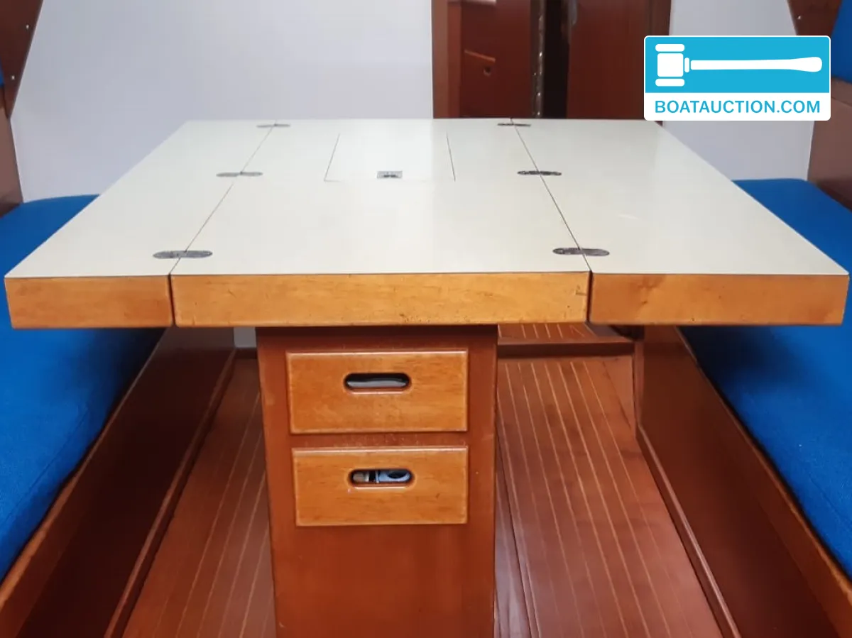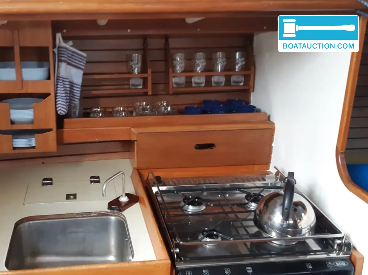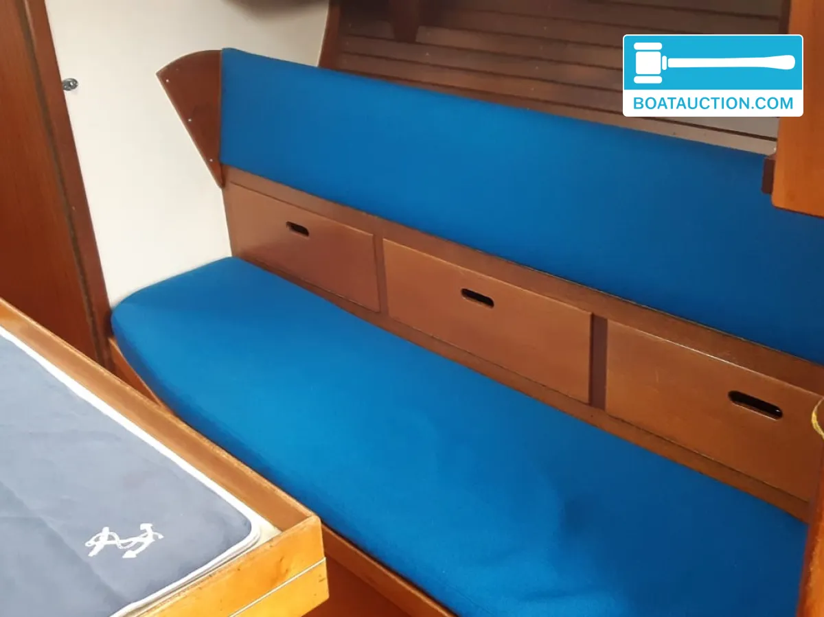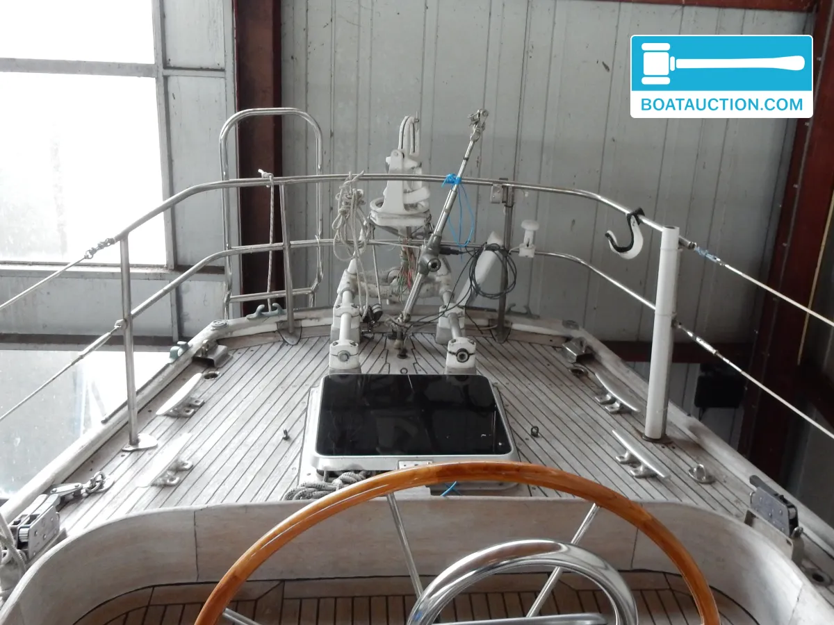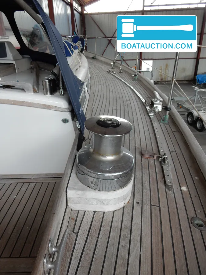 Dekuitrusting en veiligheidHet dek is voorzien van een teakdek, dat aandacht behoeft. De uitrusting omvat verder een buiskap, preek- en hekstoelen, stootwillen en lijnen, een zeerailing en een zwemtrap. Voor ankergebruik is er een handbediende ankerlier met ketting. De kuip is zelflozend, wat bijdraagt aan de veiligheid bij ruwe omstandigheden. Een handmatige bilgepomp is aanwezig voor noodgevallen.