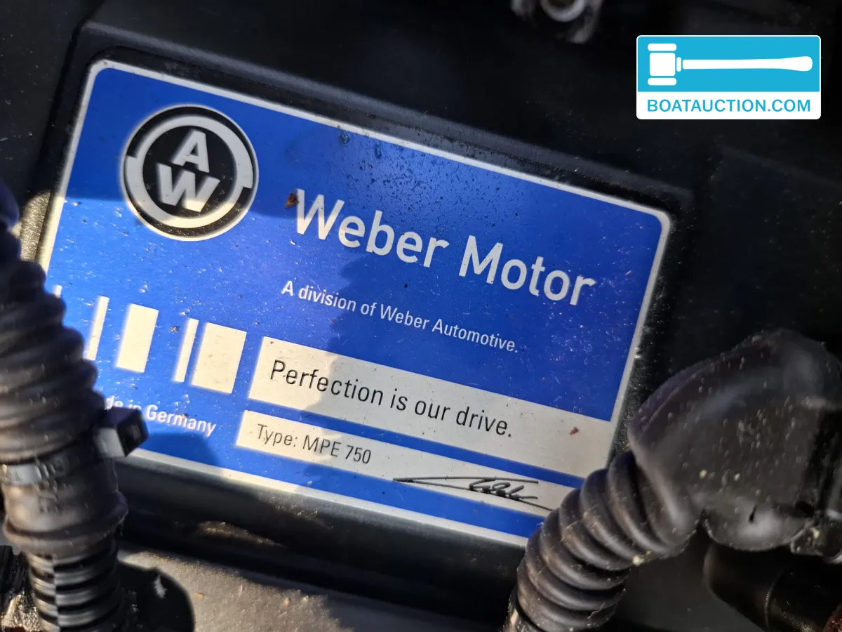 Hellwig V505 Turbo Jet nu in de online veiling. Iedereen kan meebieden tot en met 15 december 2025.De Hellwig V505 Turbo Jet is uitgerust met een Weber MPE 750 inboard motor. Deze motor levert een vermogen van 143 pk en is elektrisch gestart. Weber staat bekend om zijn jet-aangedreven motoren, die vaak worden toegepast in sportieve vaartuigen vanwege hun directe acceleratie en wendbaarheid. De motor is van hetzelfde bouwjaar als de boot, namelijk 2014, en draait op benzine.