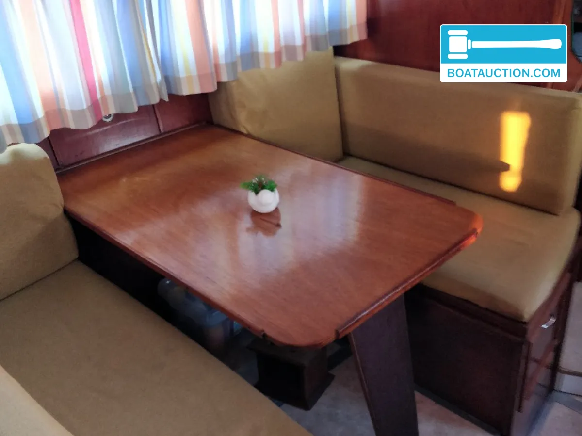 Extra informatie bij verkoopBij de verkoop worden alle aanwezige huisraad en overige spullen aan boord meegeleverd, evenals wat verf. De boot wordt zonder trailer aangeboden. Het gewicht van de boot bedraagt circa 8.000 kilogram.