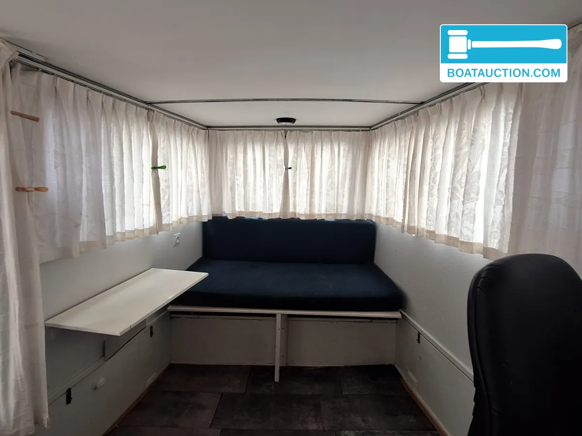 Interieur en slaapgelegenheidDe indeling van de boot is gericht op comfort en functionaliteit. Er is een aparte slaapkamer met twee vaste slaapplaatsen. Daarnaast kan de dinette worden omgebouwd tot twee extra slaapplaatsen, wat het totaal op vier brengt. De keuken is uitgerust met een tweepits gasfornuis en een koelkast. Er zijn twee gasflessen aanwezig, waarvan één in gebruik en één leeg. De toiletruimte is voorzien van een handmatig toilet dat direct loost op open water.