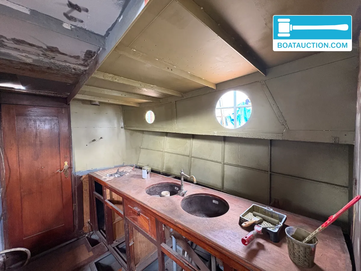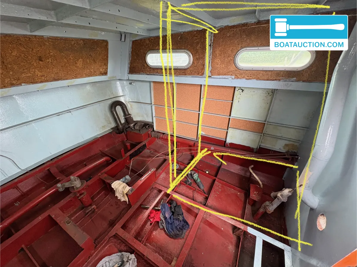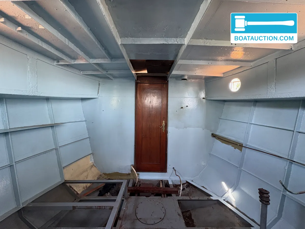 Interieur en afwerkingsmogelijkhedenHet interieur van de boot is volledig gestript, wat ruimte biedt voor een nieuwe indeling en afwerking naar wens. De huidige staat maakt het mogelijk om het schip volledig naar eigen inzicht in te richten, bijvoorbeeld als woonboot, recreatievaartuig of werkboot.