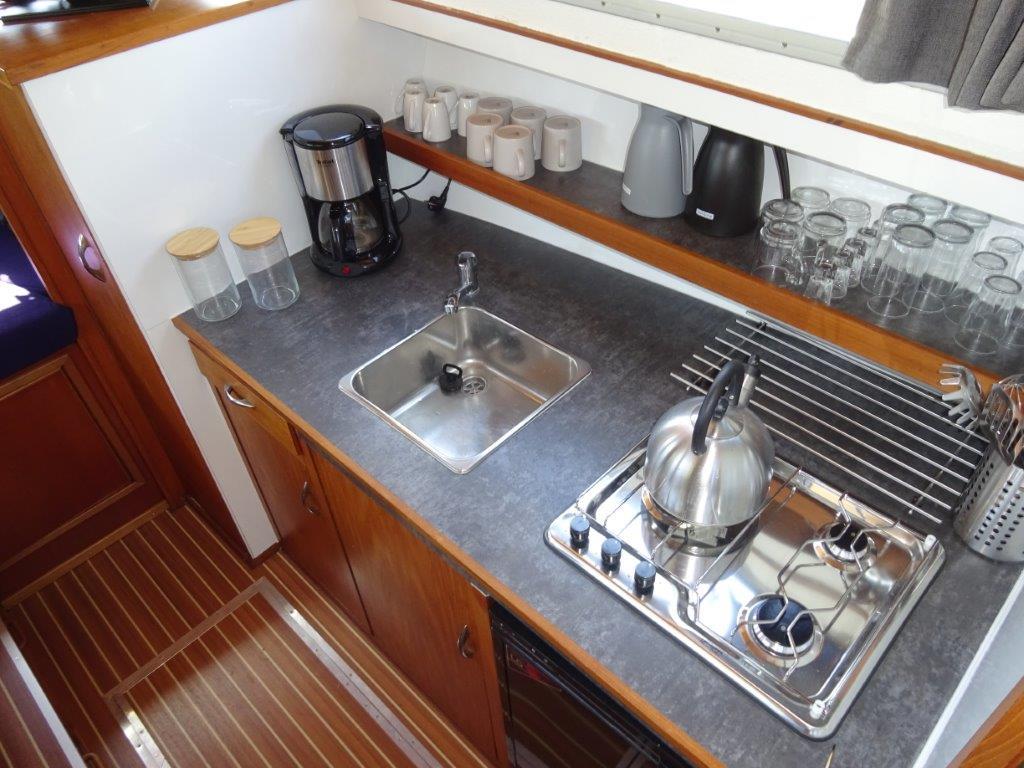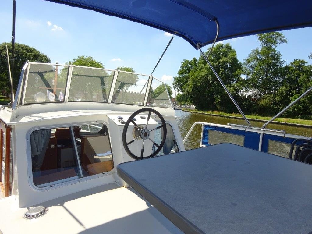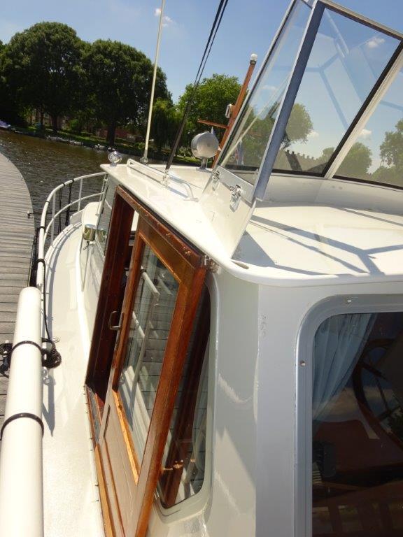 Aluminium Ramen, aluminium windscherm, biminitop, zeerailing, boegschroef Vetus, hekschroef Vetus, gps, dieptemeter, 2e stuurstand, besturing Hydraulisch, kachel (hete lucht), toilet 1 x elektrisch, douche buitendouche op zwemplateau met koud & warm water, warmwater boiler, koelkast elektrisch, kooktoestel 3 pits rvs, omvormer /acculader Victrom combi, navigatie verlichting, roerstand aanwijzer, dieseltank, watertank, waterpomp, zwemplateau, zwemtrap, walstroom + kabel, ankerlier handbediend, anker.