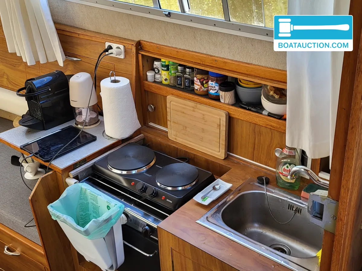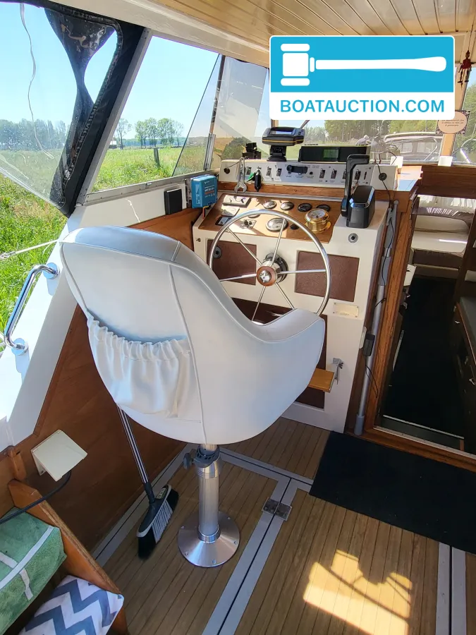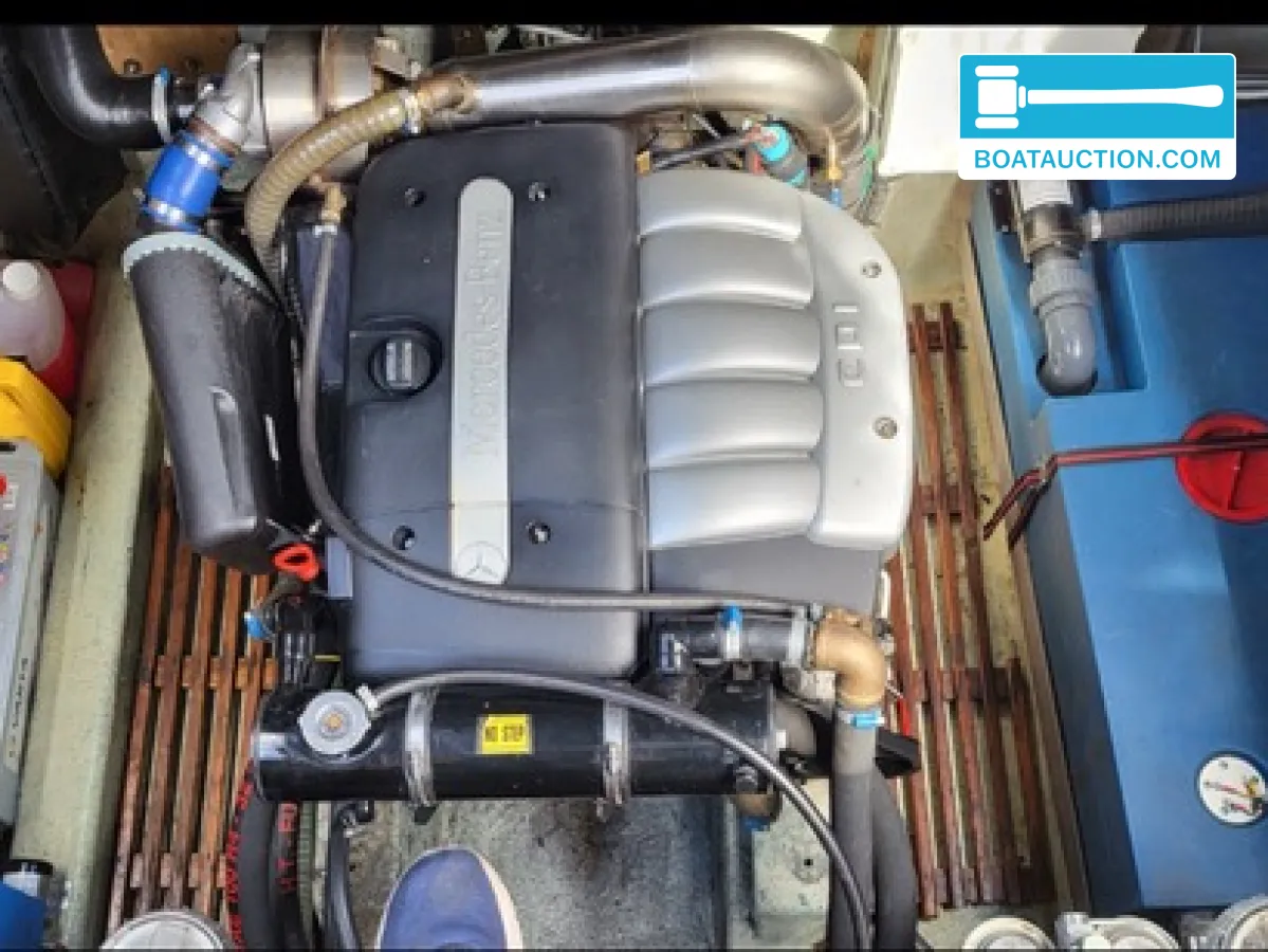 Motorisatie en technische specificatiesDe aandrijving wordt verzorgd door een Mercedes 208 CDI vijfcilinder dieselmotor met een vermogen van 177 pk. Deze inboardmotor is in 2015 geplaatst en heeft circa 980 draaiuren. De motor start elektrisch en is gekoppeld aan een brandstoftank van 400 liter. De kruissnelheid ligt rond de 14 km/u, met een maximumsnelheid van ongeveer 17 km/u. De besturing vindt plaats via een stuurwiel in de buitenkuip. De boot is uitgerust met een elektrische boegschroef, wat het manoeuvreren vergemakkelijkt.