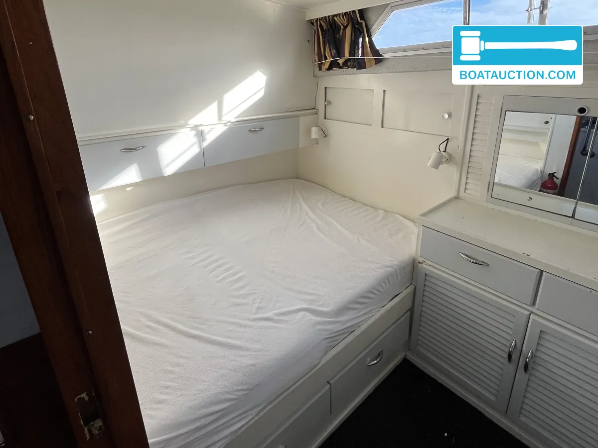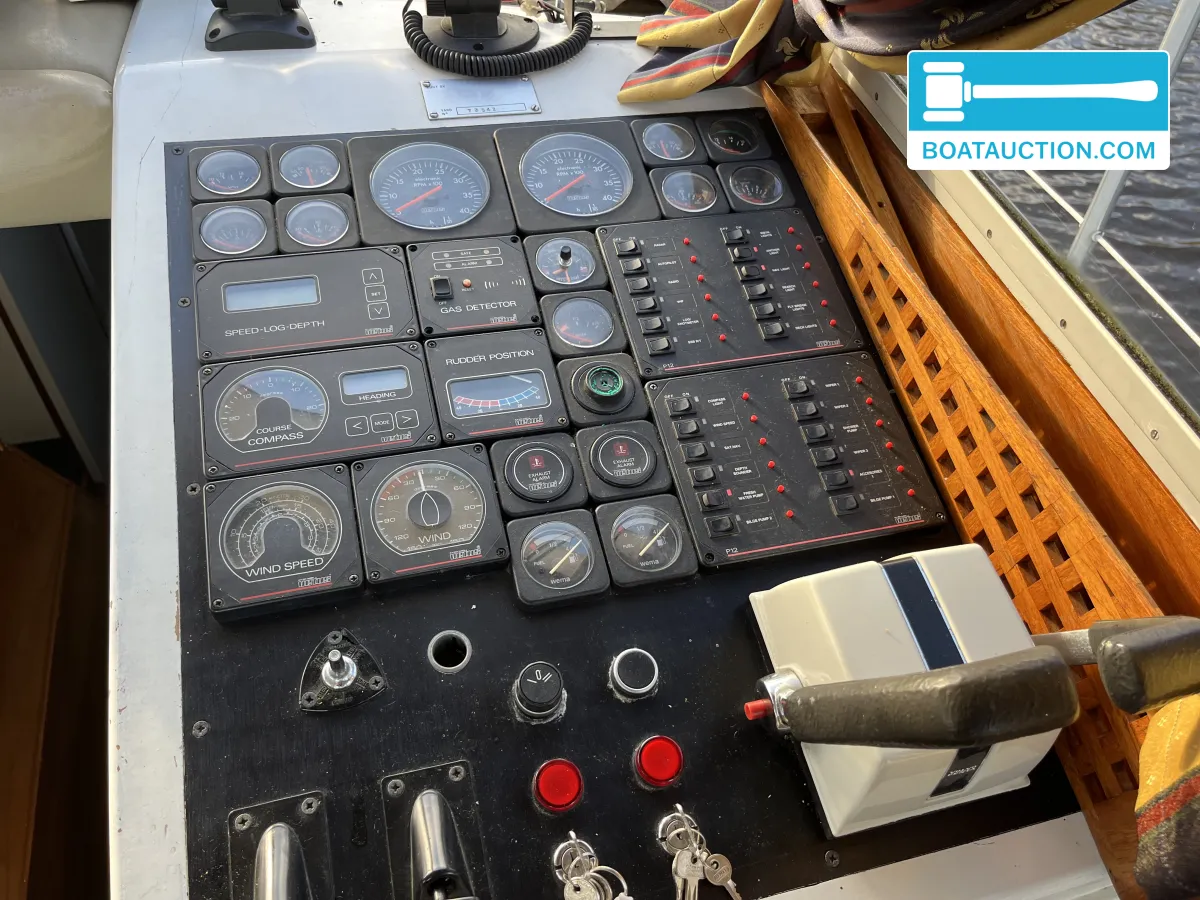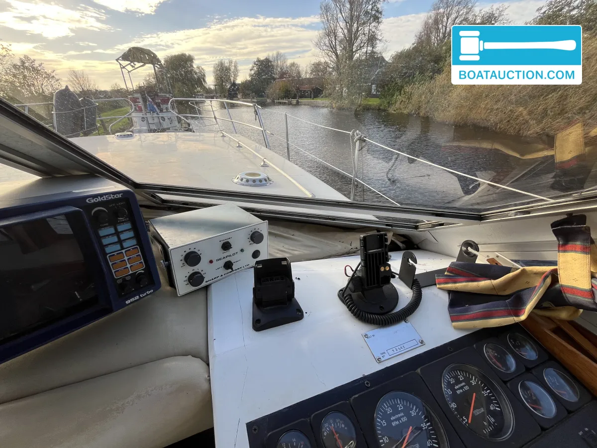 Princess 37 nu in de online veiling. Iedereen kan meebieden tot en met 19 januari 2026.De romp van de Princess 37 is vervaardigd uit polyester, een materiaal dat bekend staat om zijn duurzaamheid en onderhoudsarme eigenschappen. De S-spant romp zorgt voor een rustige vaart, ook bij minder gunstige weersomstandigheden. De besturing vindt plaats via een stuurwiel en is dubbel uitgevoerd, wat betekent dat er zowel binnen als buiten gestuurd kan worden. Dit biedt flexibiliteit bij het manoeuvreren in havens of bij het varen in verschillende weersomstandigheden.