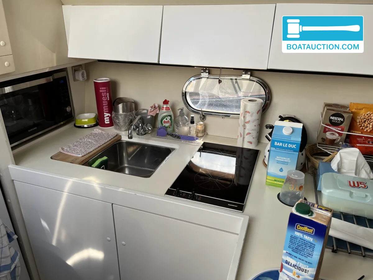 Interieur en leefruimteBinnenin de Princess Riviera 46 is er een stahoogte van 2 meter, wat zorgt voor een comfortabele leefomgeving. De indeling is gericht op gebruiksgemak en biedt slaapruimte voor vier personen in vaste bedden, met daarnaast nog vier extra slaapplaatsen. De accommodatie is voorzien van een eethoek, matrassen, een douche en een elektrisch toilet. De keuken is uitgerust met een koelkast, vriezer, oven, kooktoestel, magnetron en warmwatervoorziening. Deze voorzieningen maken het schip geschikt voor langere verblijven aan boord.