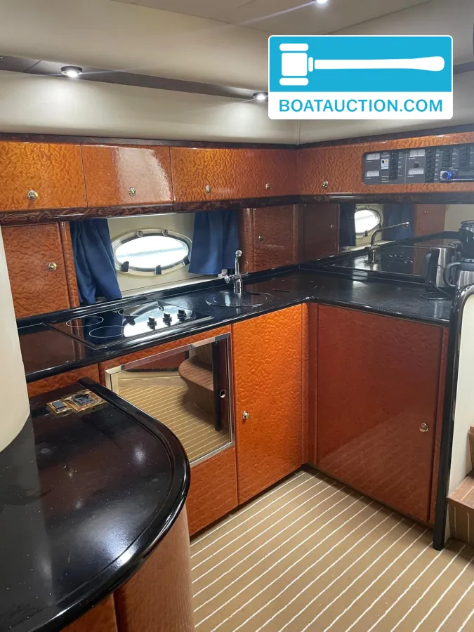 Motorisatie en technische uitrustingDit motorjacht is uitgerust met twee Mercruiser 4.2 ES 320 dieselmotoren, elk met een vermogen van 320 pk. Beide motoren zijn van het bouwjaar 1995 en beschikken over zes cilinders. De motoren worden elektrisch gestart en zijn operationeel. De brandstoftank heeft een capaciteit van 600 liter, wat zorgt voor een ruime actieradius. De boot beschikt over diverse meetinstrumenten zoals een brandstoftankmeter, oliedrukmeter, temperatuurmeter en toerenteller. Voor extra manoeuvreerbaarheid is er een elektrische boegschroef aanwezig.