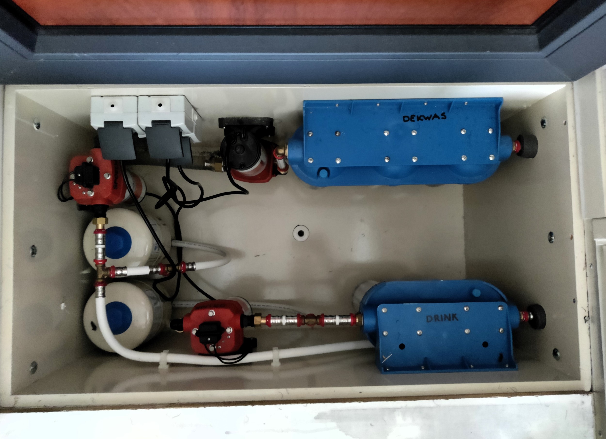 Vers water is gescheiden. 920 liter voor gebruikswater. En 250 liter geschikt voor drinkwater voorzien van extra koolstoffiltering.