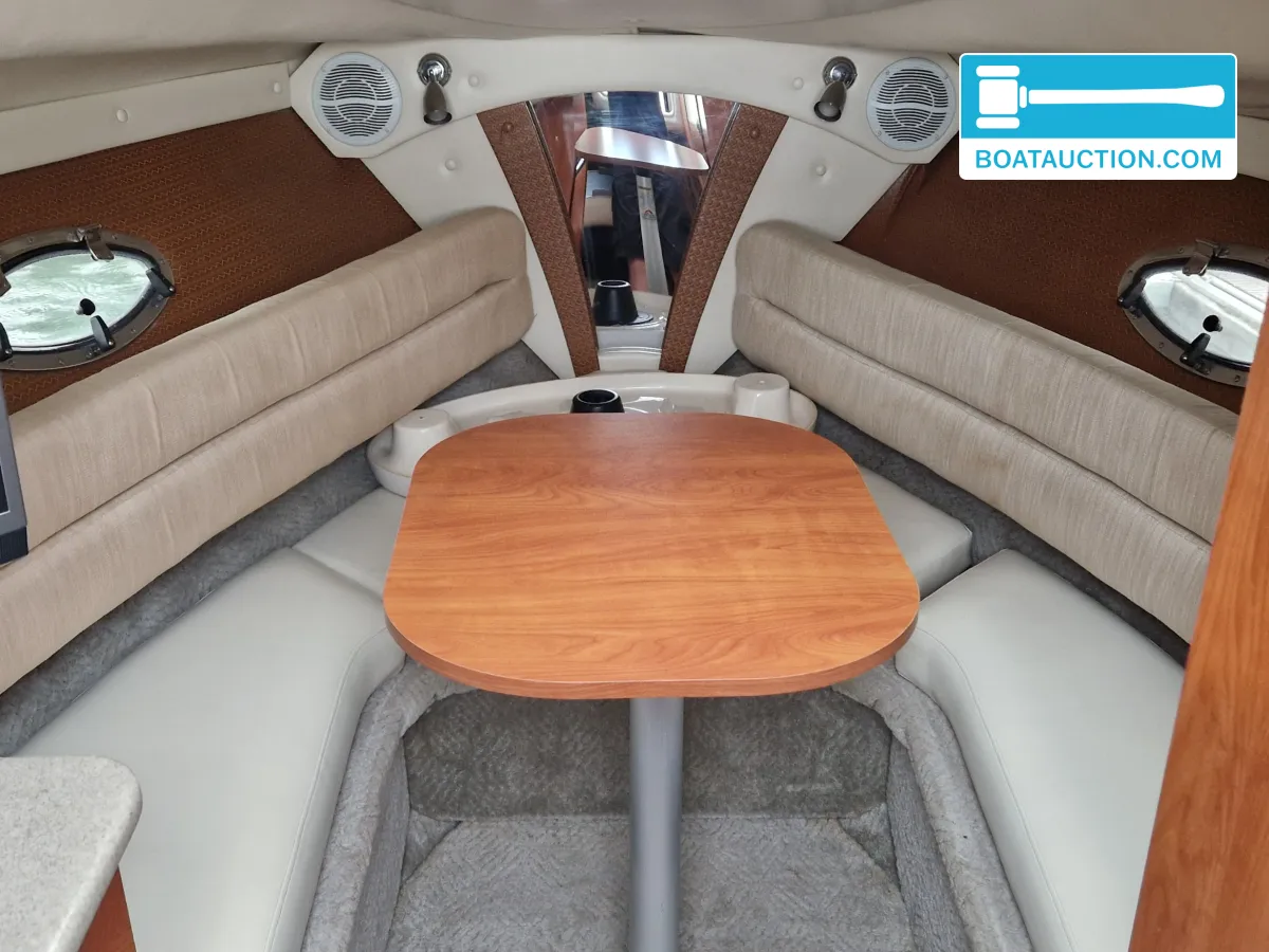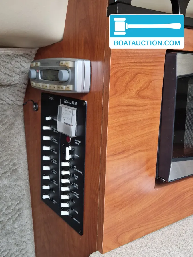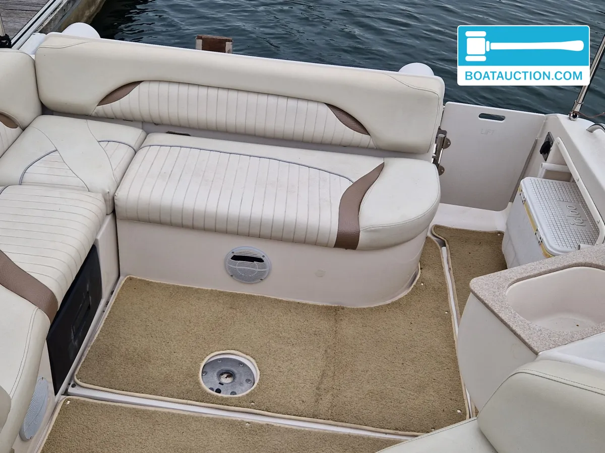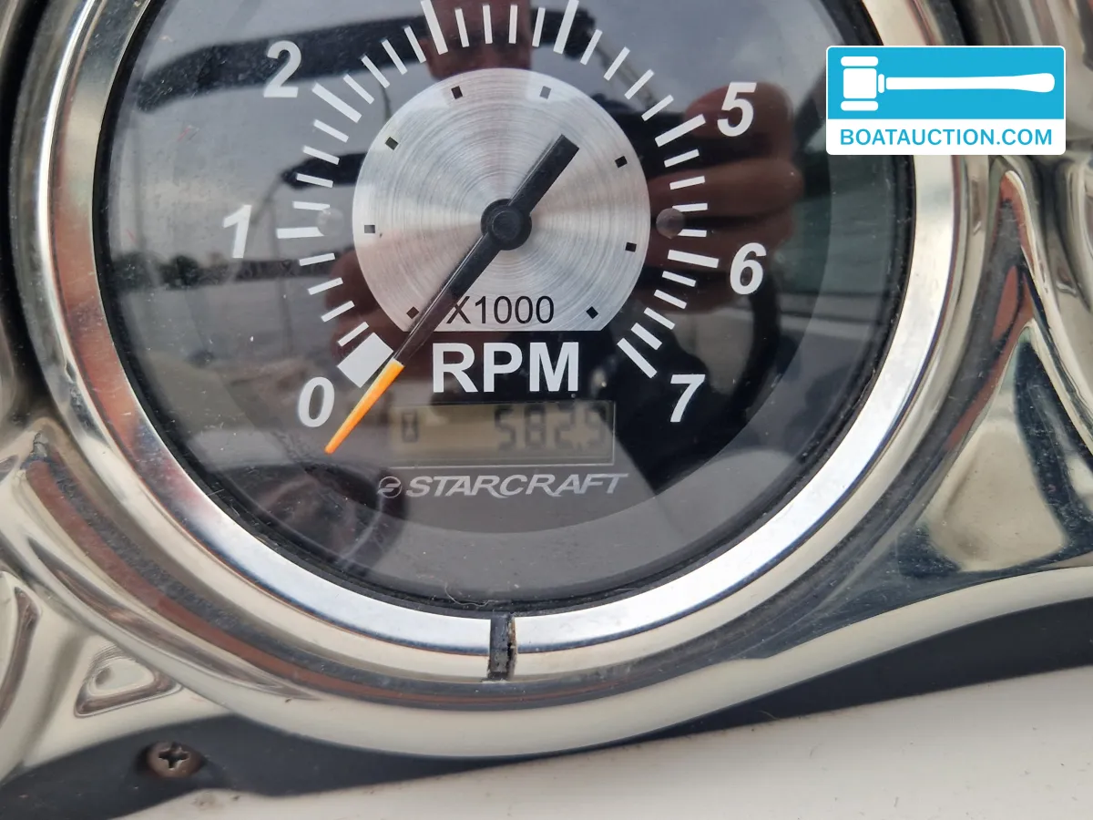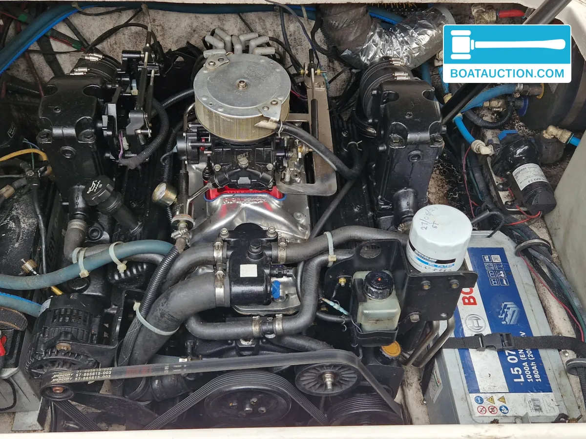 Motorisatie en prestatiesDe boot is uitgerust met een Mercruiser inboard motor uit 2012. Deze V8 motor levert een vermogen van 221 pk en heeft 582 draaiuren. De motor start elektrisch en draait op benzine. De brandstoftank heeft een inhoud van 283 liter, wat zorgt voor een ruime actieradius. De maximumsnelheid ligt rond de 60 kilometer per uur, afhankelijk van belading en omstandigheden. De motor is voorzien van meetinstrumenten zoals een brandstoftankmeter, oliedrukmeter, temperatuurmeter en toerenteller. Voor extra manoeuvreerbaarheid is er een elektrische boegschroef aanwezig.