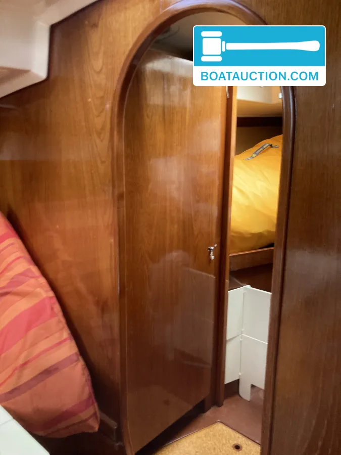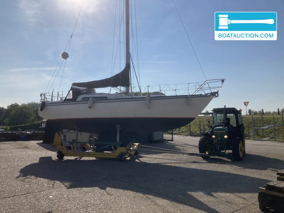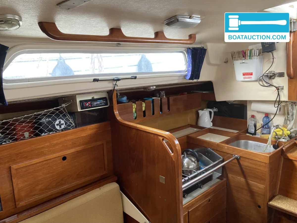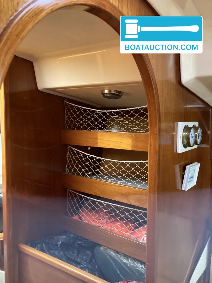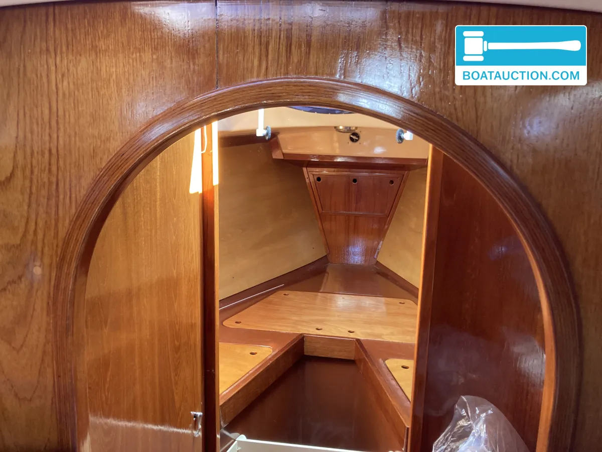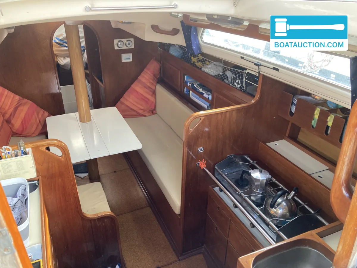 Navigatie en zeiluitrustingQua navigatie is de boot voorzien van een GPS, dieptemeter, kompas en een iCom handheld marifoon. De zeiluitrusting bestaat uit één aluminium mast en zes zeilen, waaronder een grootzeil, fok en genua. De genua 1 is recent vernieuwd, terwijl de overige zeilen in redelijke staat verkeren. Het grootzeil is gedeeltelijk doorgelat en voorzien van drie reven. De boot beschikt over een handmatige ankerlier en twee ankers met lijnbevestiging. Buitenom is de boot uitgerust met een buiskap, preek- en hekstoelen, stootwillen, lijnen, een zeerailing, een zwemplatform en een zwemtrap.