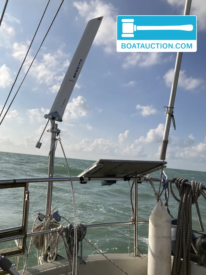 Veiligheid en extra uitrustingVoor de veiligheid is een reddingsvlot aanwezig, hoewel deze niet recent is gekeurd. De kuip is zelflozend en er is een handmatige bilgepomp aan boord. Een opvallend extra is de Clipper windvaanstuurinrichting, die volgens de eigenaar effectief functioneert tijdens oceaanoversteken. Deze toevoeging maakt het schip geschikt voor langere tochten zonder constante handmatige besturing.