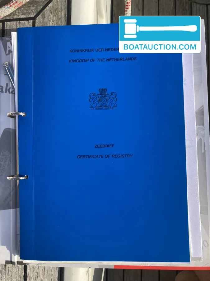 De romp is vervaardigd uit polyester, een materiaal dat veel wordt gebruikt in de jachtbouw vanwege de sterkte en het relatief lage onderhoud. De boot is geregistreerd in het Nederlands Kadaster. De BTW is voldaan en er is documentatie aanwezig, waaronder een certificaat van registratie, een meetbrief en een nationaliteitsverklaring.