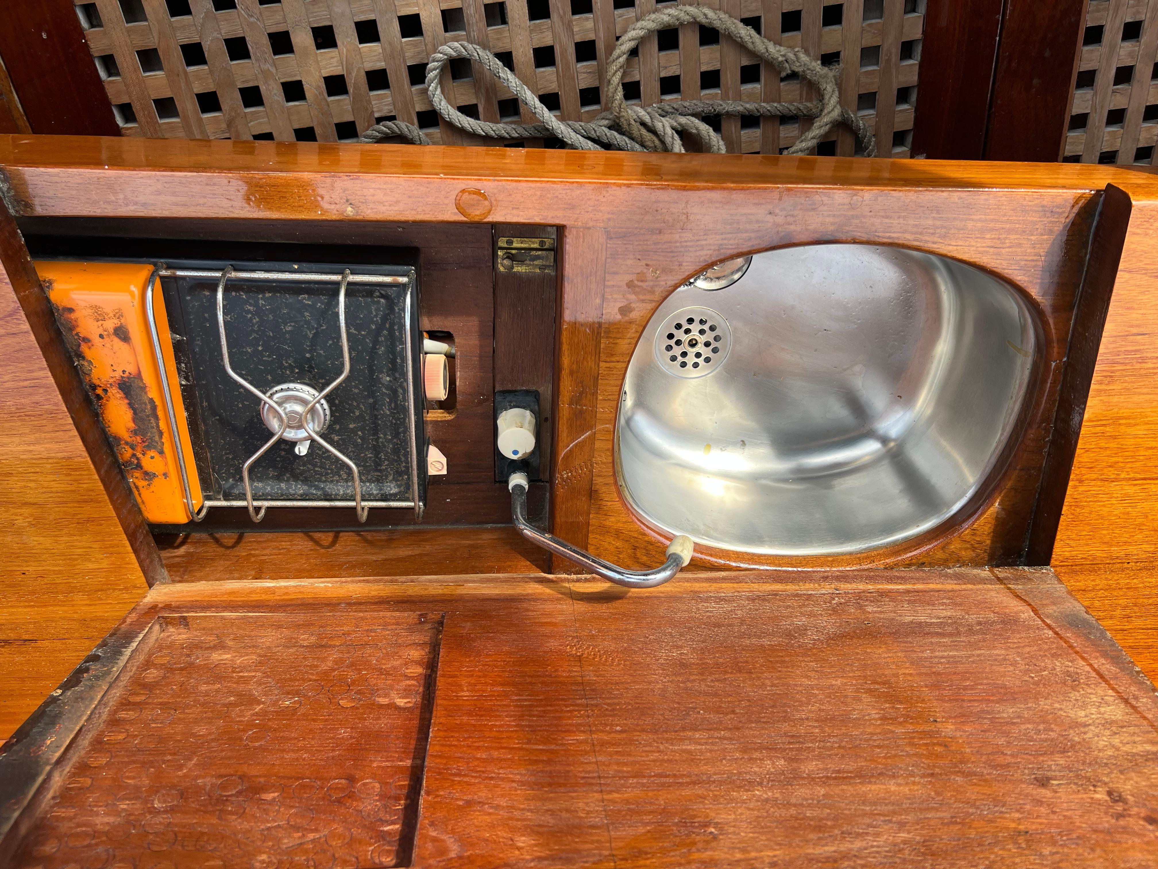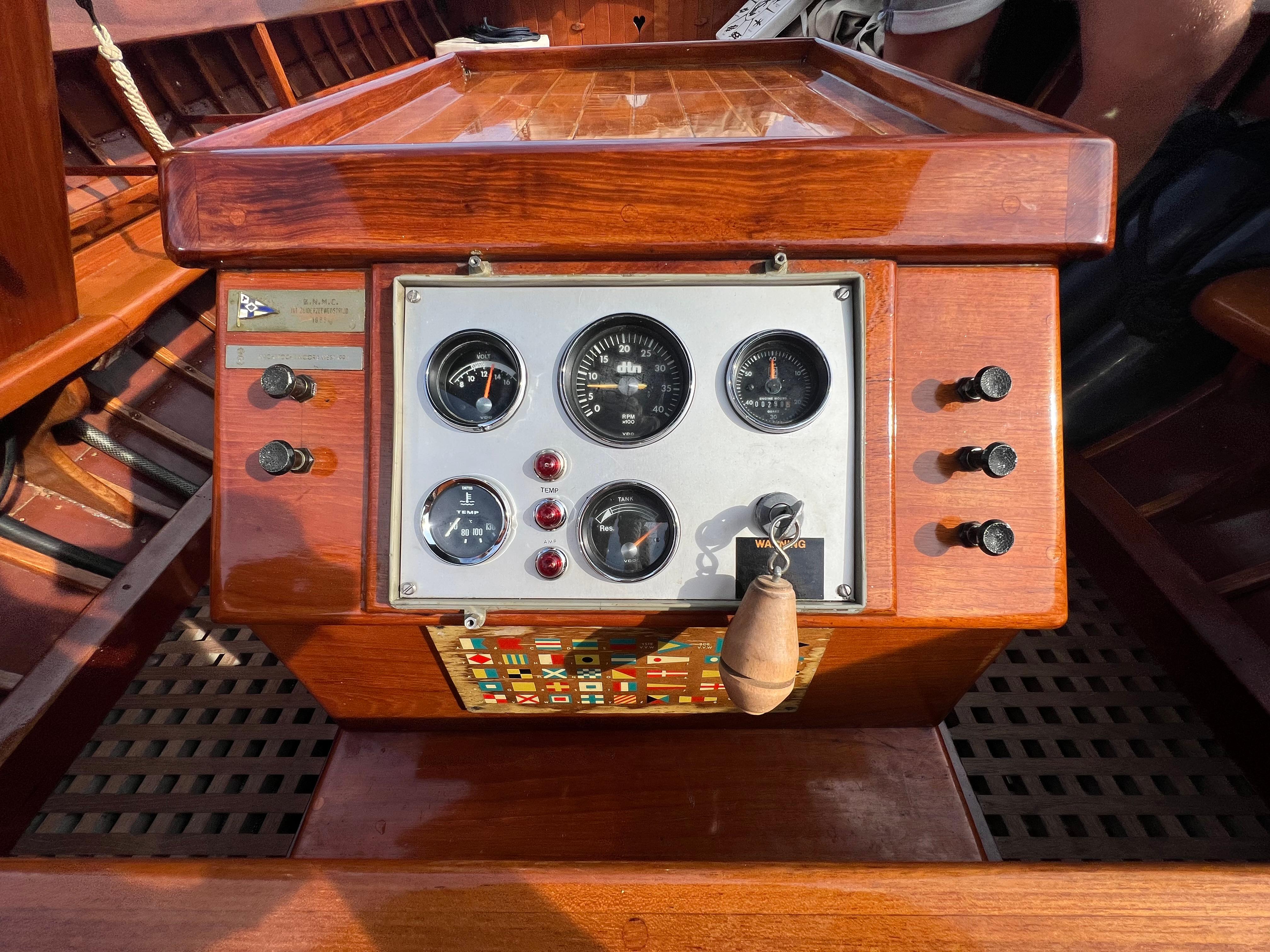 De vlet is rijk uitgerust met een buiskap, kuipzeil, originele sleepmast, originele klok, kapiteinsstoel, kompas, toilet, koelkast, wasbak, gaspitje, 12V aansluiting, bilgepomp, anker, fenders en lijnen.
