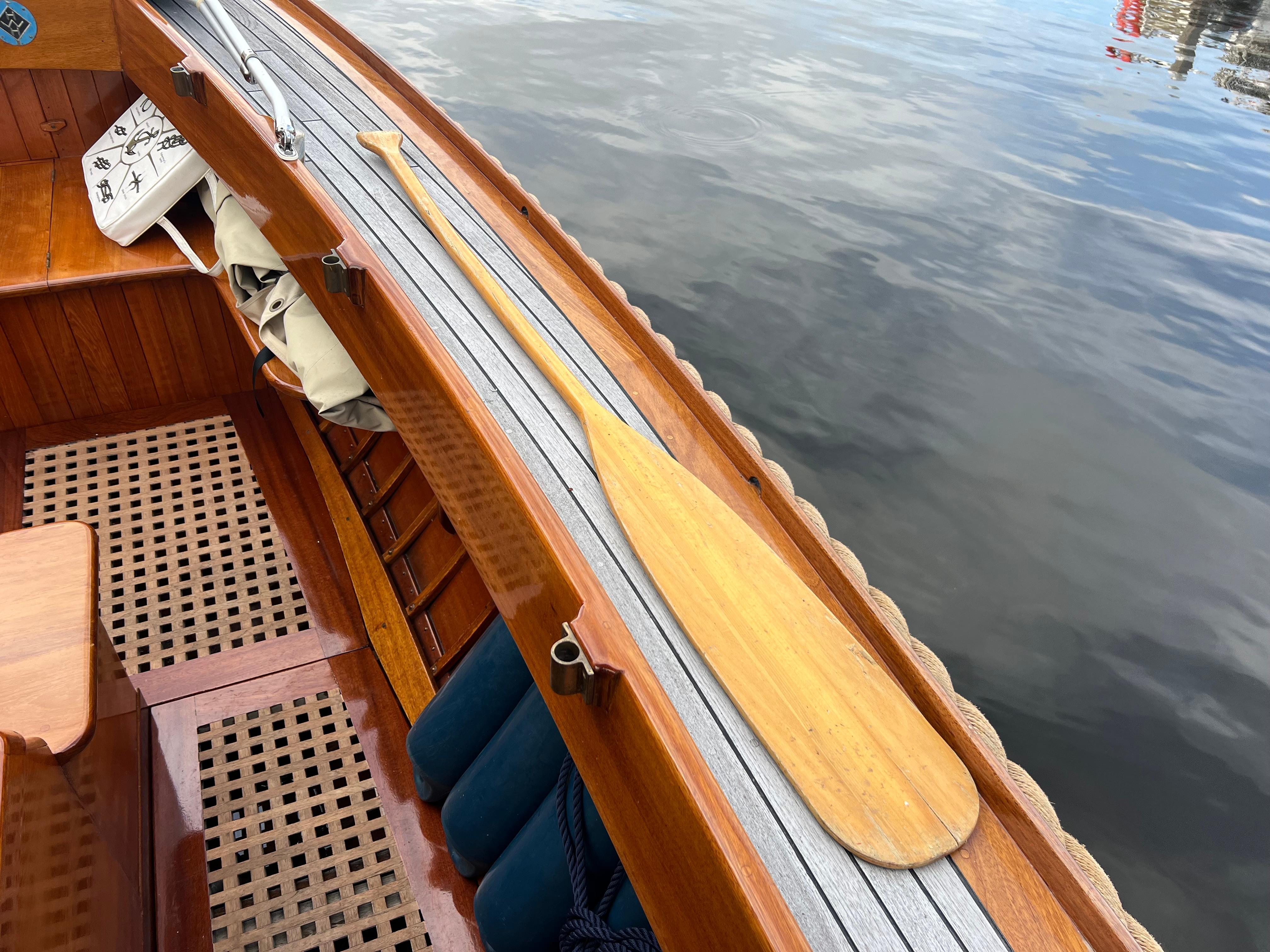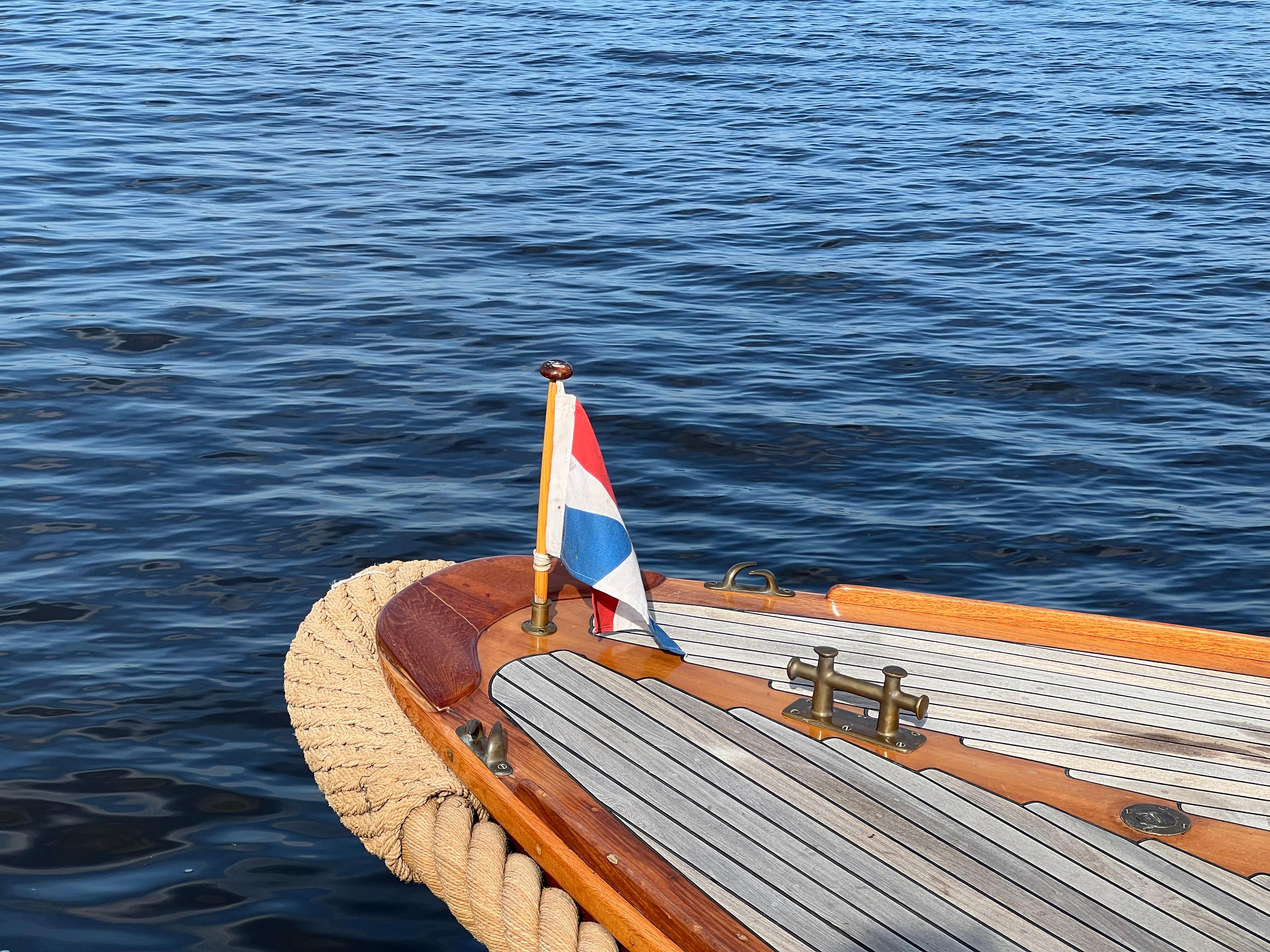 Goed onderhouden Scherpelvlet met mahoniehouten romp en teakhouten dek.