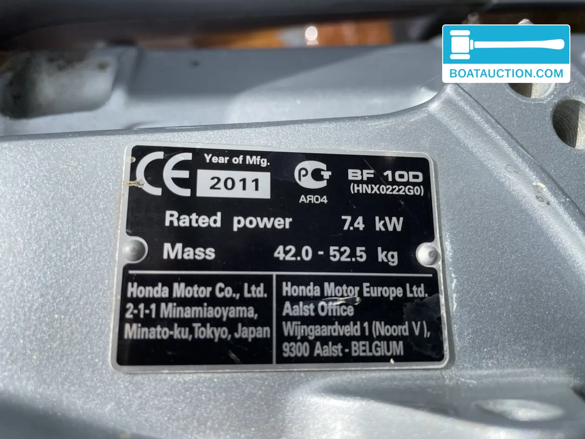 Voor de voortstuwing is een Honda 4-takt buitenboordmotor van 10 pk aanwezig, met een handmatige start. Deze motor uit 2011, beschikt over twee cilinders en draait op benzine. De kruissnelheid ligt rond de 10 kilometer per uur, met een maximumsnelheid van circa 15 kilometer per uur. De motor maakt het mogelijk om ook zonder tuigage comfortabel te varen.