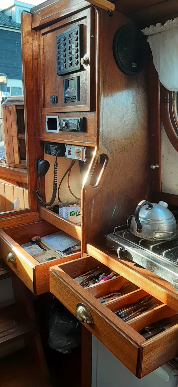 Bent u op zoek naar een unieke en karaktervolle platbodem? Deze Baarda Zeegrundel, gebouwd in 's-Graveland, biedt een perfecte combinatie van traditie en modern comfort. Het schip is uitgerust met een betrouwbare Vetus dieselmotor en een boegschroef, wat zorgt voor uitstekende manoeuvreerbaarheid en gemak bij aanleggen.