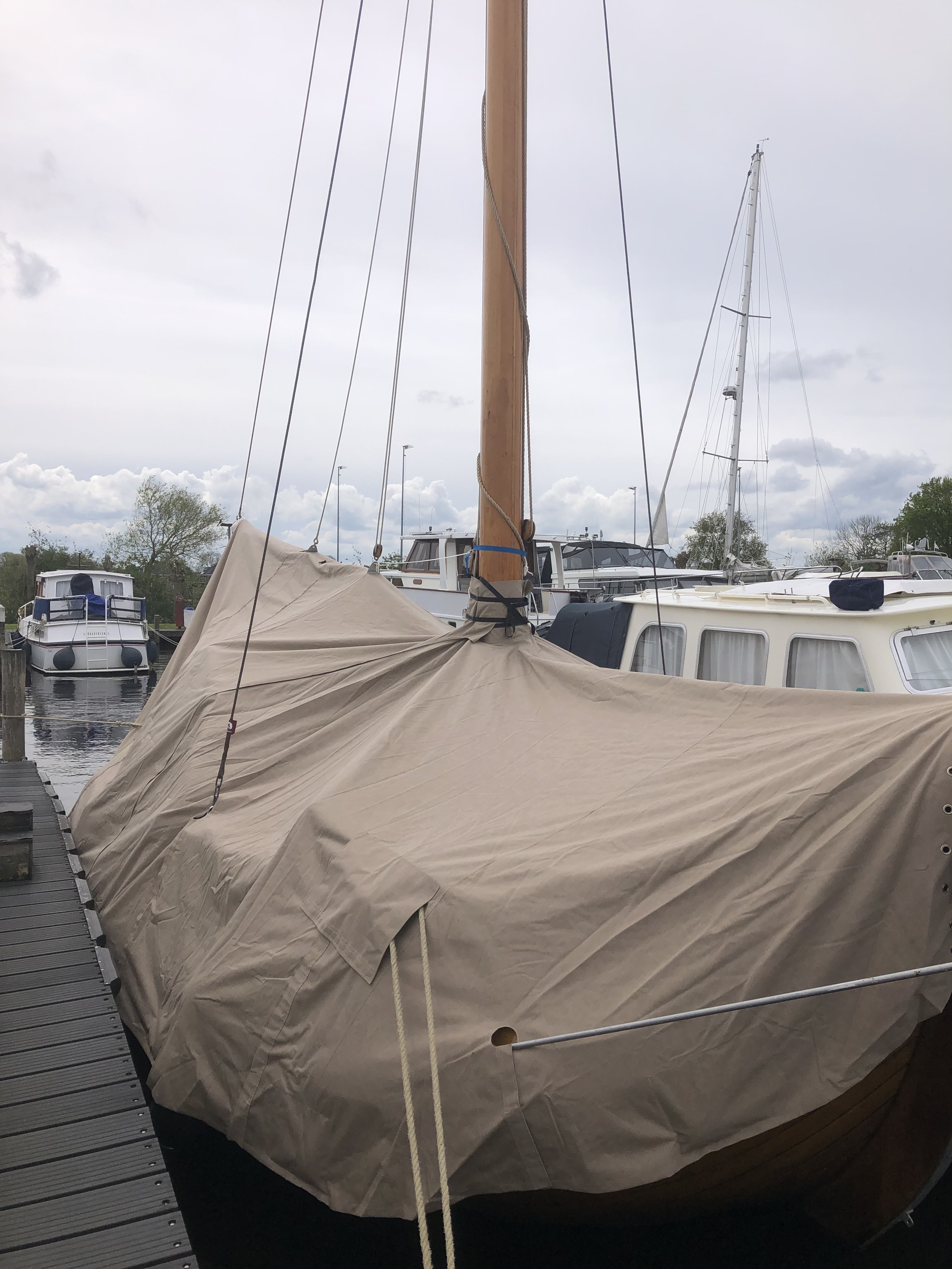 Een robuust schip, zwaar gebouwd uit 9.000 kg eikenhout, ondertuigd en eenvoudig uitgevoerd. Het stoere uiterlijk van deze boeier komt voort uit de relatief grote breedte, betrekkelijk hoge kop en achterschip.