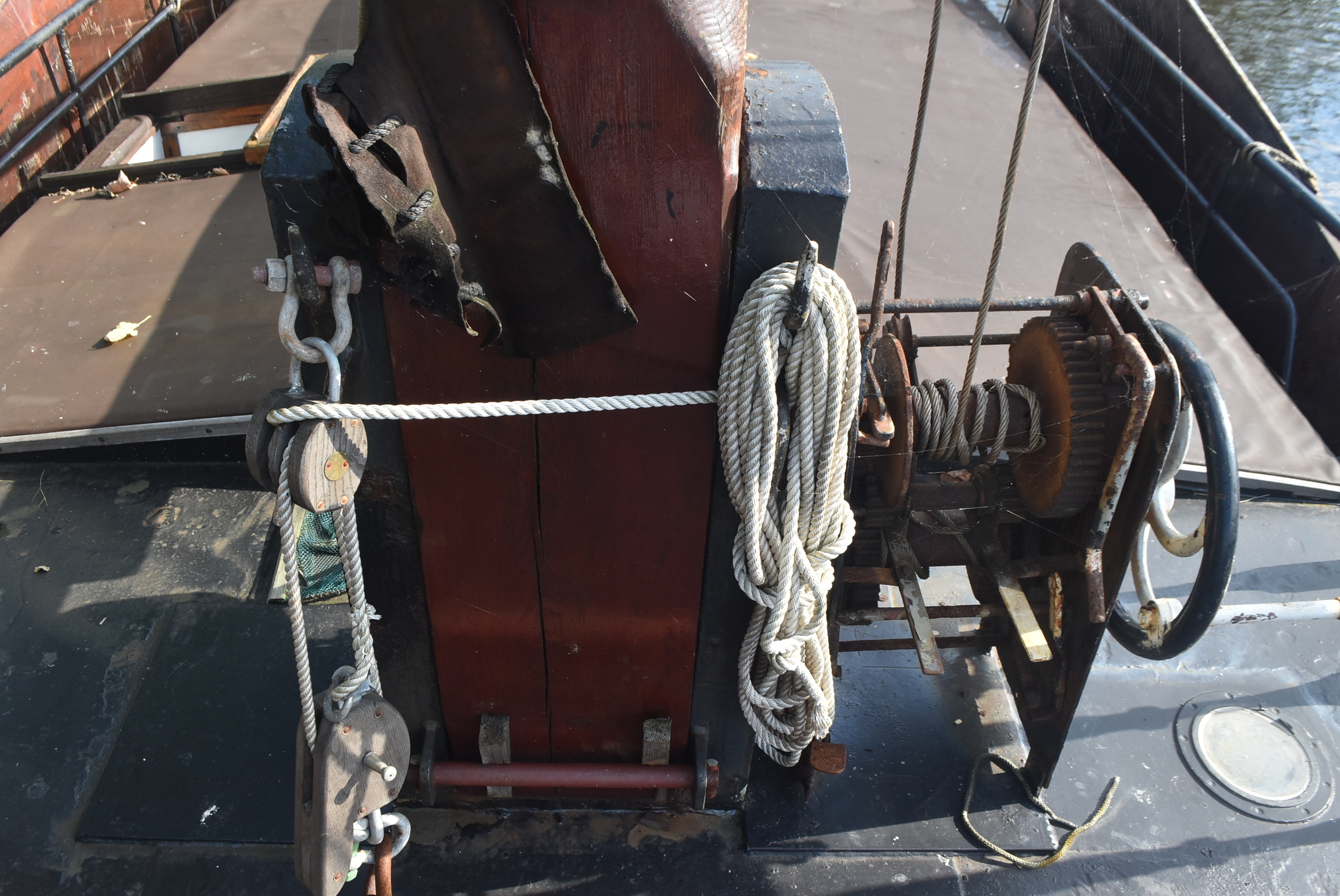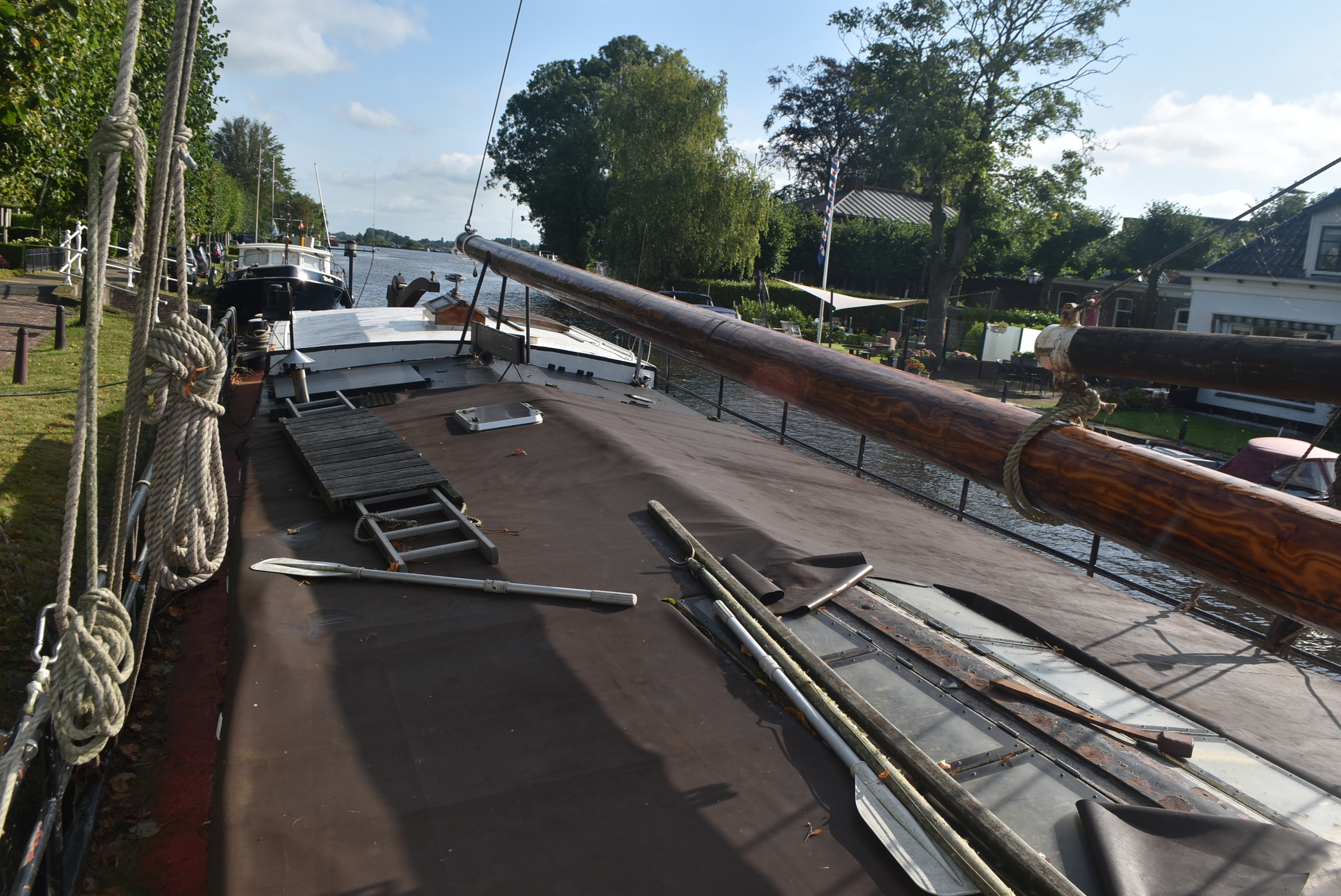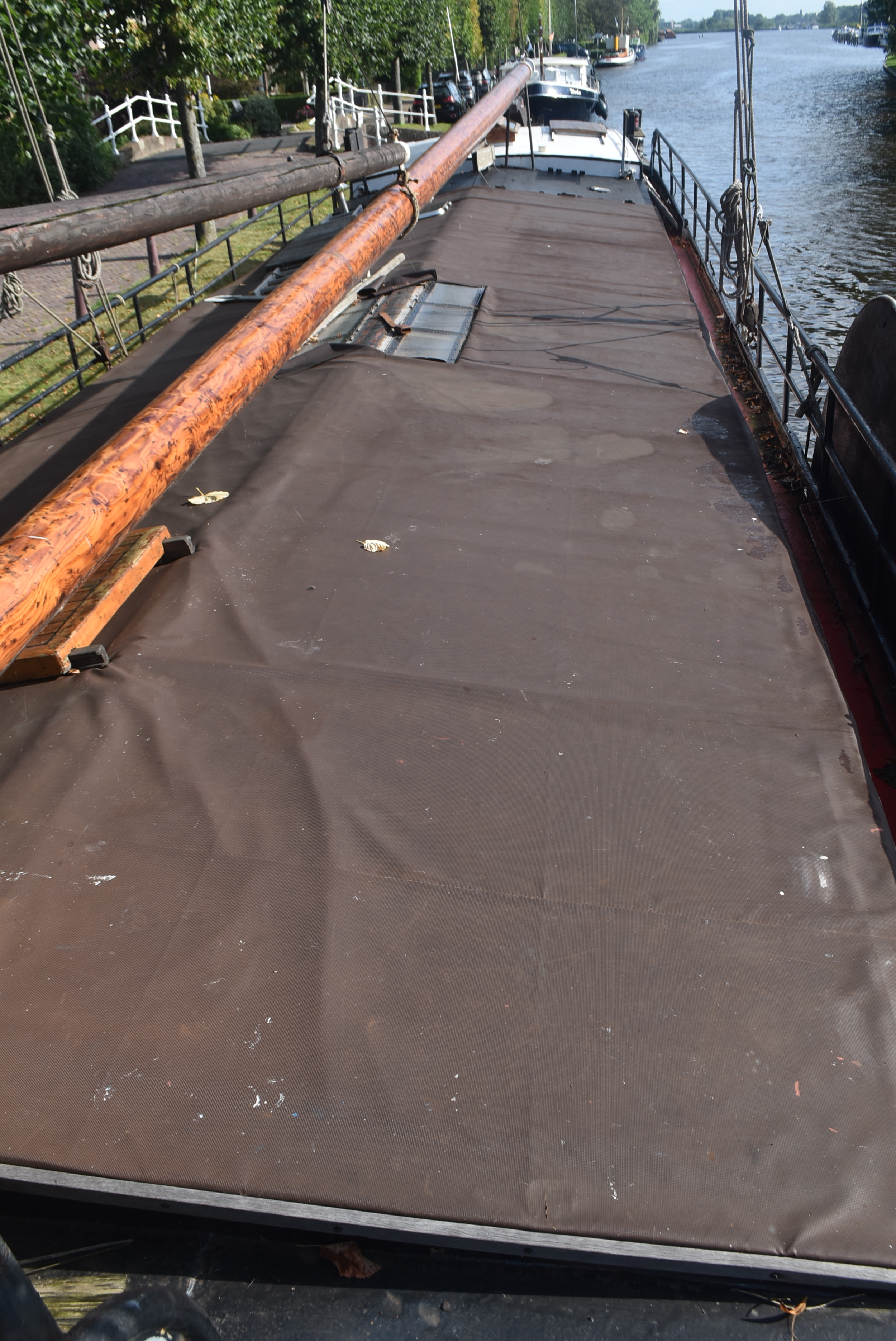De lengte van 25,15 is de lengte over alles. De breedte over alles inclusief de zwaarden is ca. 4.75. Vooronder is in 2019 opnieuw ingetimmerd. Voorschip is kaal, ontroest en in de spindelolie gezet. Onder de luikenkap woonkamer met kombuis. Roef is volledig ingetimmerd met achteronder als tweepersoonsbed. Complete tuigage met recent nieuw grootzeil. Blokken in goed staat. Spanners zijn geserviced. Nieuwe vallen. Zwaardlieren zijn goed en werkend. Zeillier is goed bruikbaar maar moet onderhoud hebben. Ankerlier/strijklier is gangbaar.