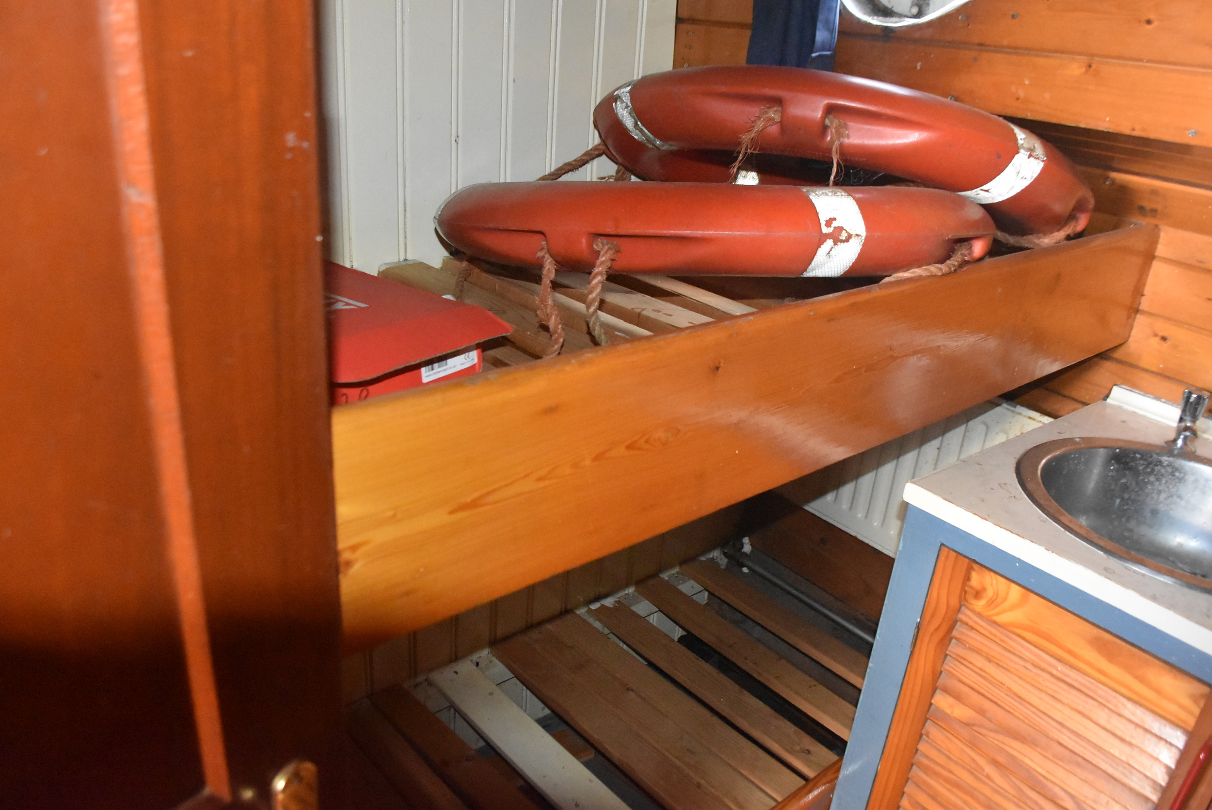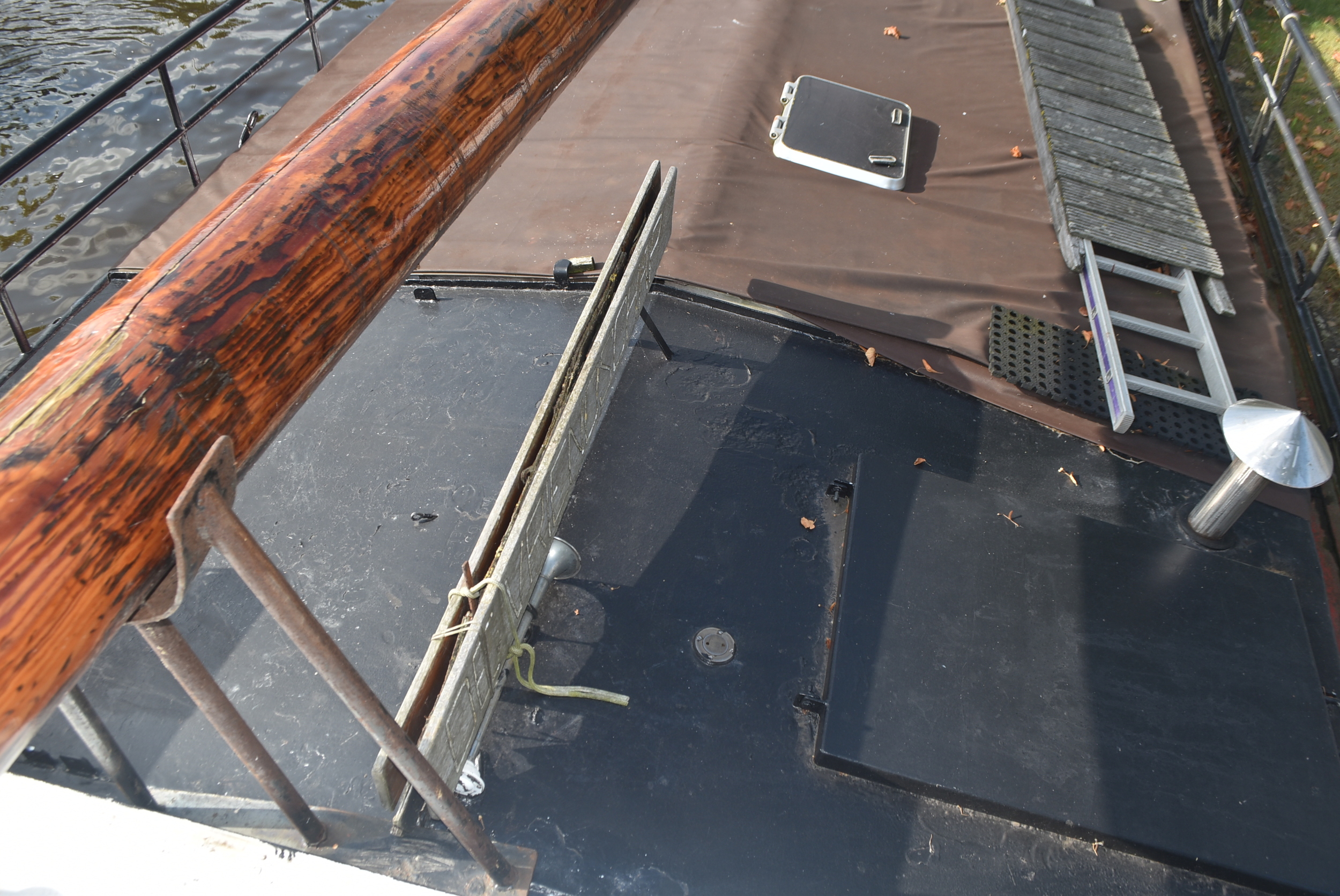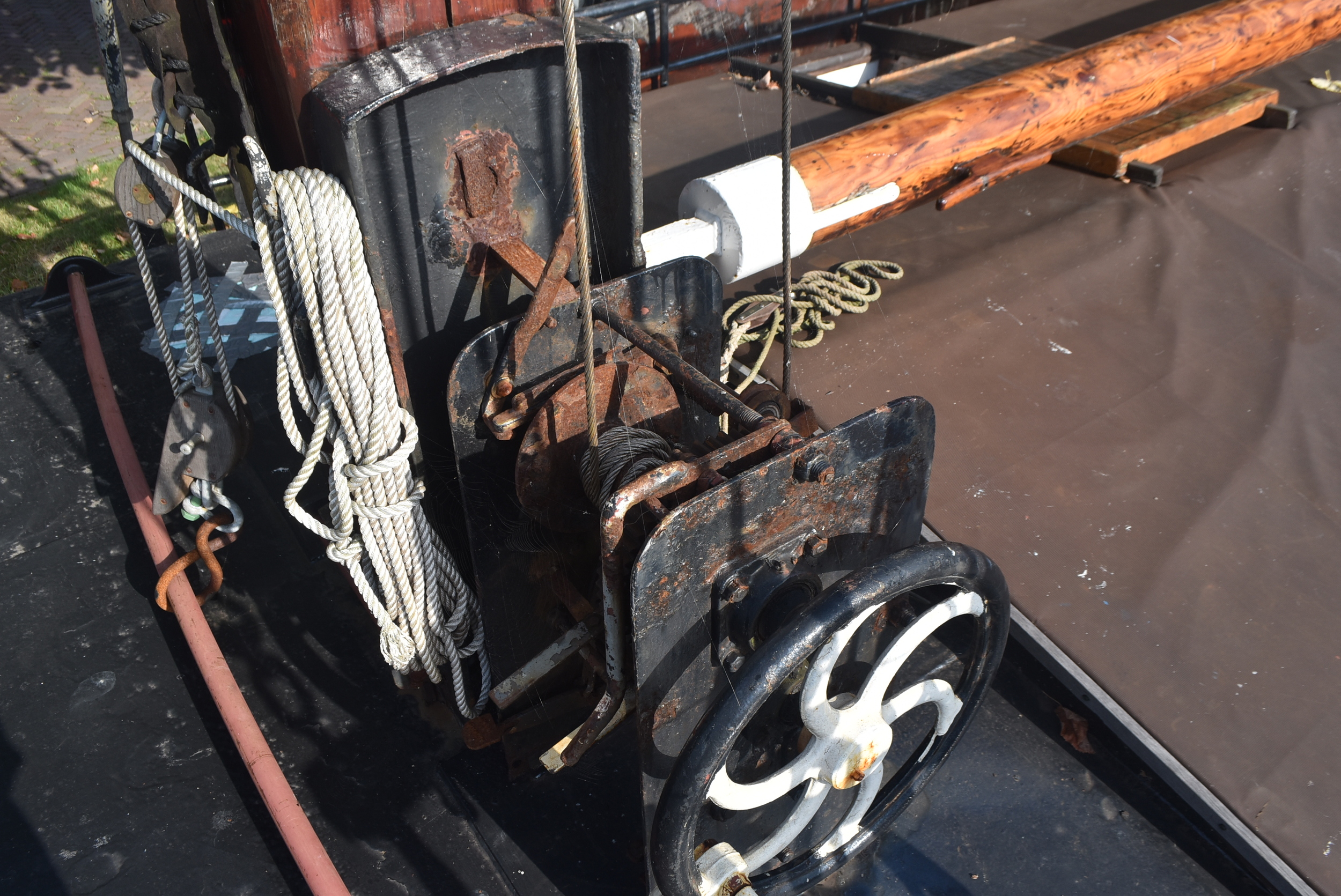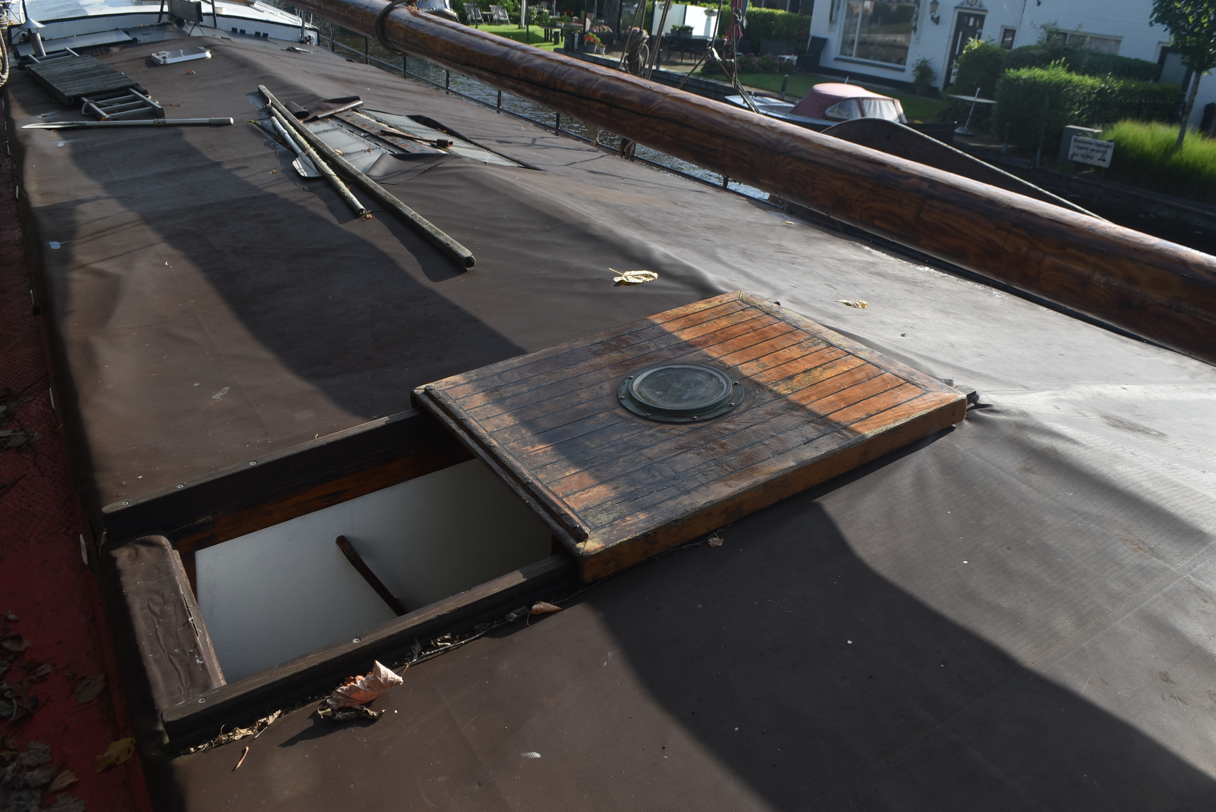 De lengte van 25,15 is de lengte over alles. De breedte over alles inclusief de zwaarden is ca. 4.75. Vooronder is in 2019 opnieuw ingetimmerd. Voorschip is kaal, ontroest en in de spindelolie gezet. Onder de luikenkap woonkamer met kombuis. Roef is volledig ingetimmerd met achteronder als tweepersoonsbed. Complete tuigage met recent nieuw grootzeil. Blokken in goed staat. Spanners zijn geserviced. Nieuwe vallen. Zwaardlieren zijn goed en werkend. Zeillier is goed bruikbaar maar moet onderhoud hebben. Ankerlier/strijklier is gangbaar.