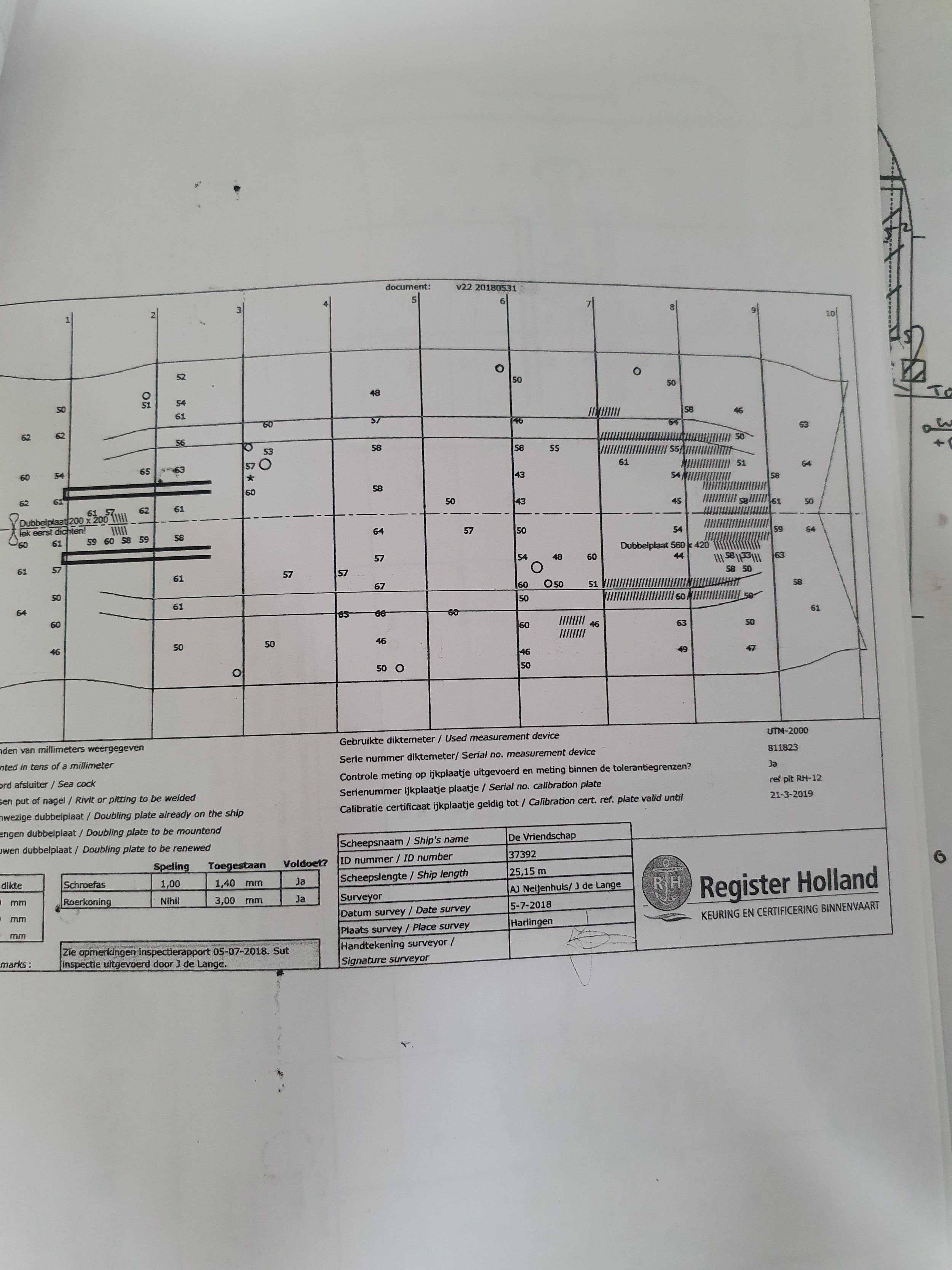 Er is een vlakkeuring gemaakt in januari 2022 bij koop van het schip door huidige eigenaar. Geconstateerde gebreken zijn gerepareerd.