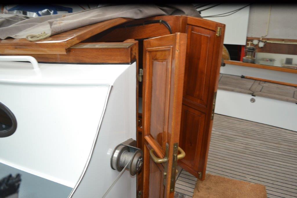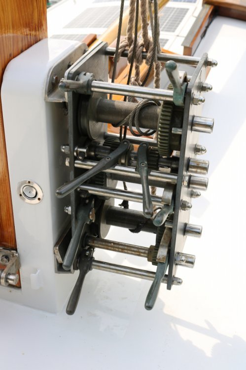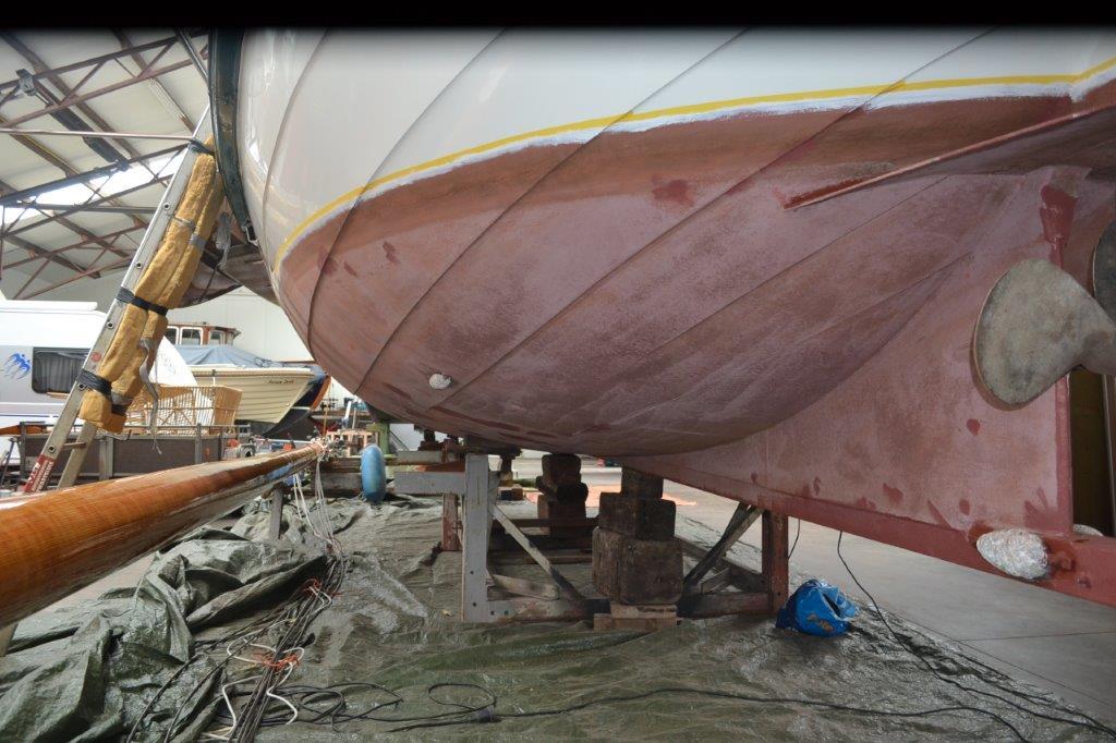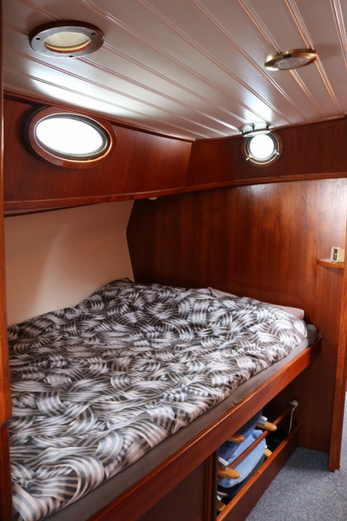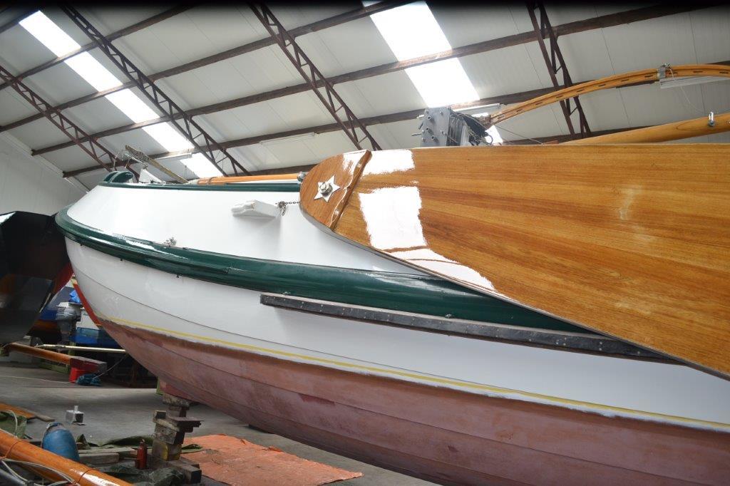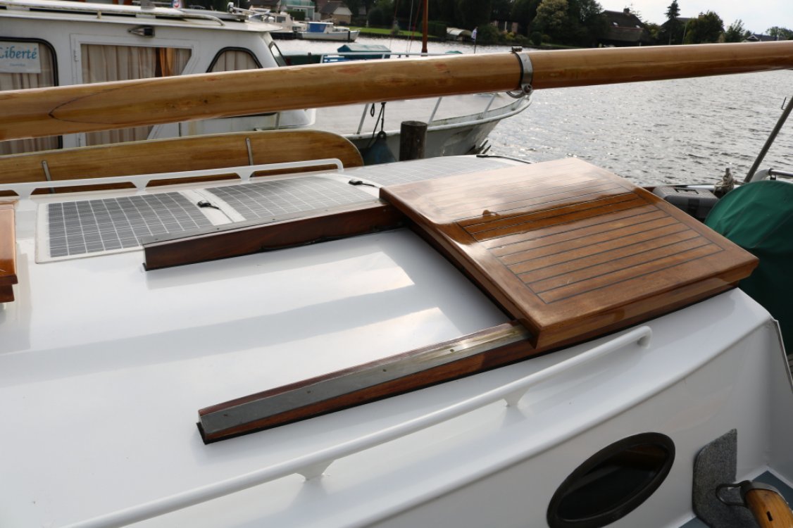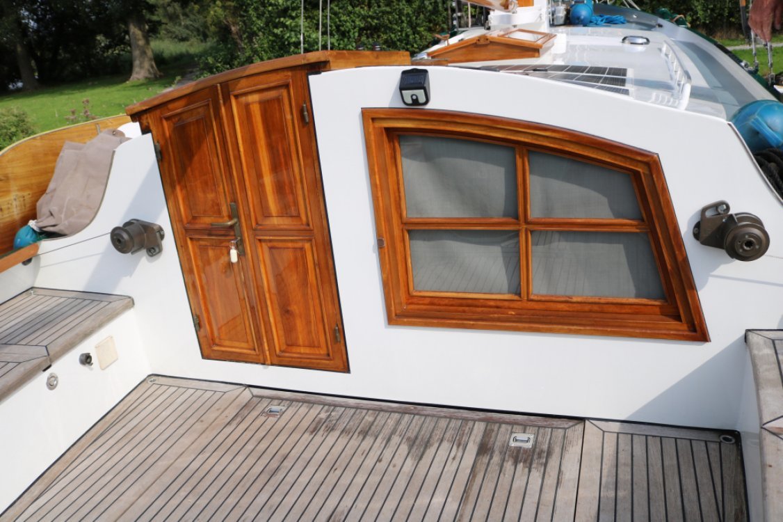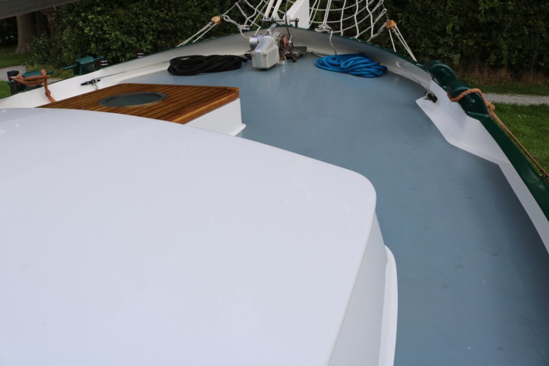 Het schip is professioneel gespoten in een hoogwaardige 2 componenten verf. Op de gebruikelijke slijtplekken is veel roest vast staal gebruikt. Bewust gekozen voor wat minder houtwerk, waardoor het schip relatief iets makkelijker is in het onderhoud.