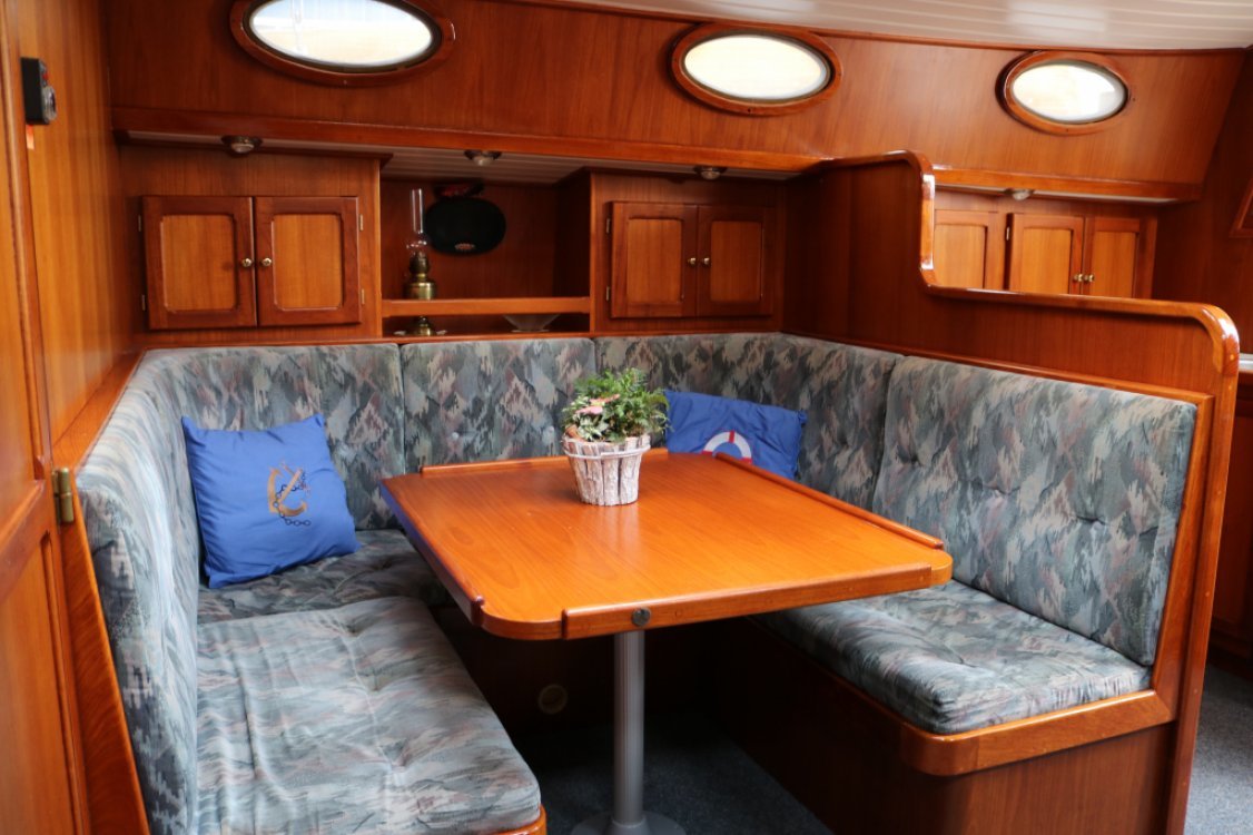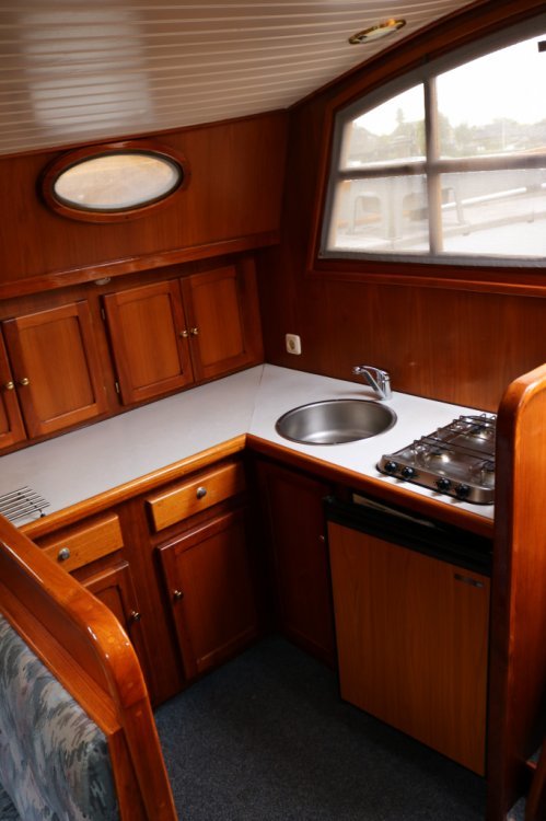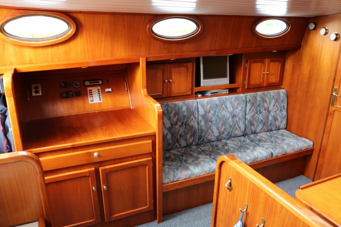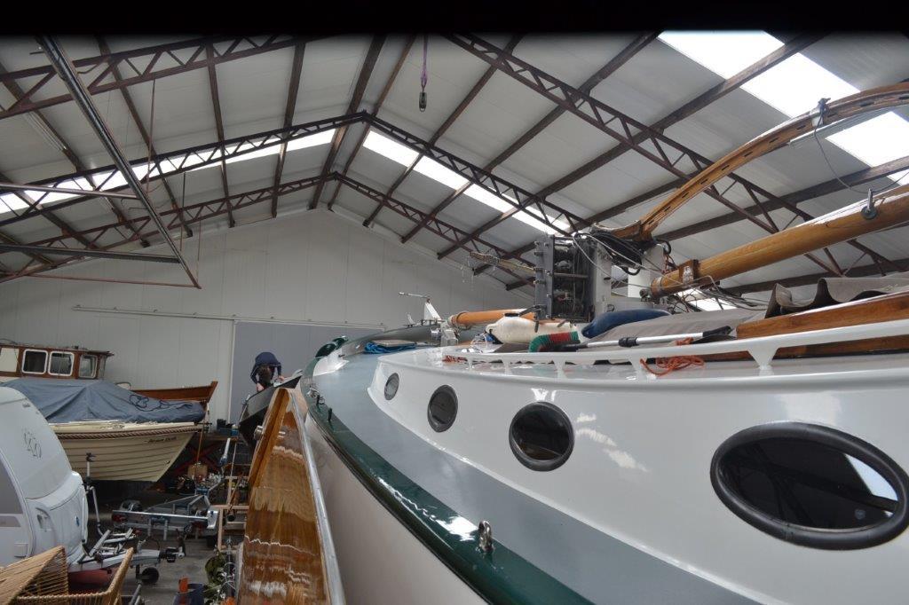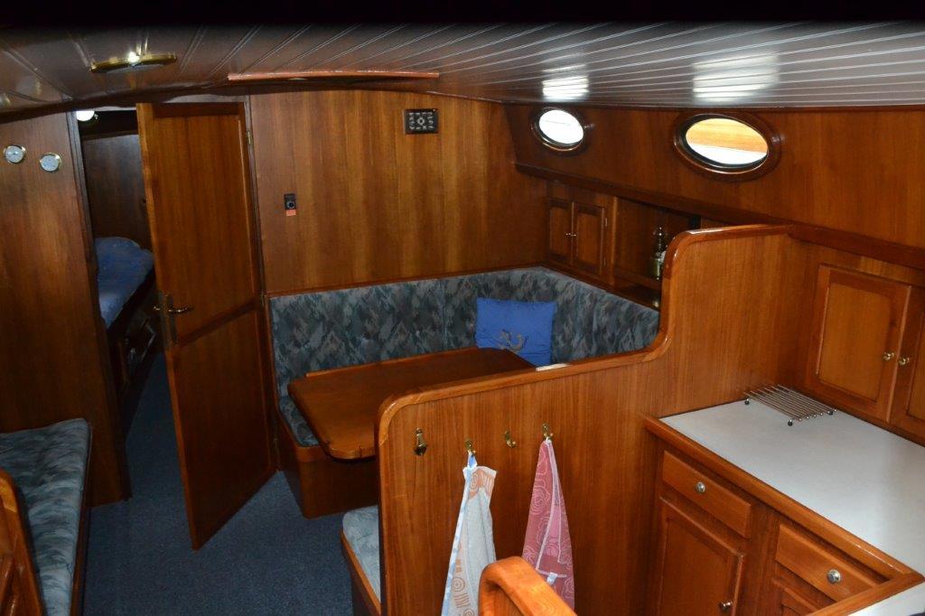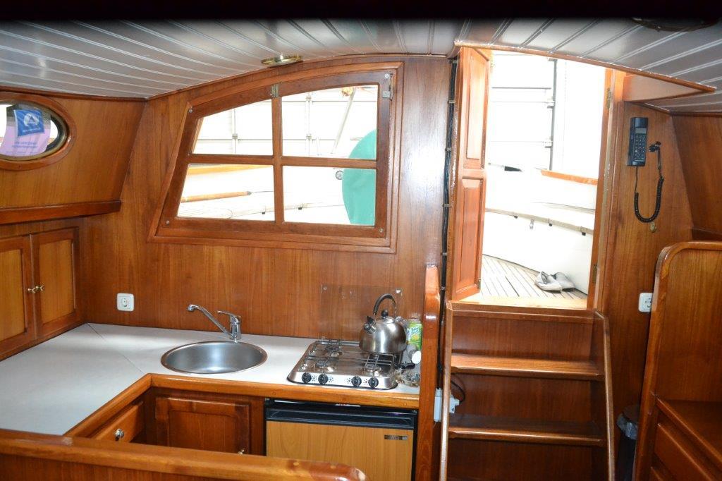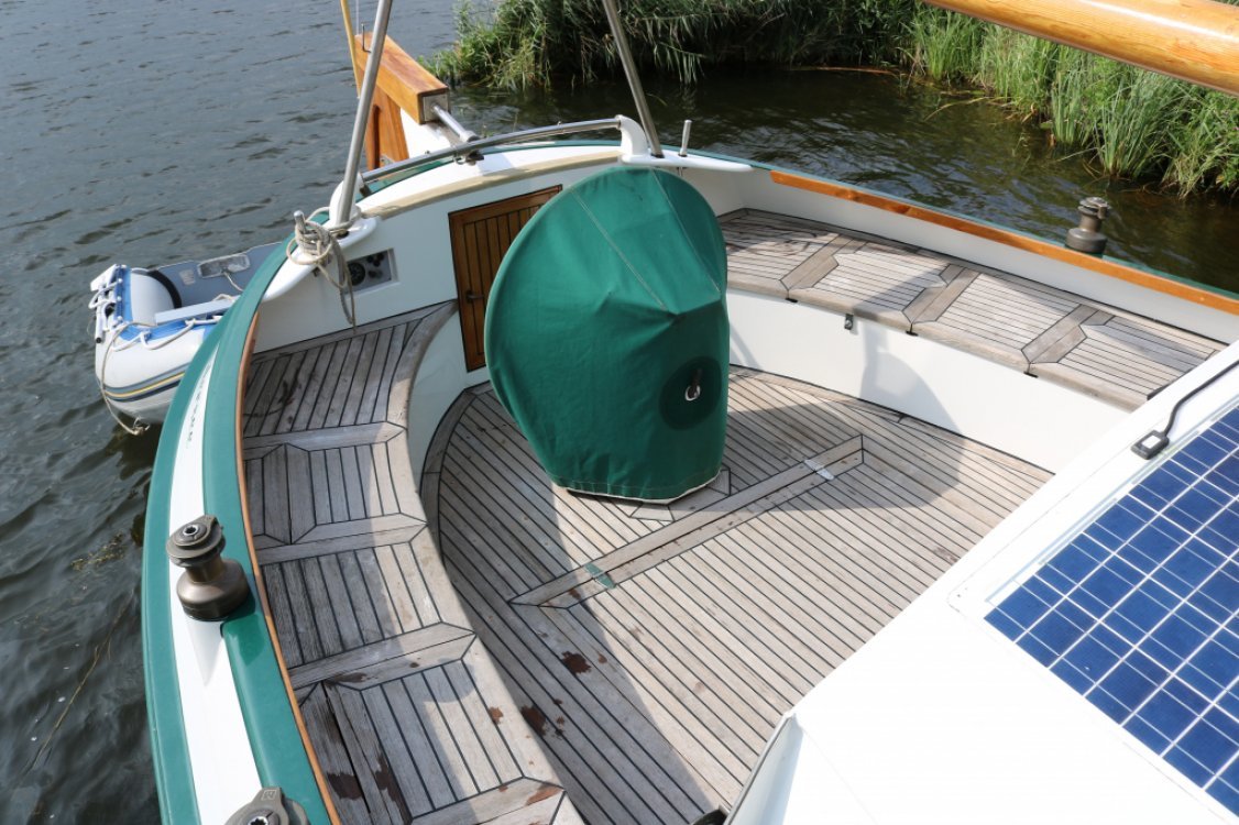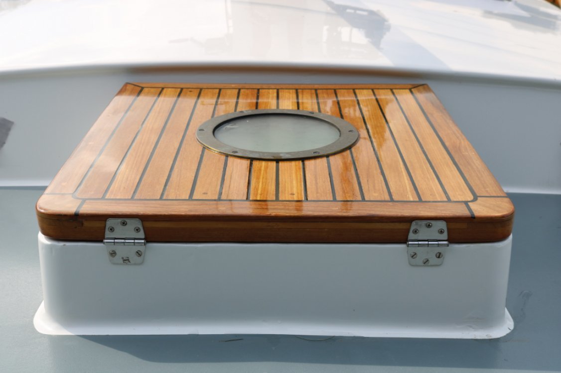 Het schip is professioneel gespoten in een hoogwaardige 2 componenten verf. Op de gebruikelijke slijtplekken is veel roest vast staal gebruikt. Bewust gekozen voor wat minder houtwerk, waardoor het schip relatief iets makkelijker is in het onderhoud.