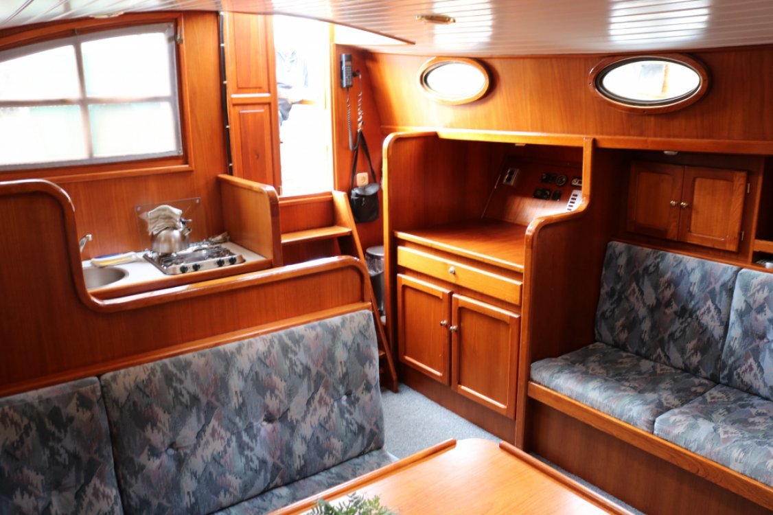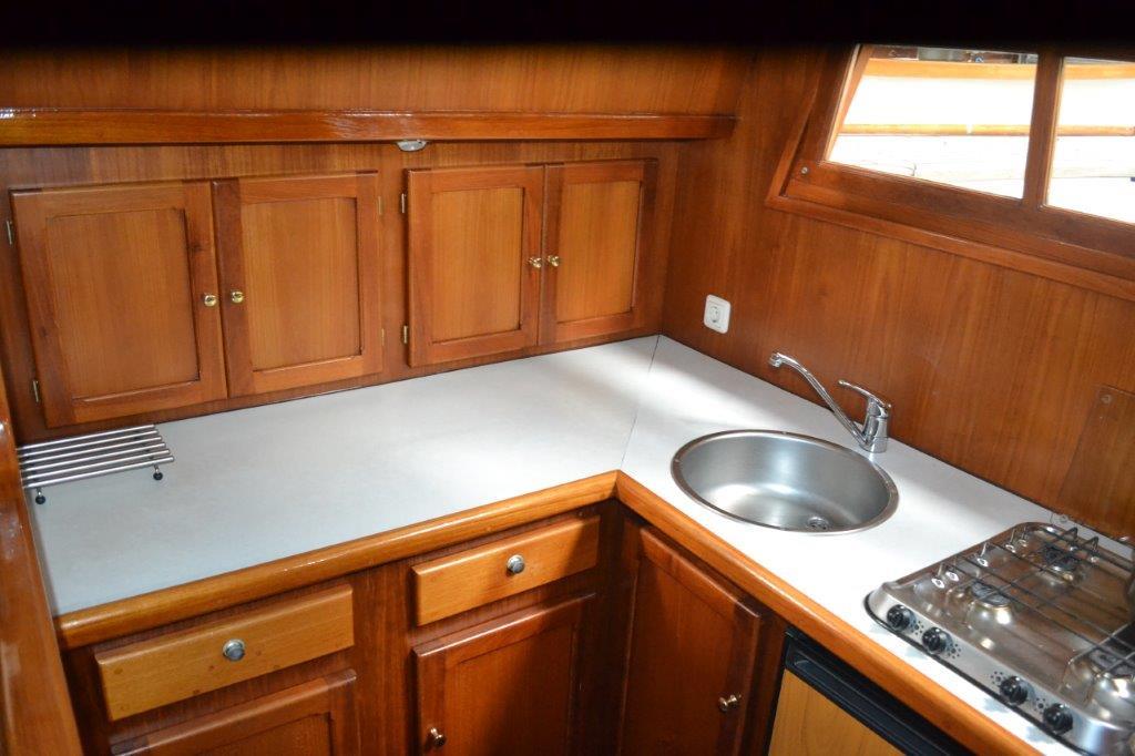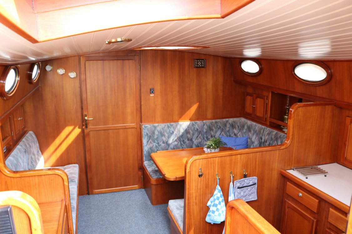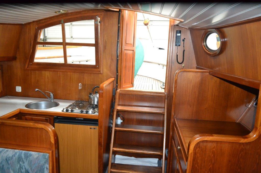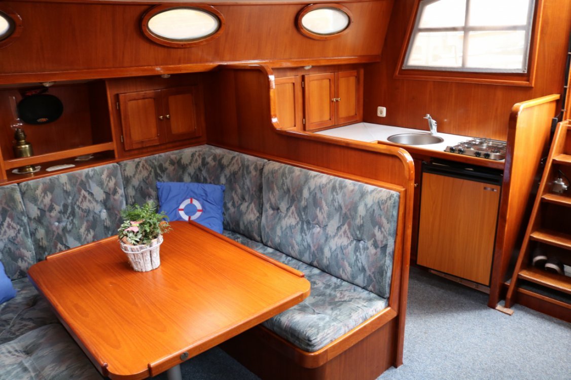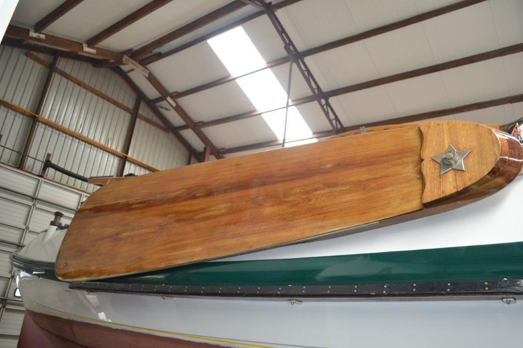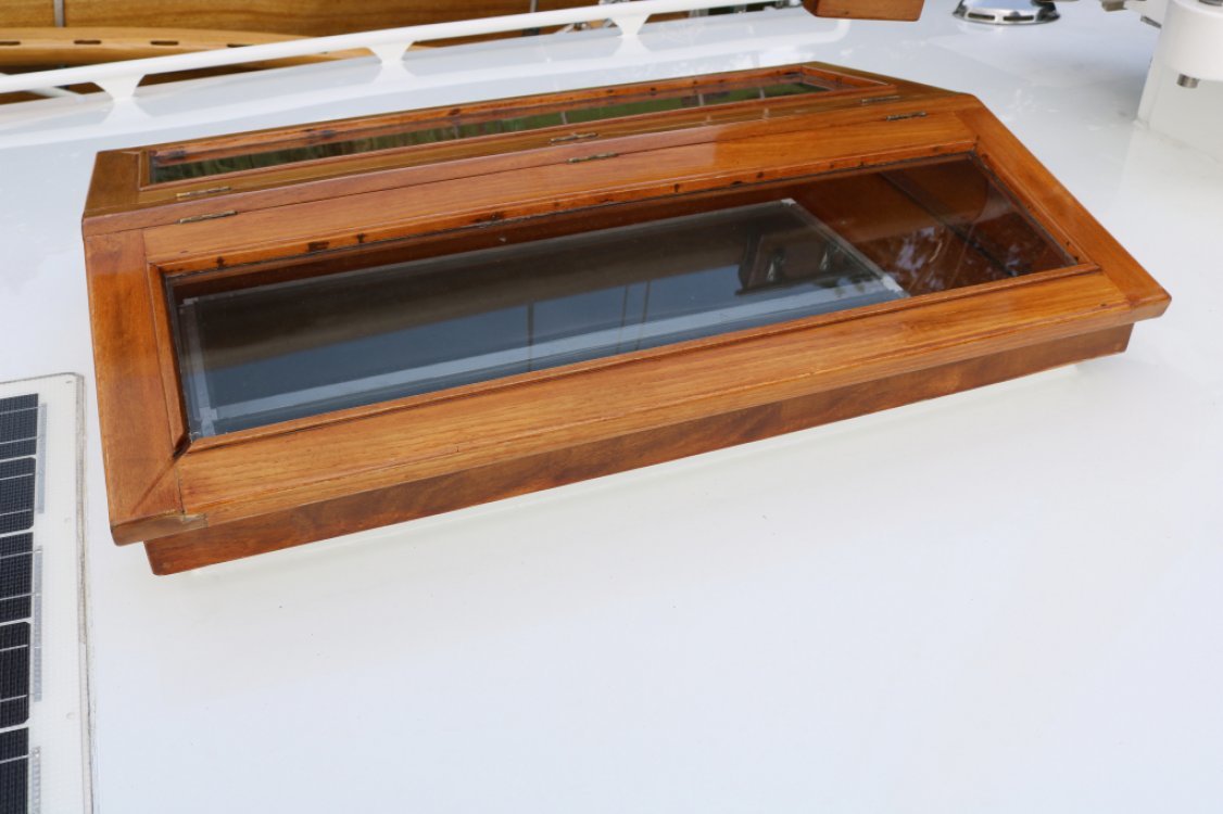 Het schip is professioneel gespoten in een hoogwaardige 2 componenten verf. Op de gebruikelijke slijtplekken is veel roest vast staal gebruikt. Bewust gekozen voor wat minder houtwerk, waardoor het schip relatief iets makkelijker is in het onderhoud.