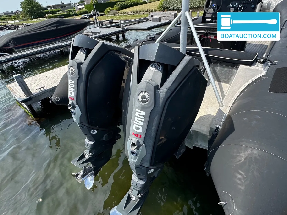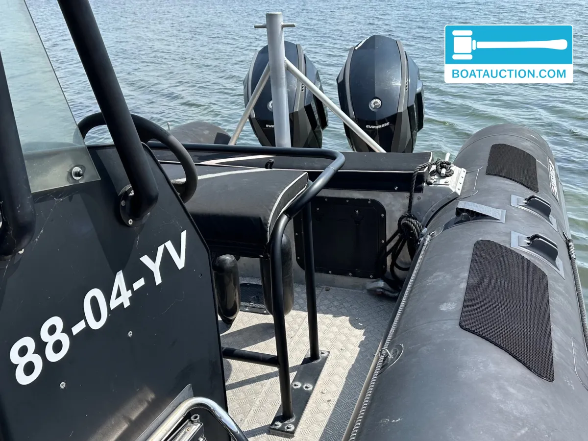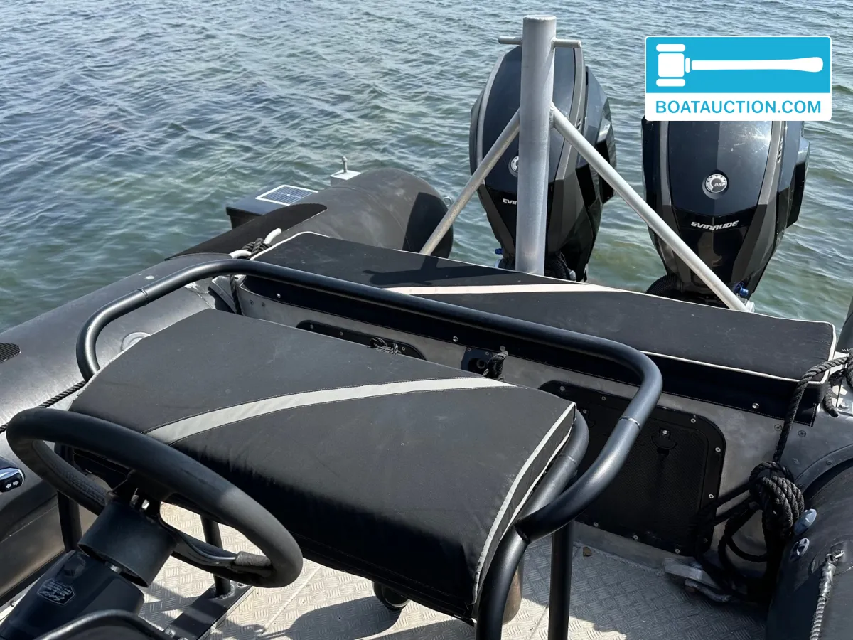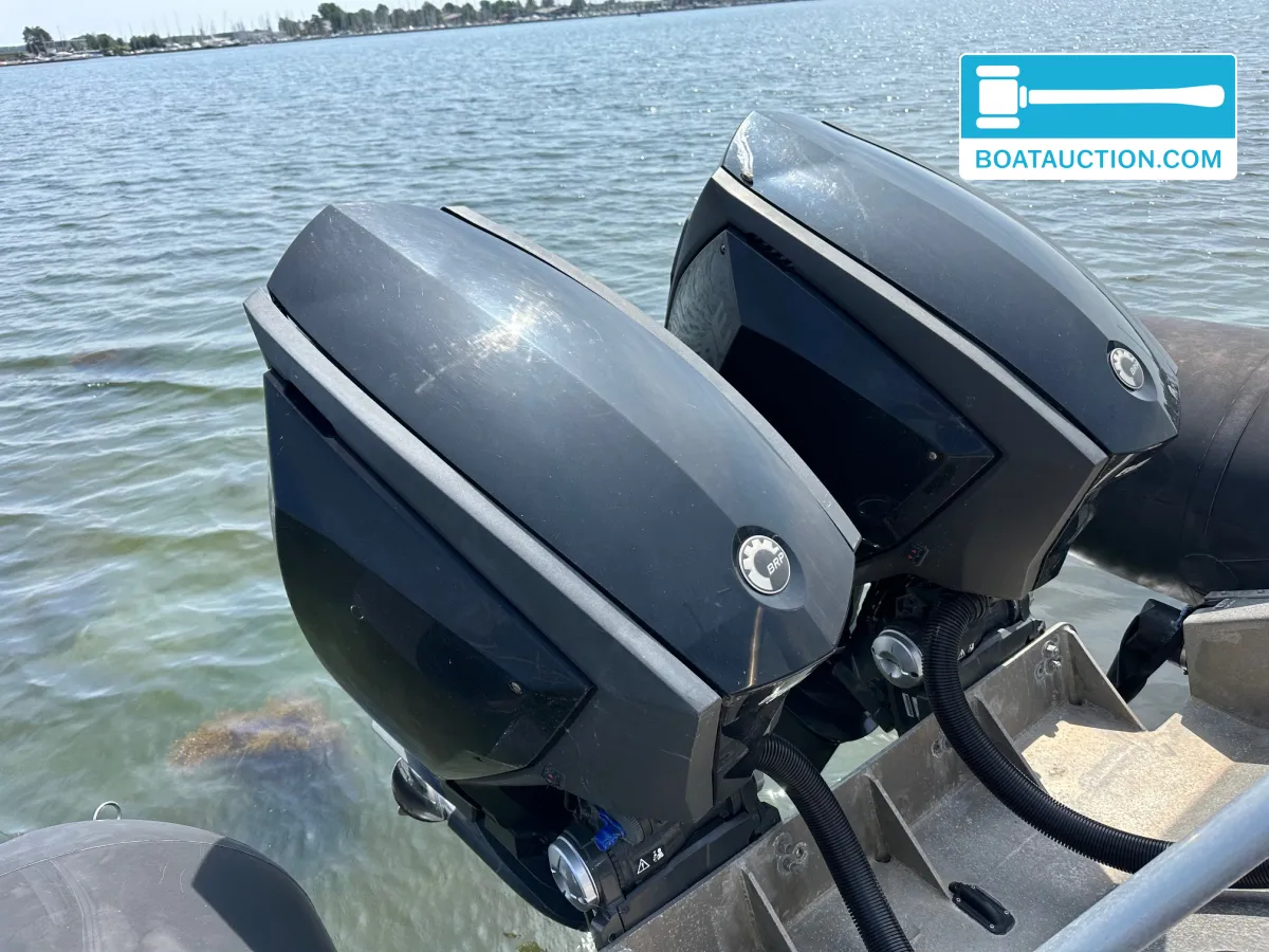 Alunautic RB800 nu in de online veiling. Iedereen kan meebieden tot en met 24 november 2025.De Alunautic RB800 is uitgerust met twee Evinrude 250 HO buitenboordmotoren. Deze motoren zijn in 2020 geplaatst en hebben sindsdien beperkt aantal draaiuren gemaakt. Beide motoren beschikken over een elektrisch startsysteem en leveren elk 250 pk, wat zorgt voor een totaal vermogen van 500 pk. De motoren draaien op benzine en zijn geschikt voor hoge snelheden en krachtige acceleratie, wat de boot inzetbaar maakt voor sportieve doeleinden, transport of als werkboot.