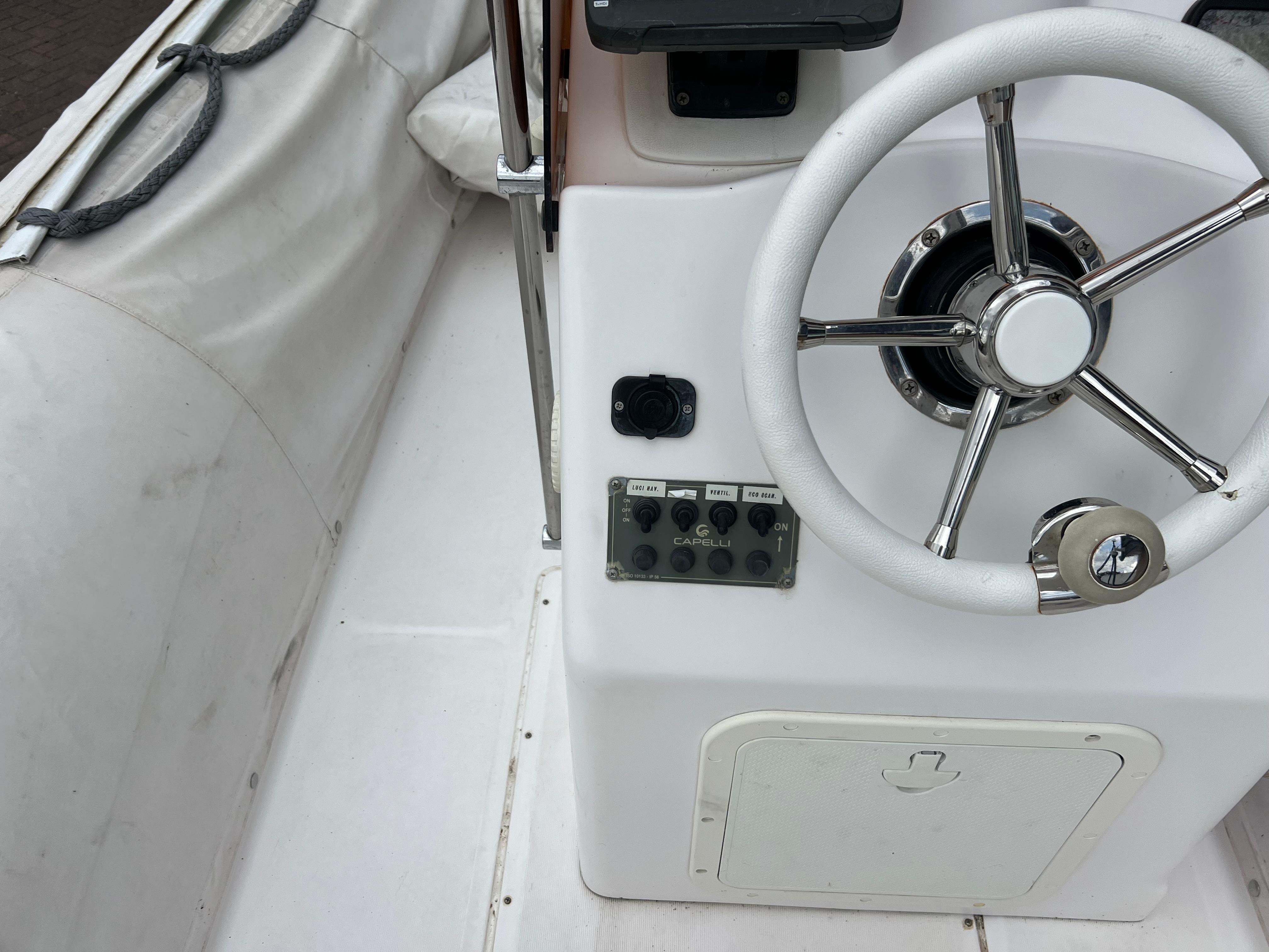 De Capelli is voorzien van een hoes om de tubes te beschermen, powertrim, een kompas, lowrance navigatie, zitbank met rolkussen, anker, lijnen en fenders.