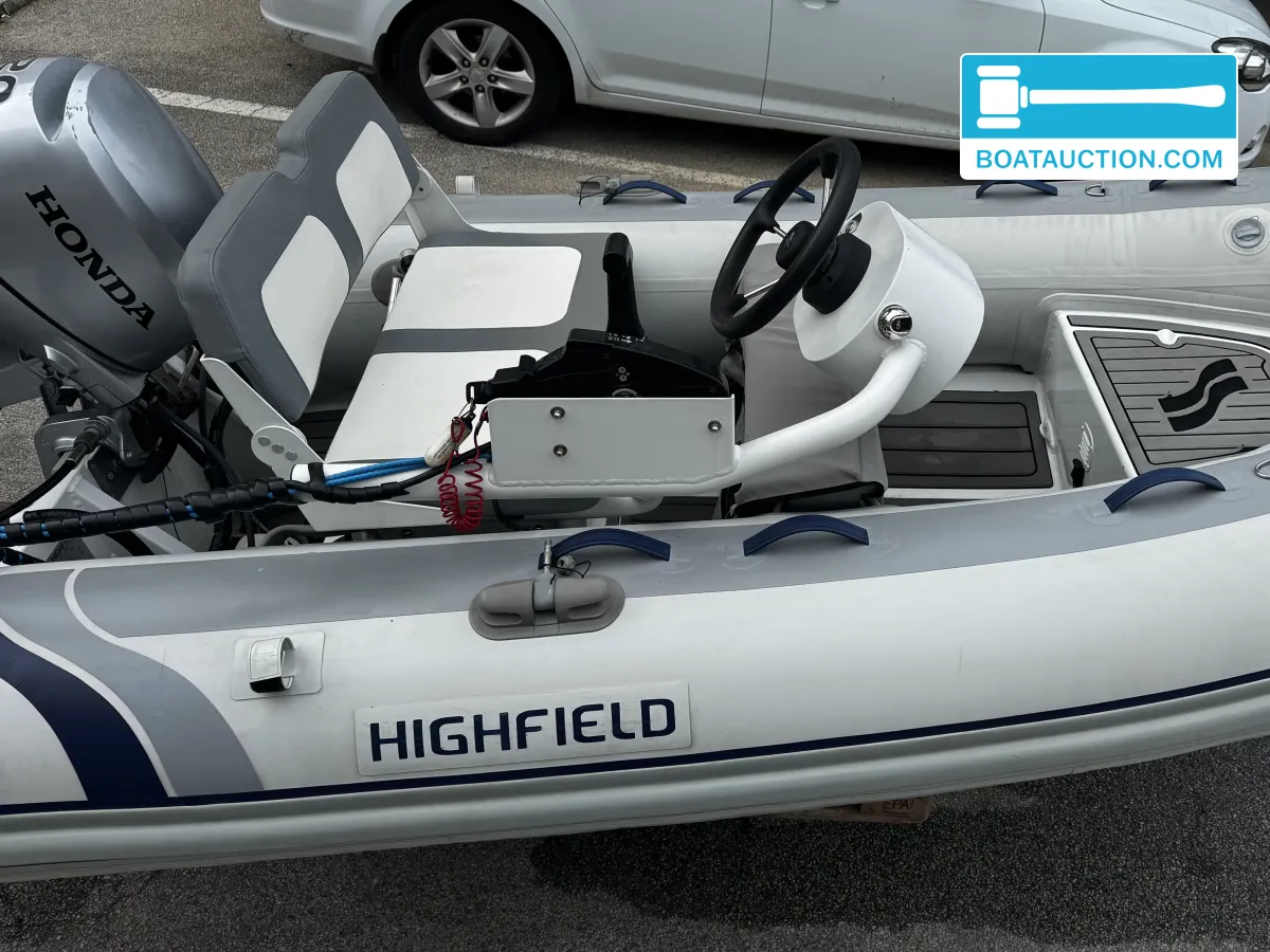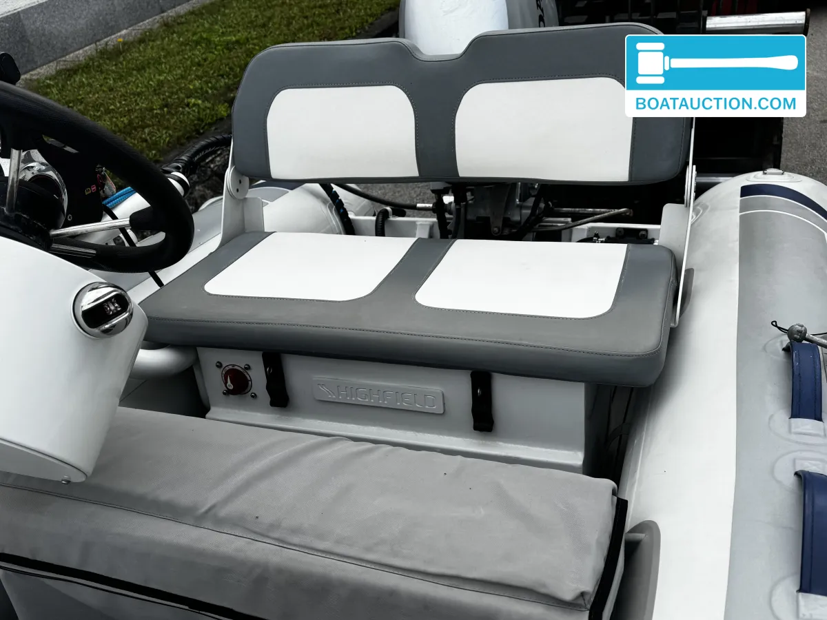 Uitrusting en gebruikDe tender is gebruikt als bijboot op een jacht en is voornamelijk ingezet voor dagtochten. Bij de boot worden twee afdekzeilen geleverd: één originele van Highfield en één op maat gemaakte hoes. Deze hoezen bieden bescherming tegen weersinvloeden wanneer de boot niet in gebruik is.