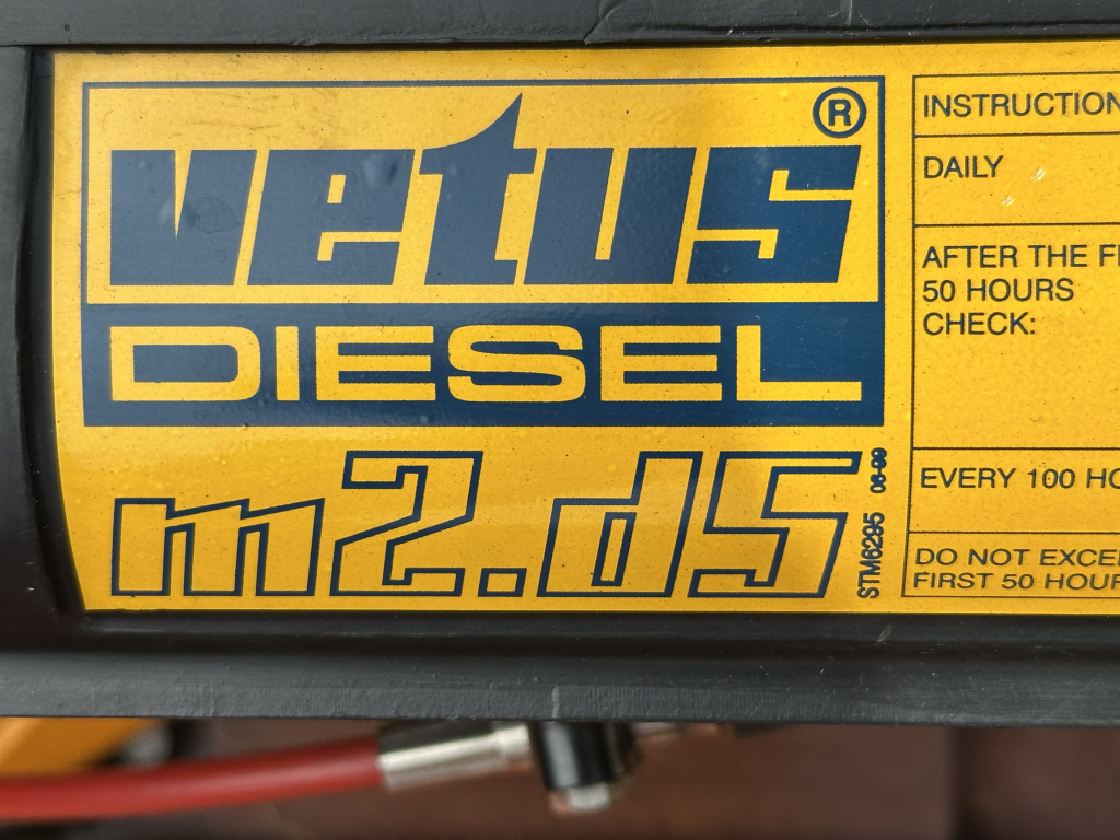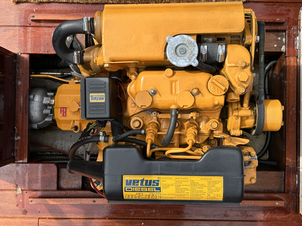 Motor: Vetus M2.D5 (binnenboord, 13 pk, diesel, 2-cilinder, elektrisch gestart, ± 810 draaiuren)