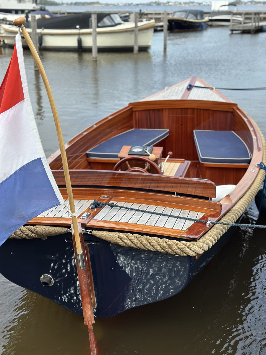 Deze klassiek gelijnde sloep met haar verfijnde afwerking trekt overal bewonderende blikken. Er is plaats voor zes personen, dus neem gerust vrienden of familie mee voor een ontspannen dag varen. De krachtige, stille Vetus-motor laat je moeiteloos over het water glijden – je bent zó op je bestemming.