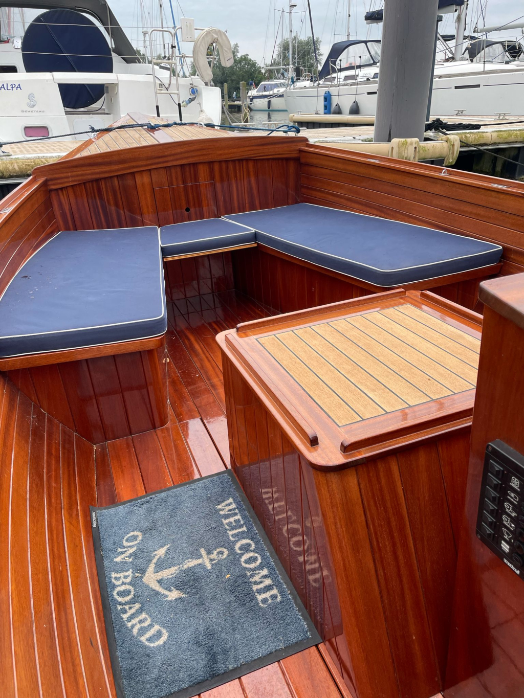 Dek & exterieur: Massief teakvloer, teak dekbekleding, kabelaring aanwezig