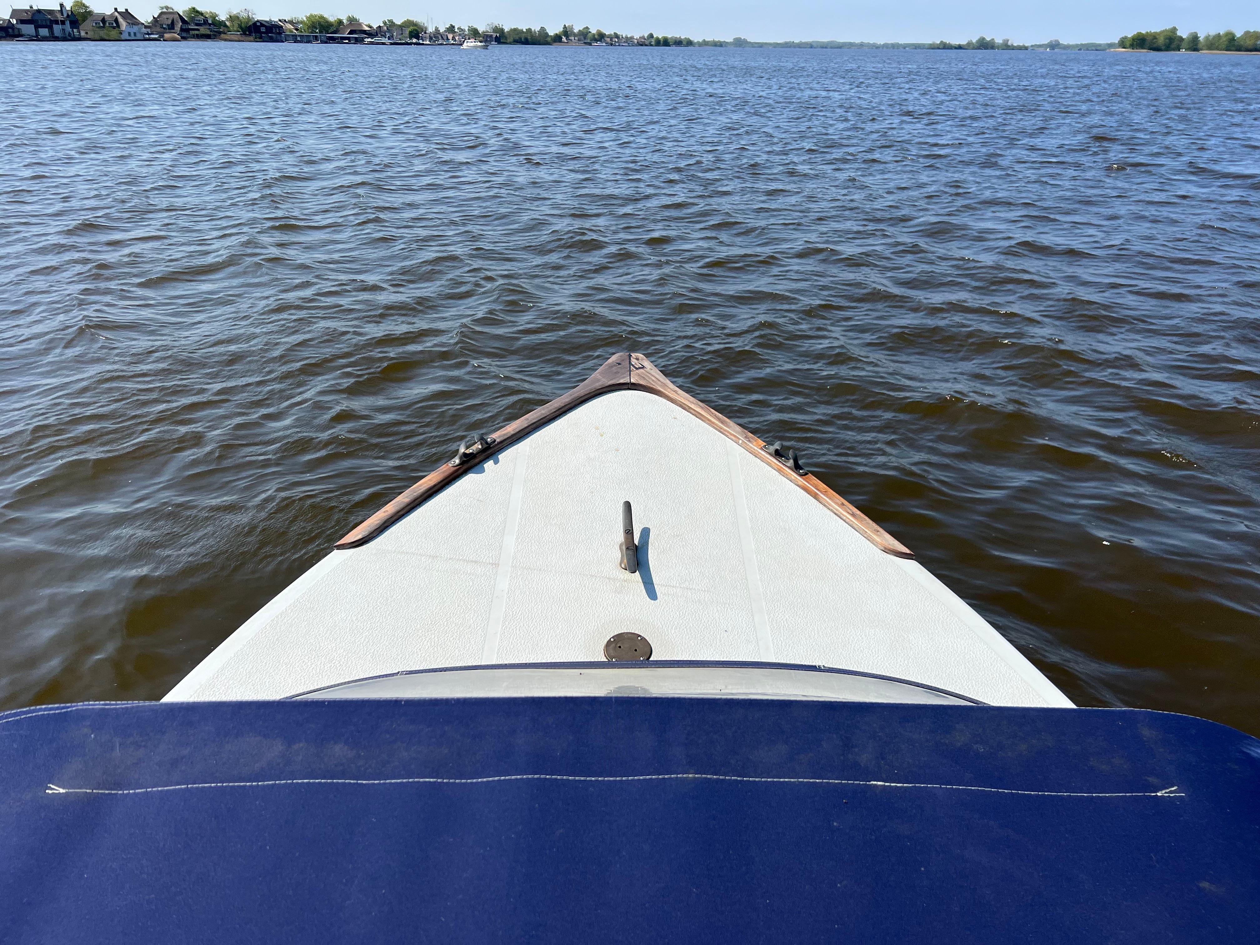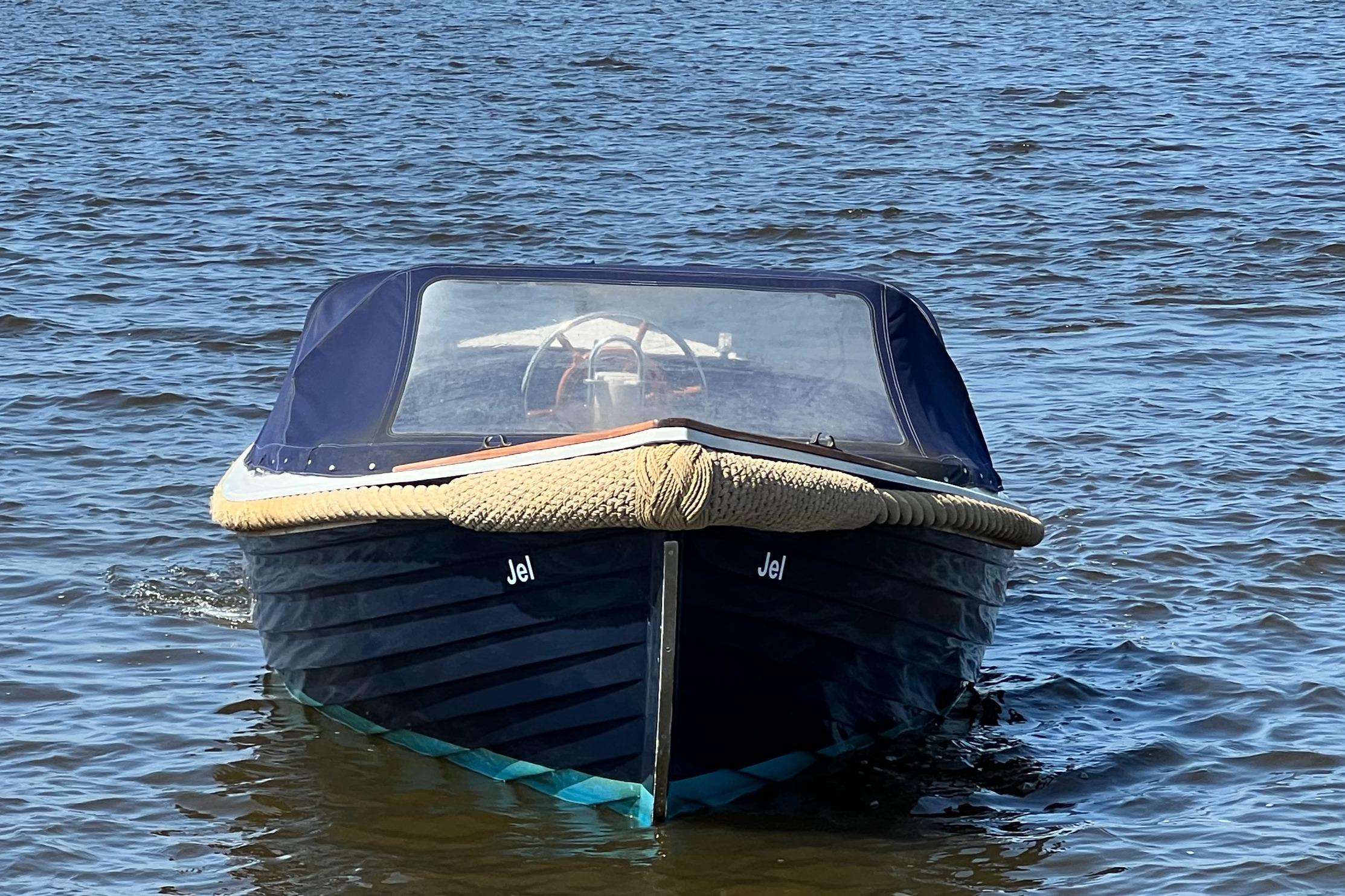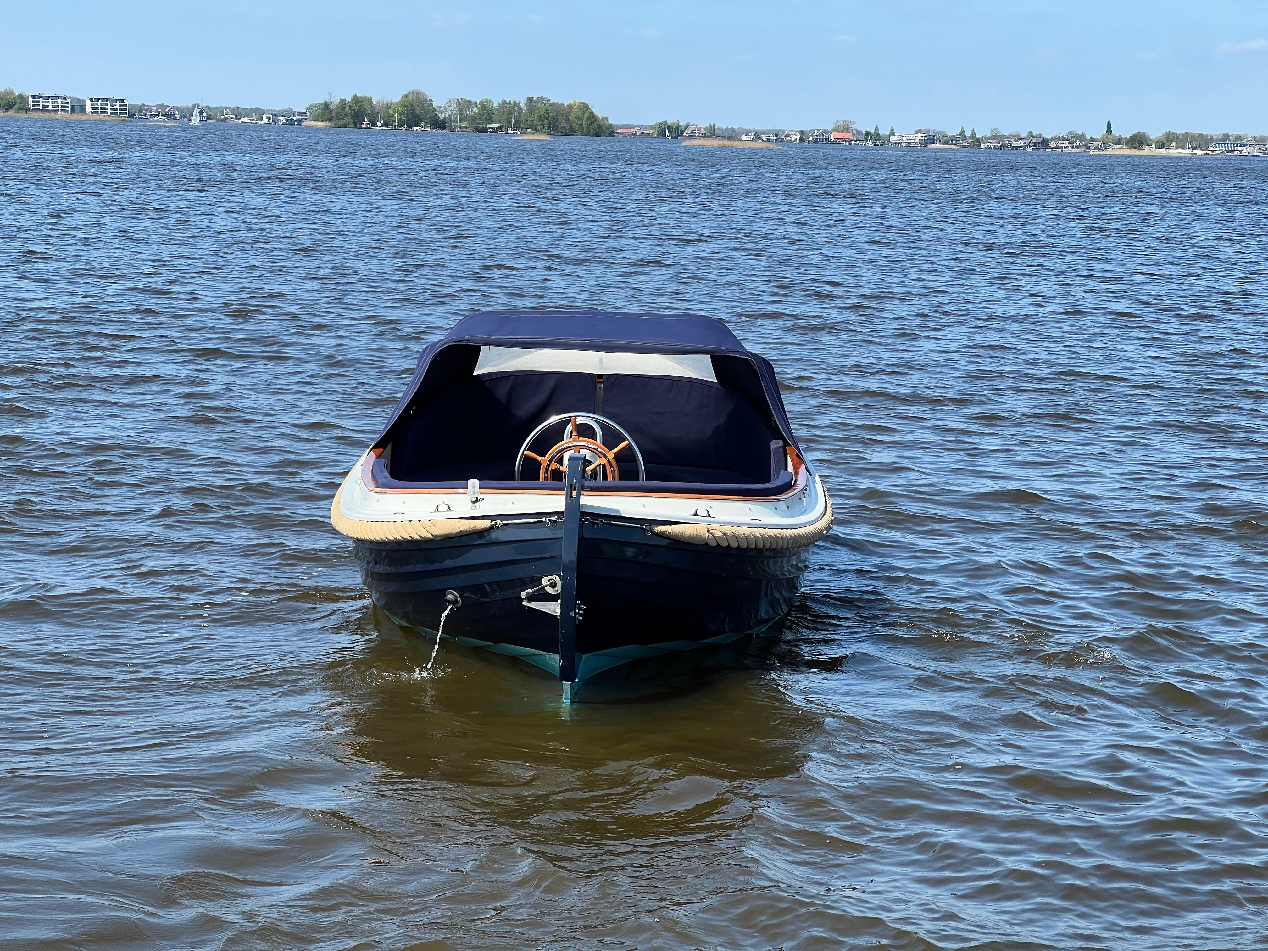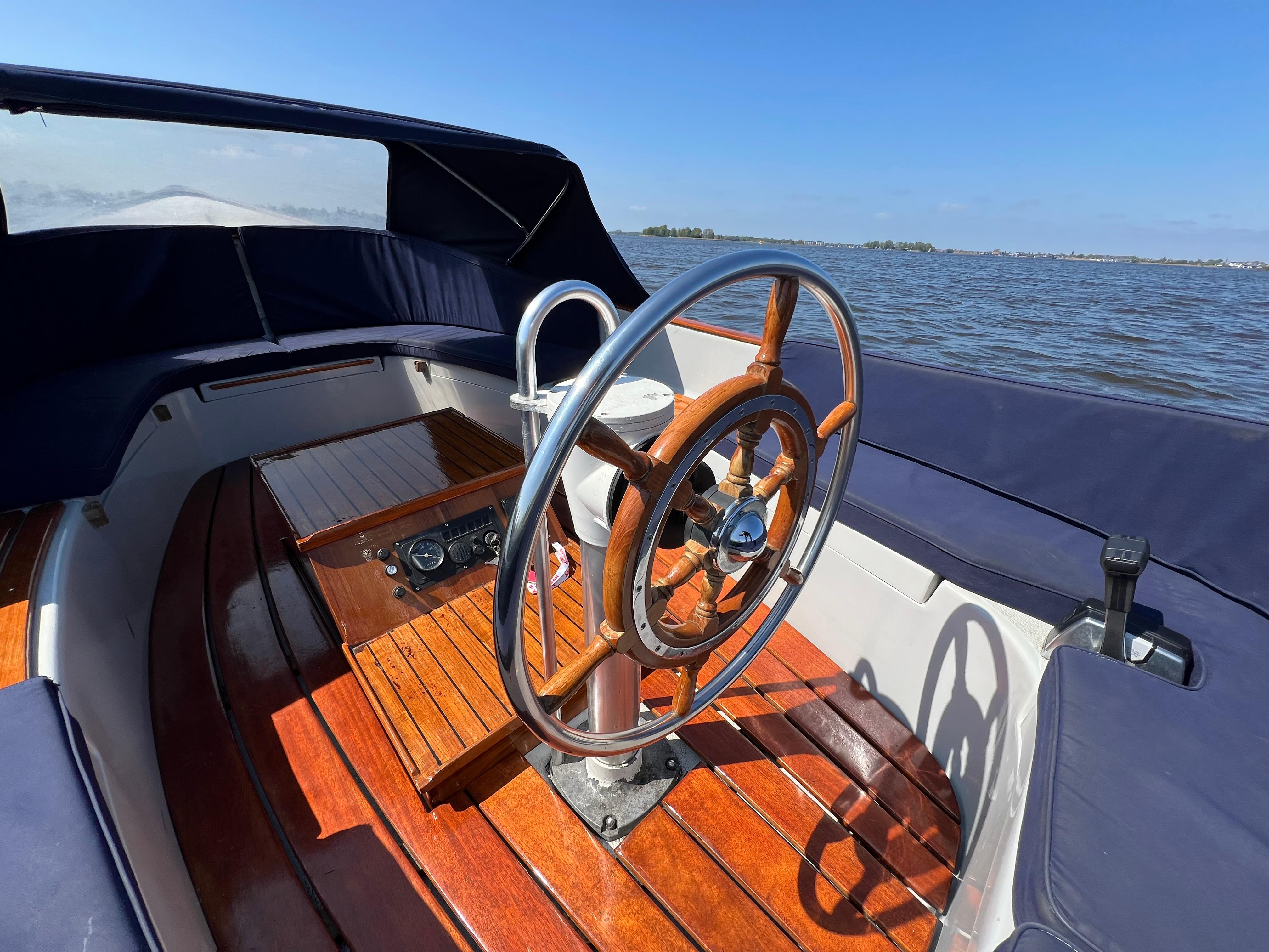 De boot is voorzien van een volledig afsluitbare buiskap, luxe kussenset, houten gelakte vlonder, veel opbergruimte en gelakte instapjes.