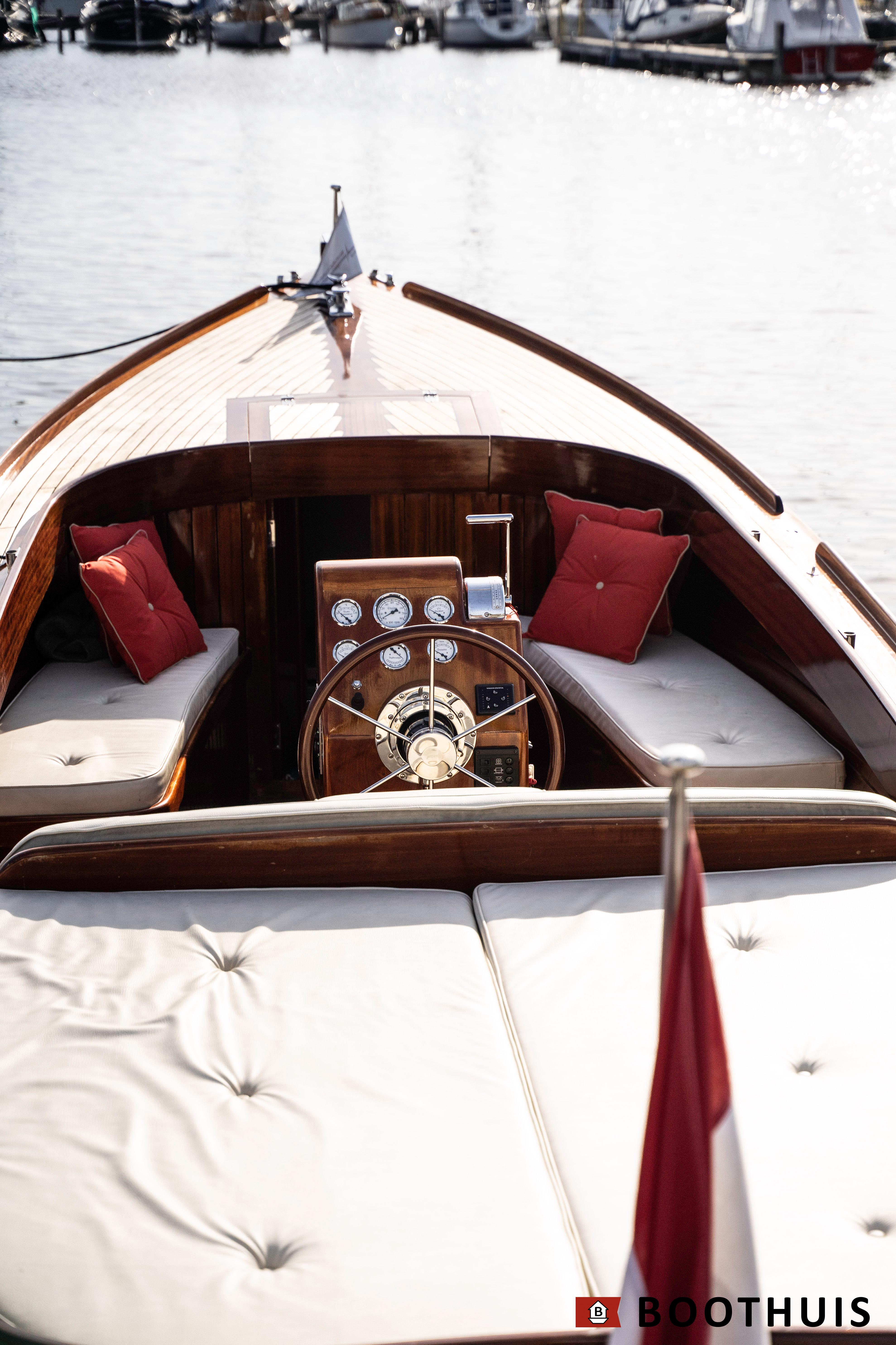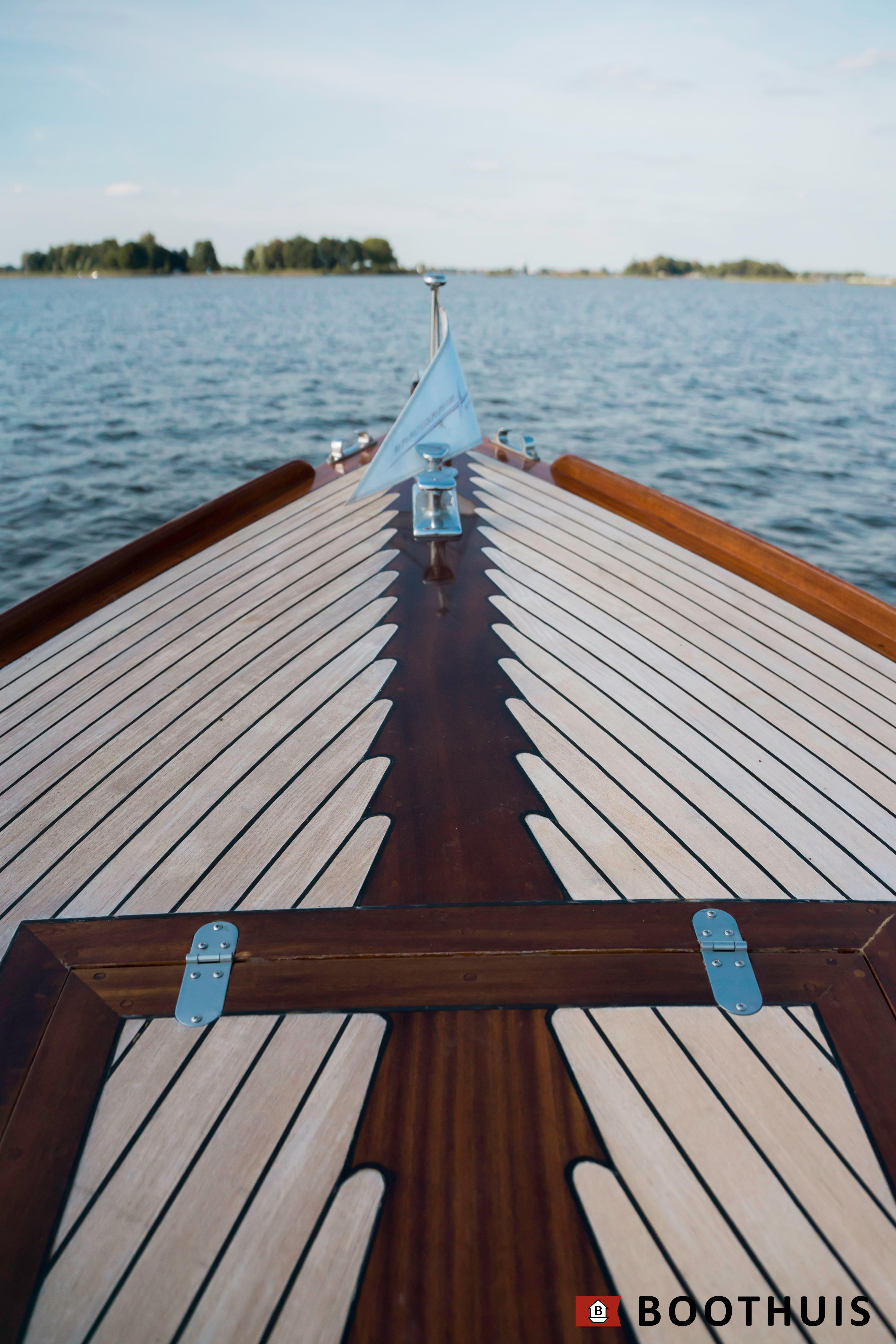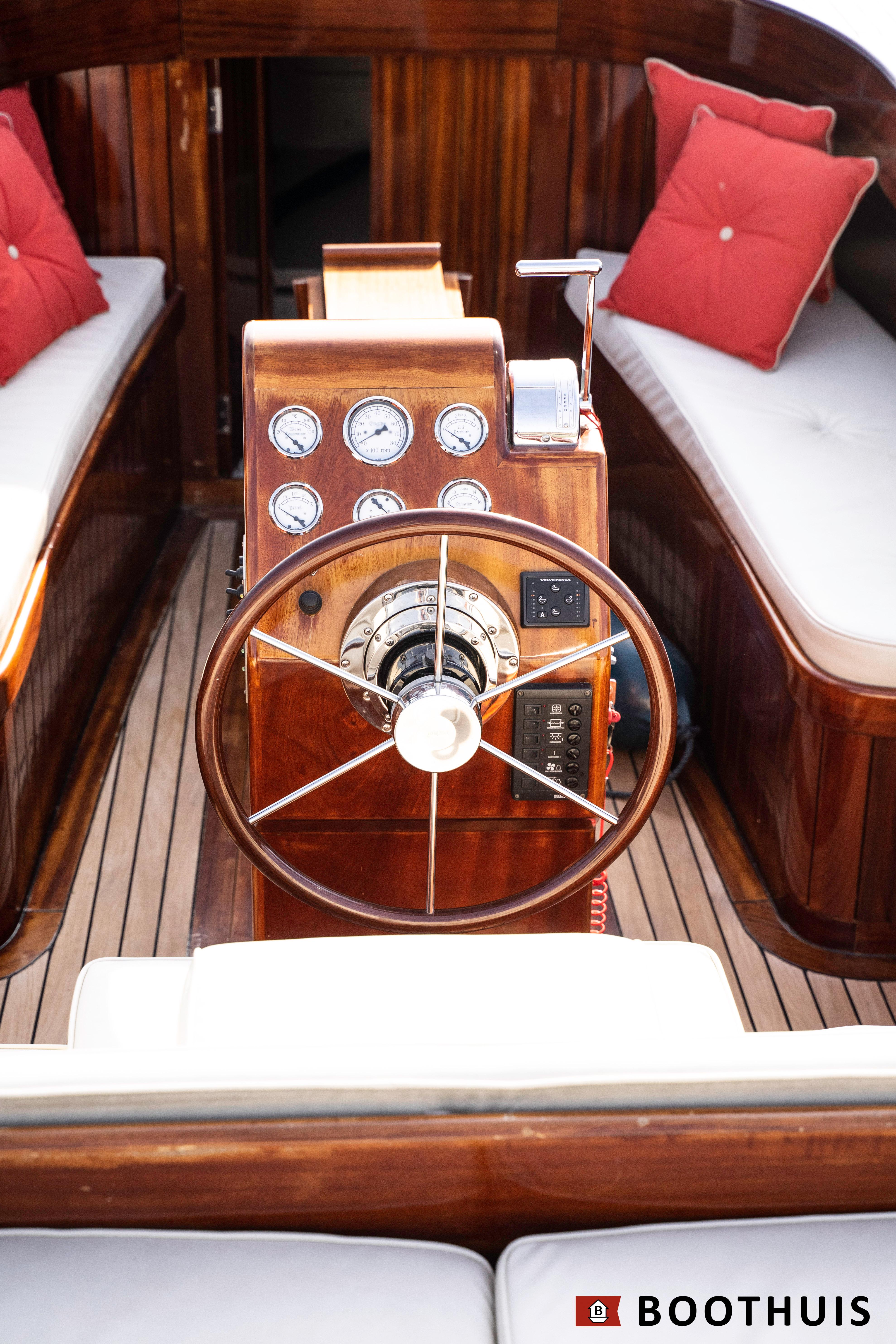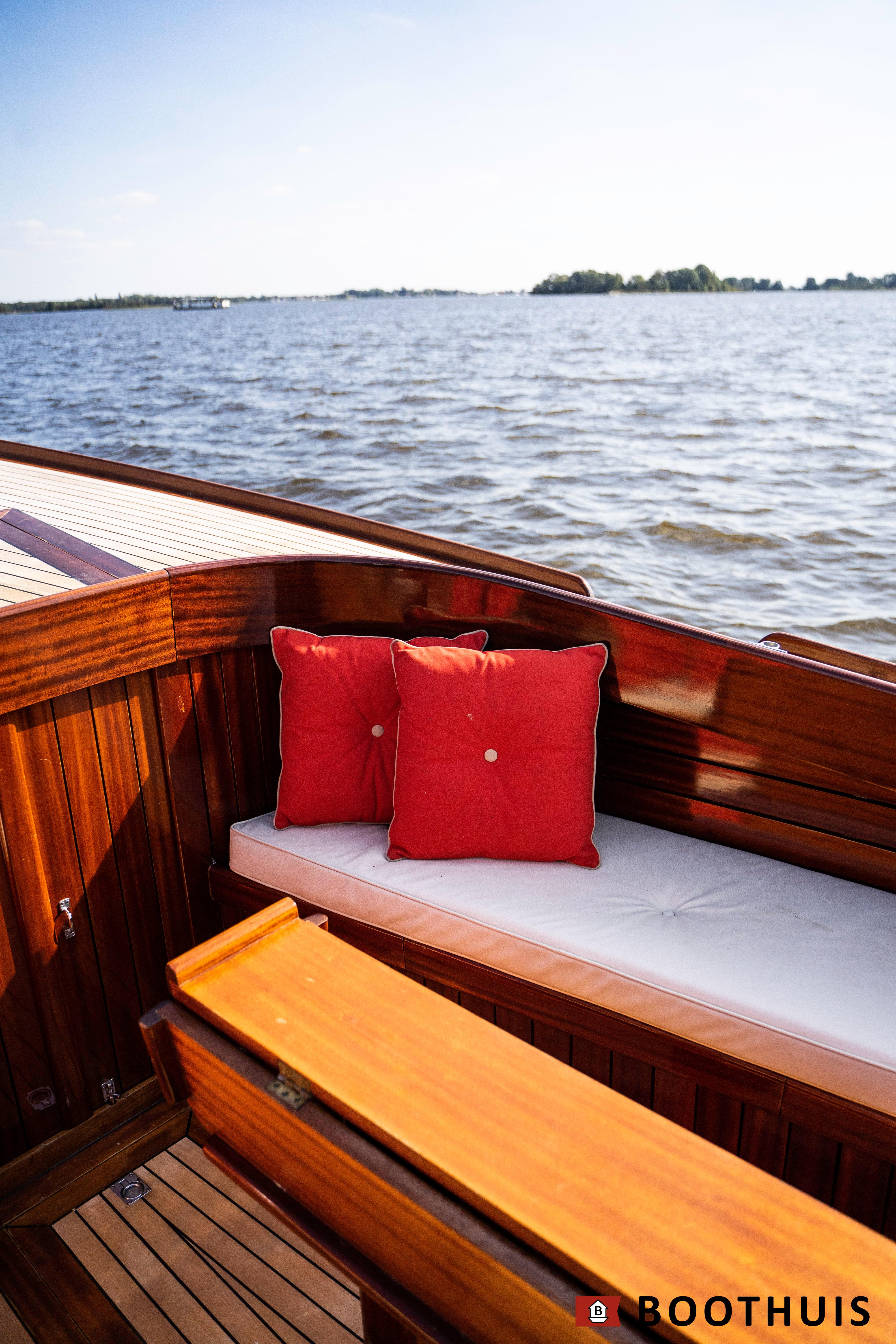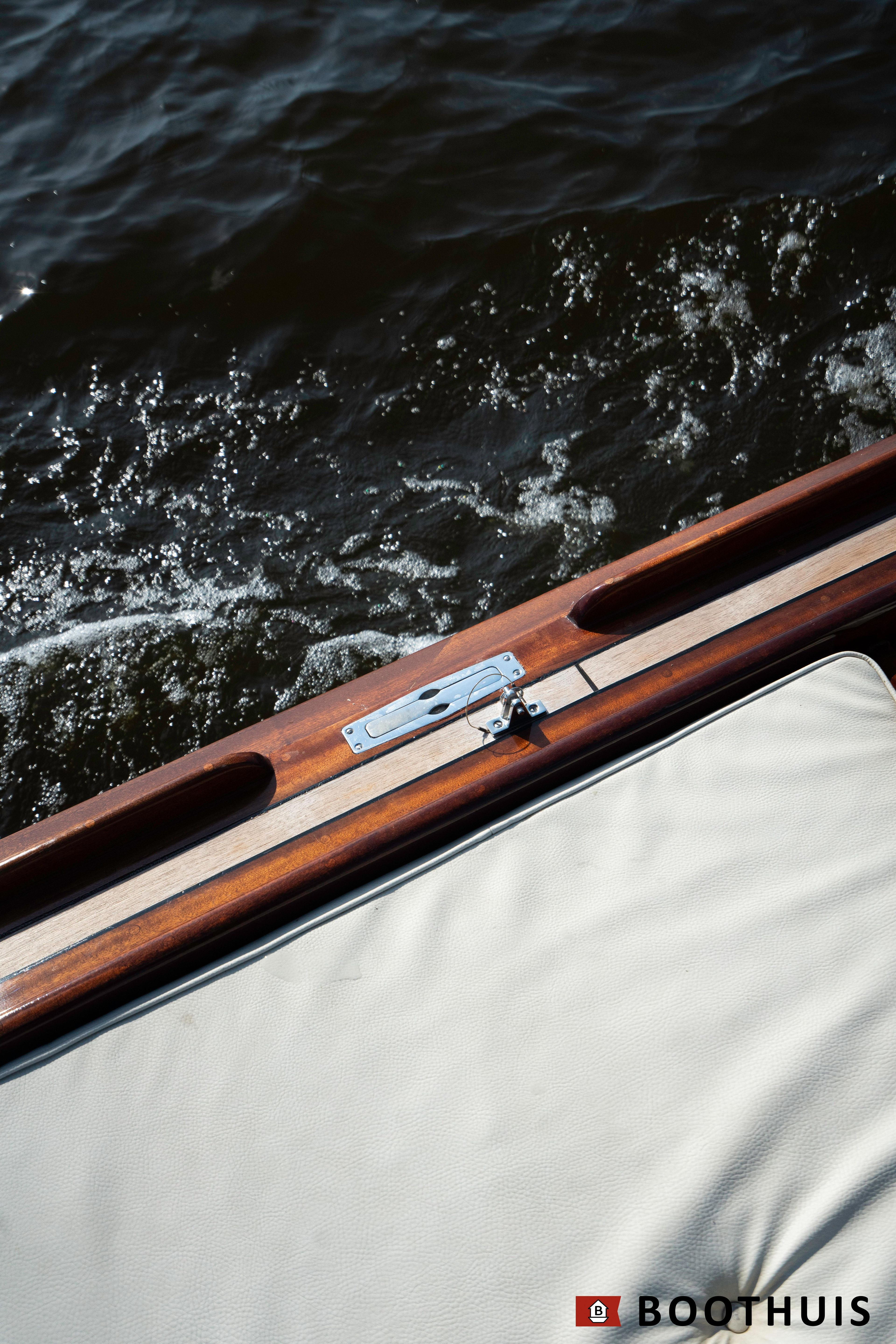Een van de meest iconische dagboten. Ze vaart heerlijk rustig voor een tochtje over de Vecht of desgewenst snel over het IJsselmeer. De Yanmar doet in alle rust zijn werk, mede dankzij een extra geluidsisolerende kist.