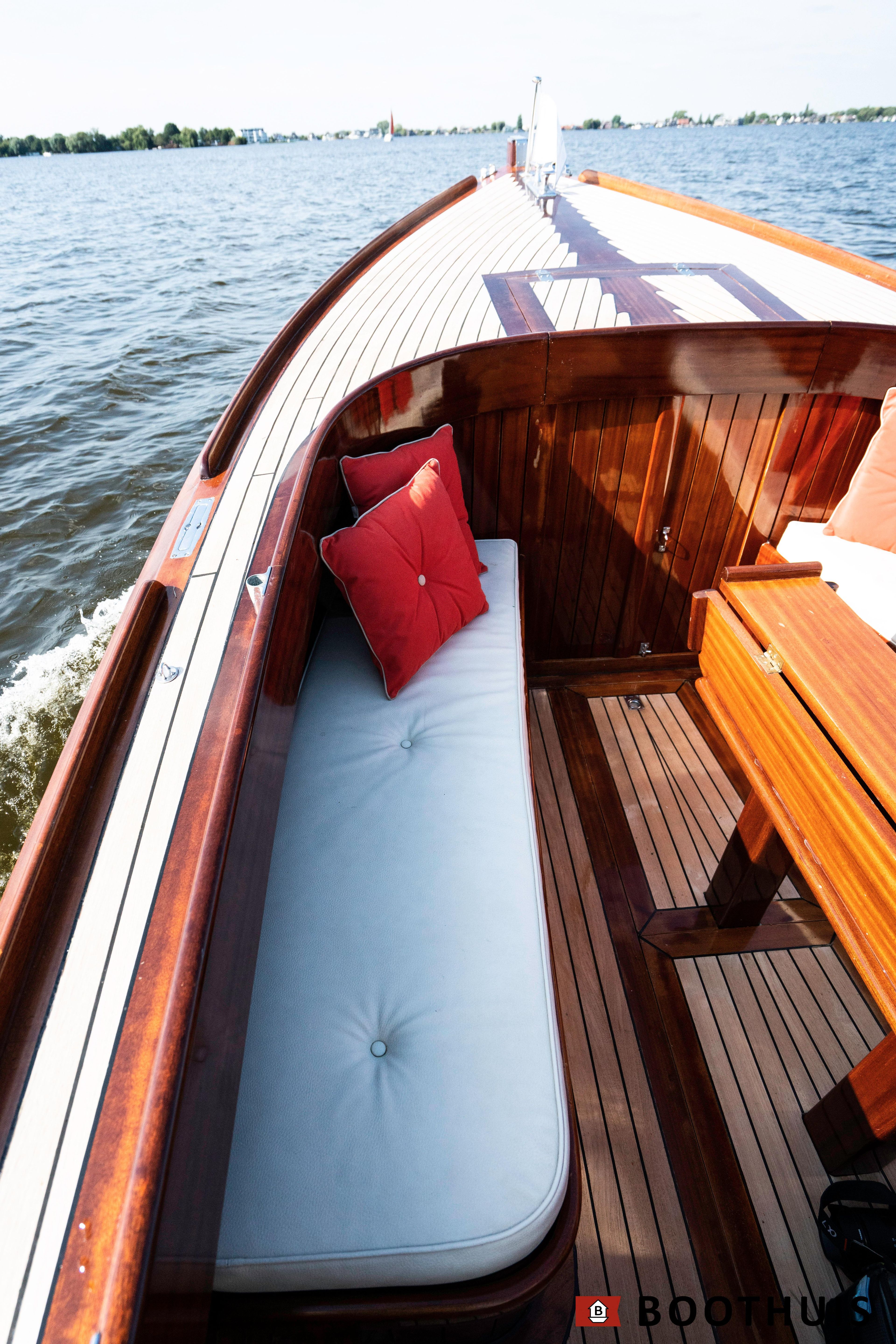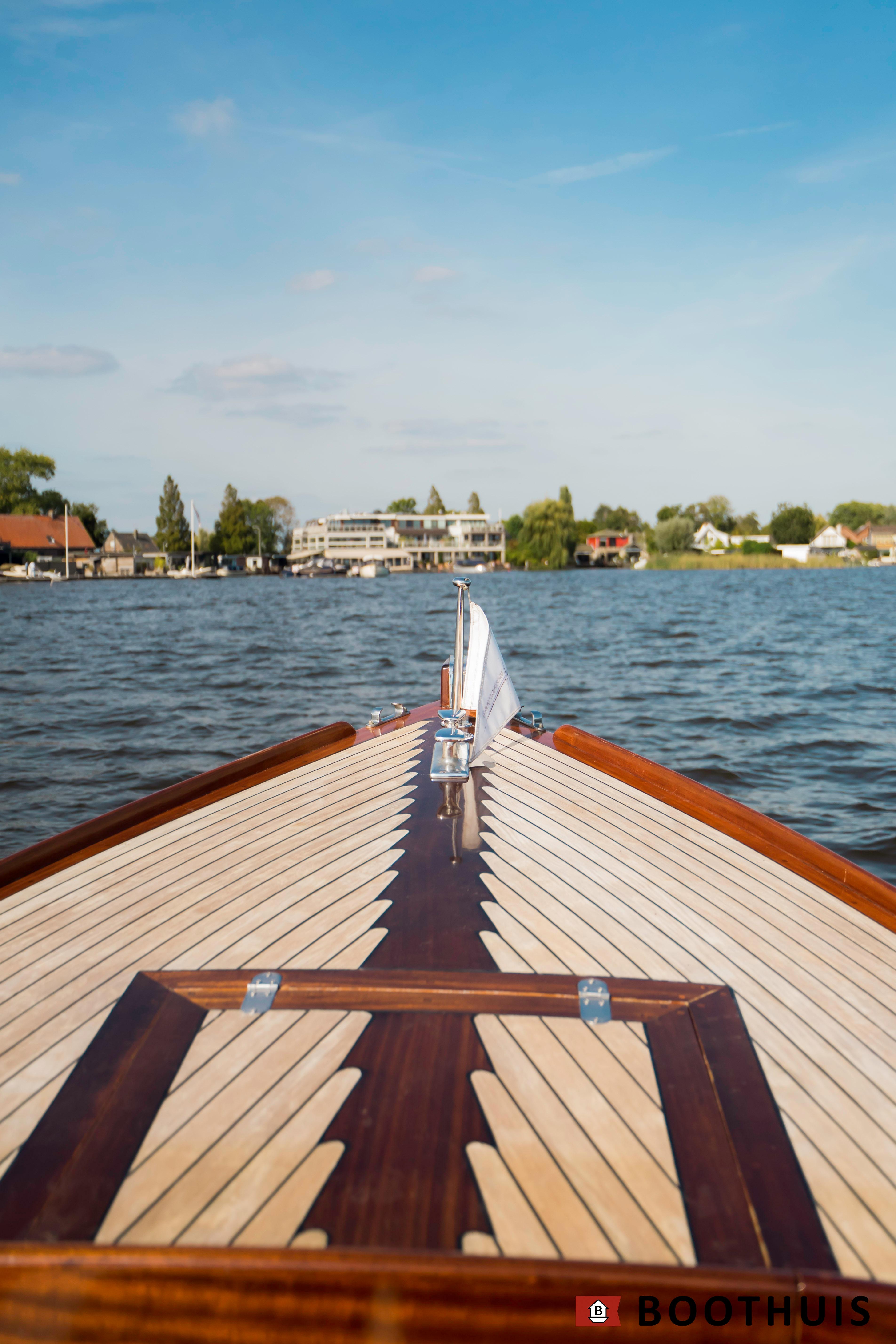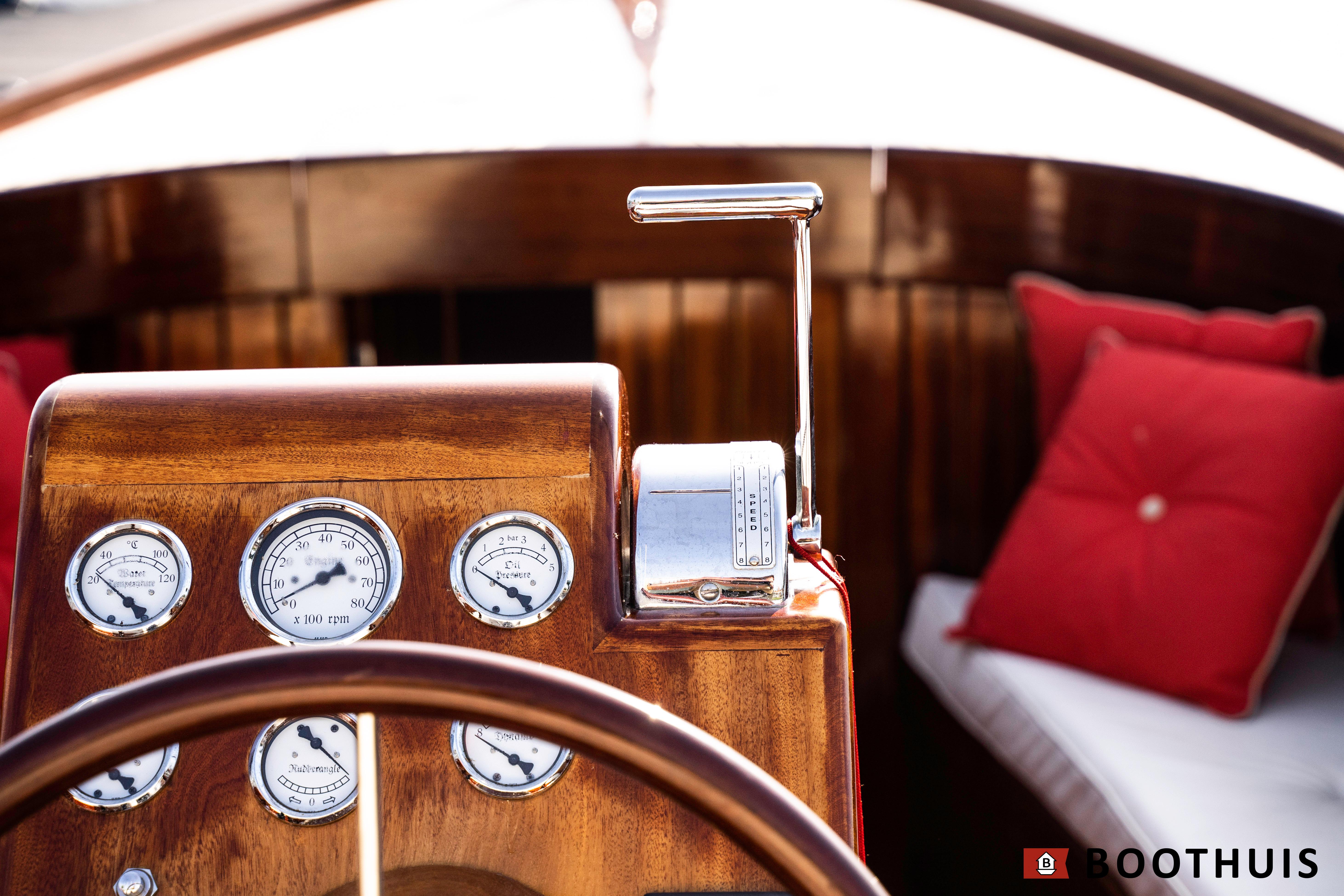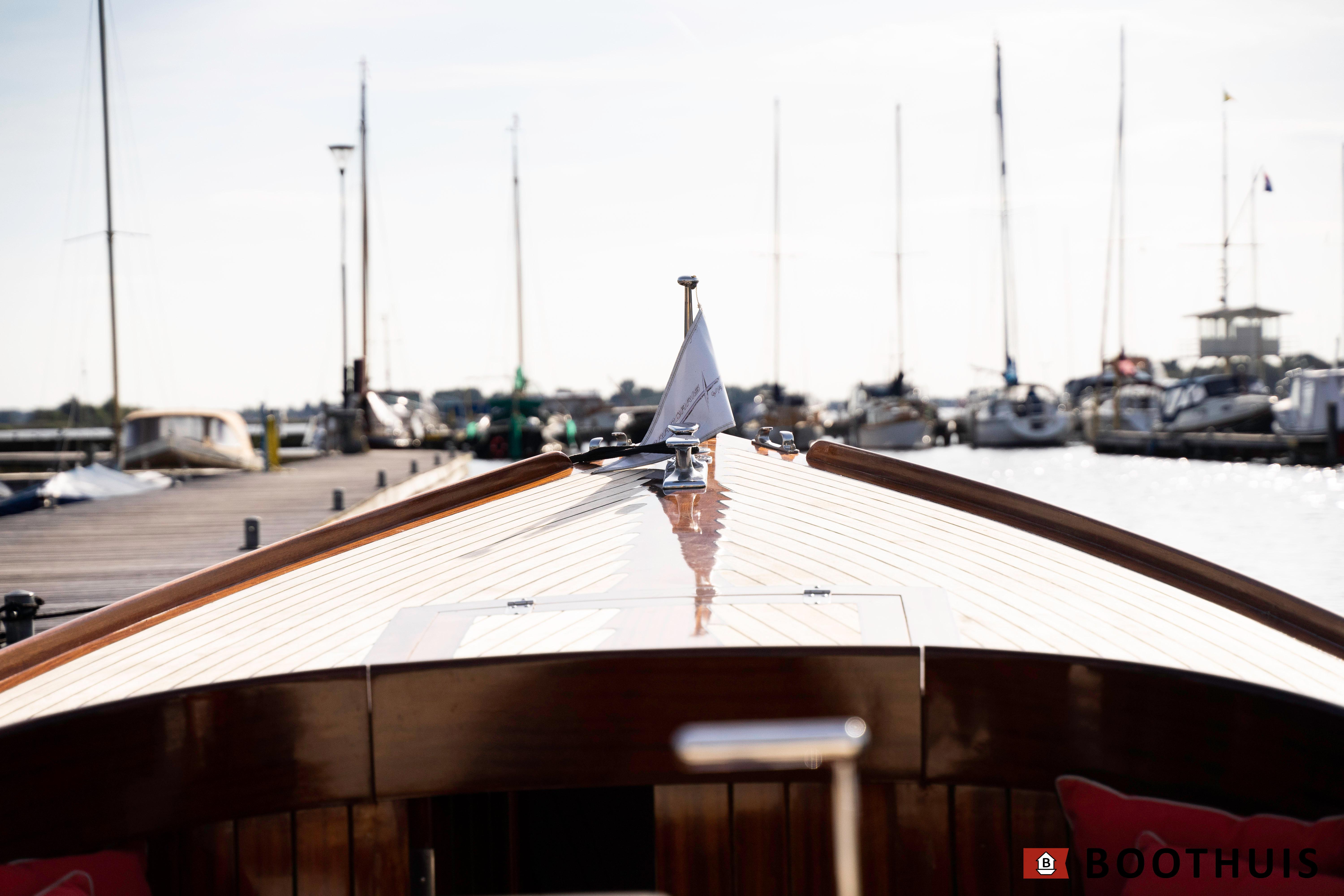 Een van de meest iconische dagboten. Ze vaart heerlijk rustig voor een tochtje over de Vecht of desgewenst snel over het IJsselmeer. De Yanmar doet in alle rust zijn werk, mede dankzij een extra geluidsisolerende kist.