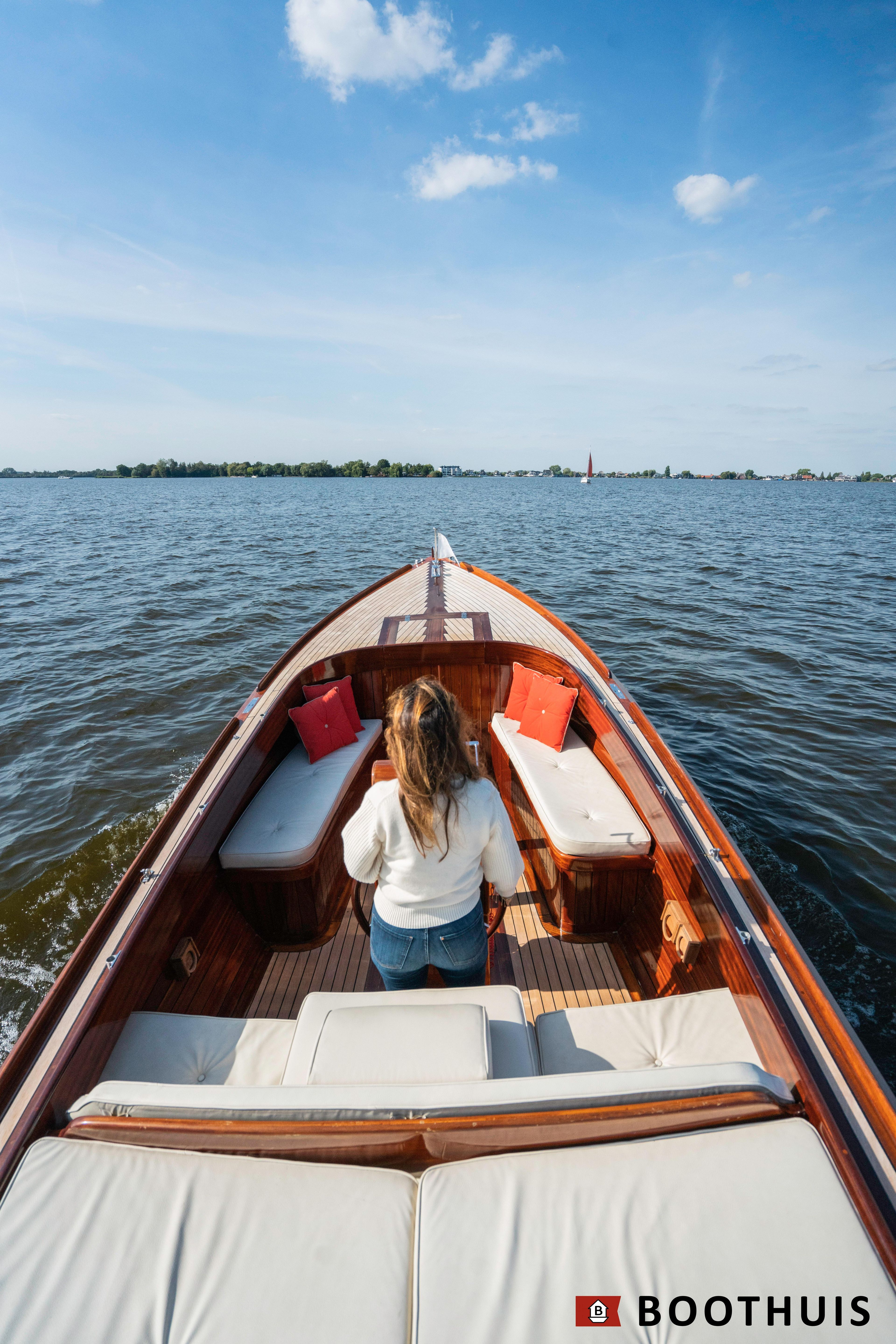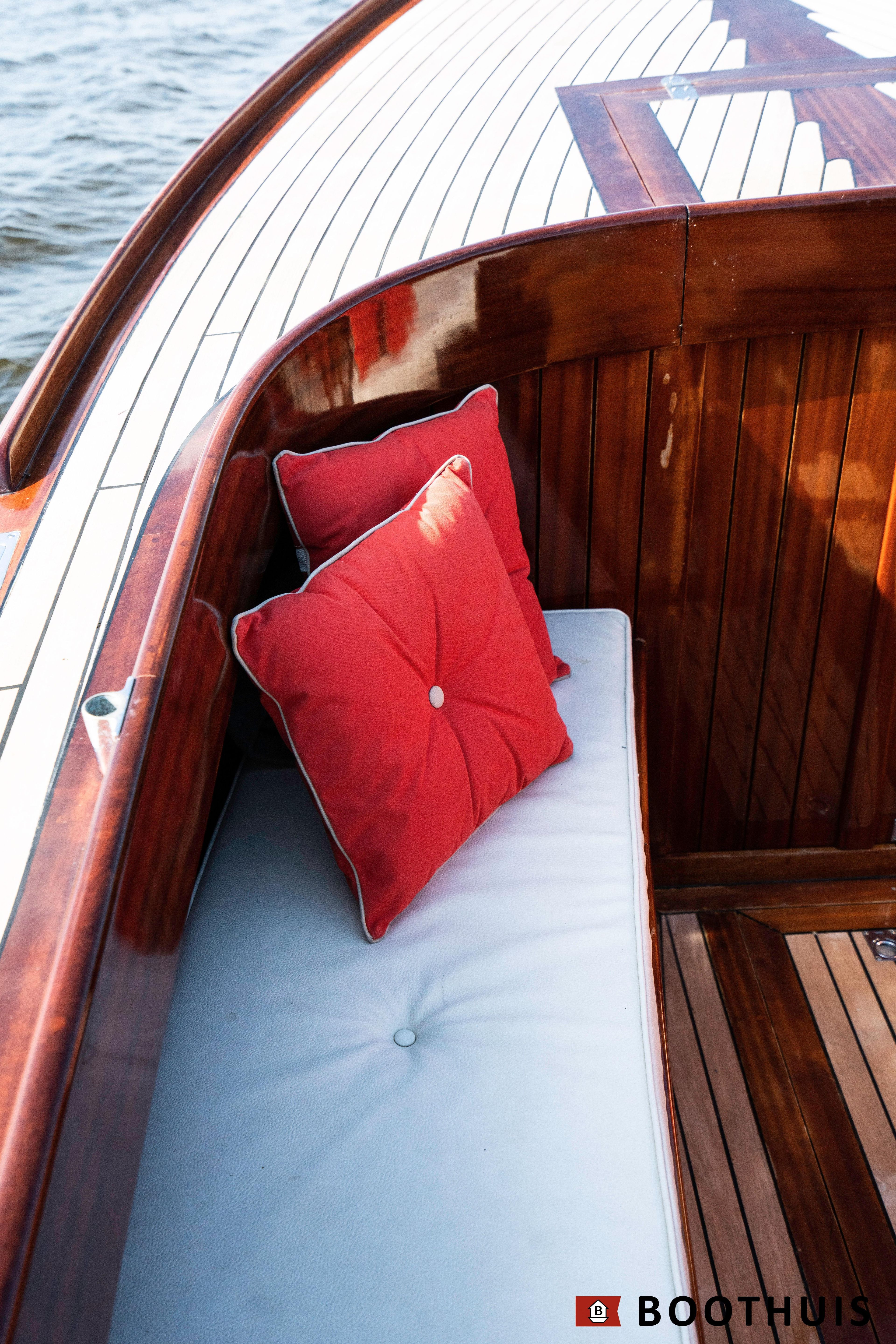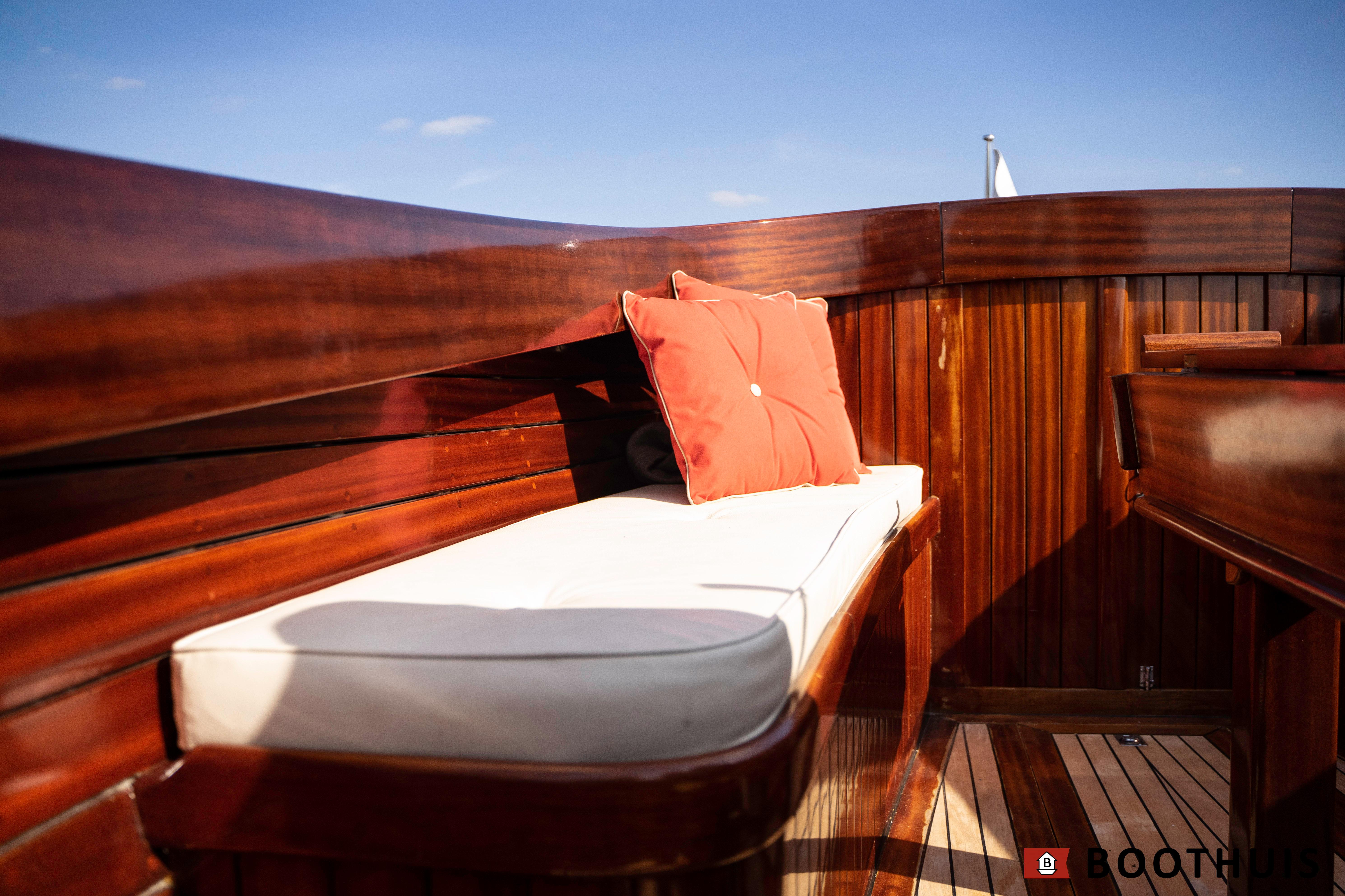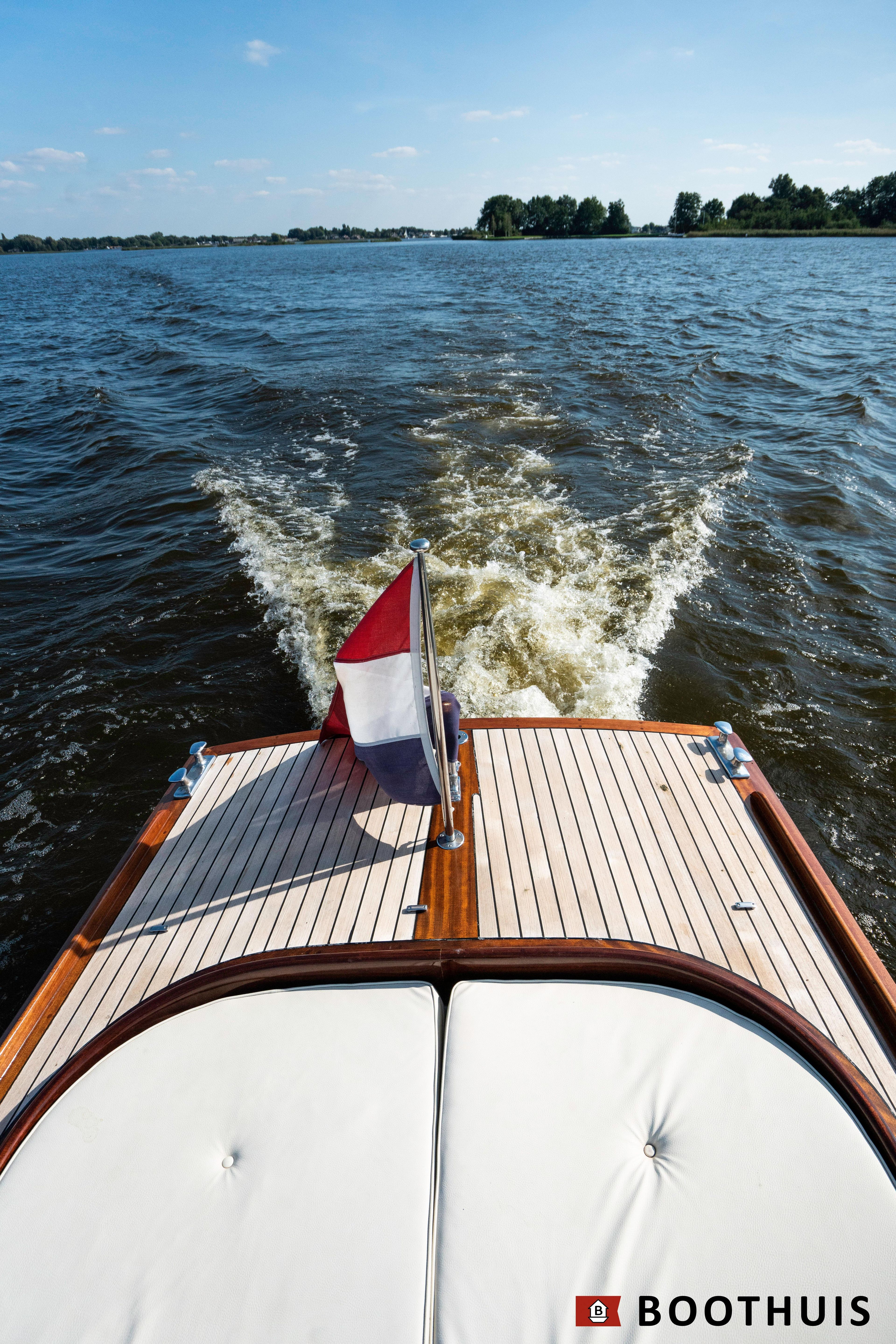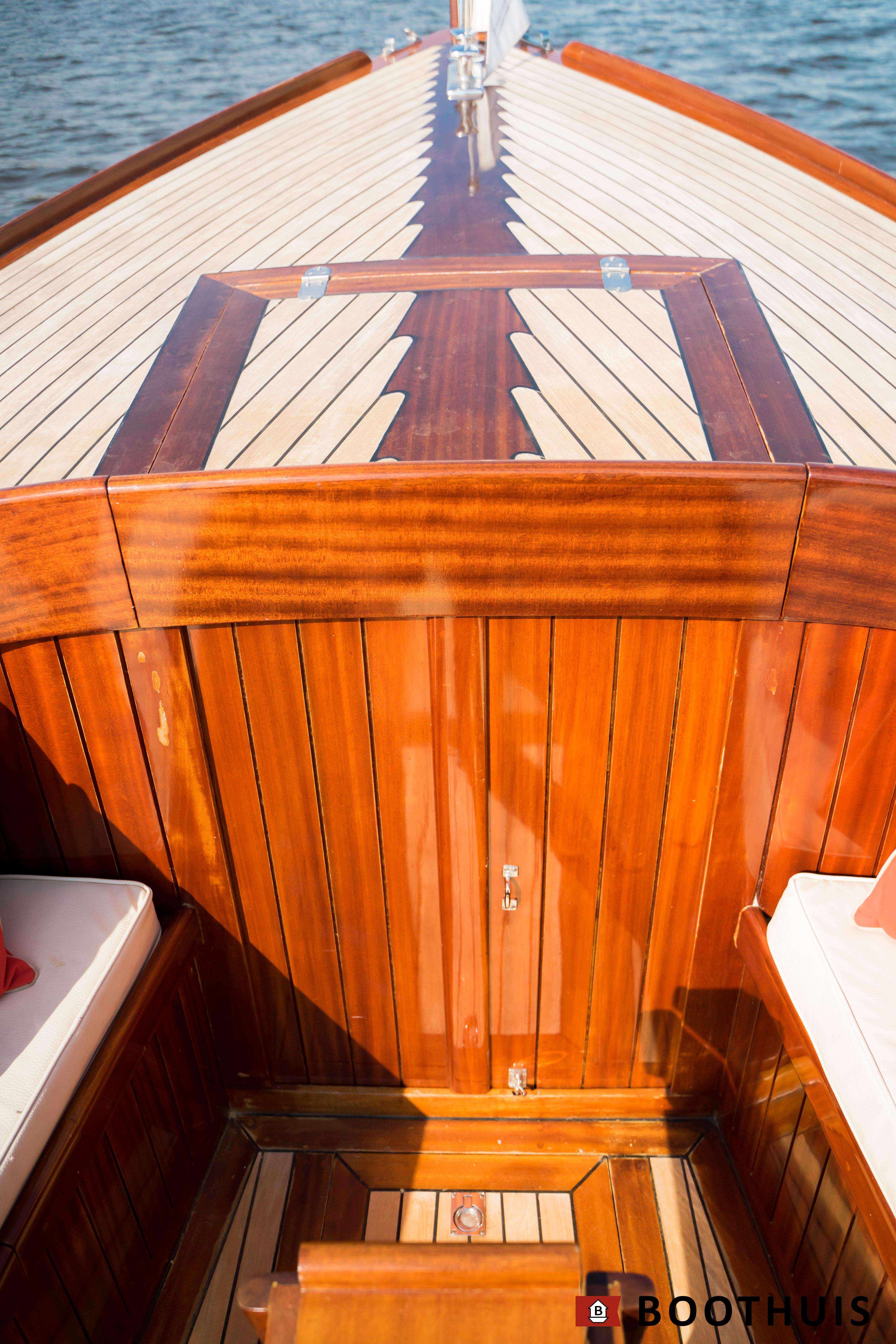 Een van de meest iconische dagboten. Ze vaart heerlijk rustig voor een tochtje over de Vecht of desgewenst snel over het IJsselmeer. De Yanmar doet in alle rust zijn werk, mede dankzij een extra geluidsisolerende kist.