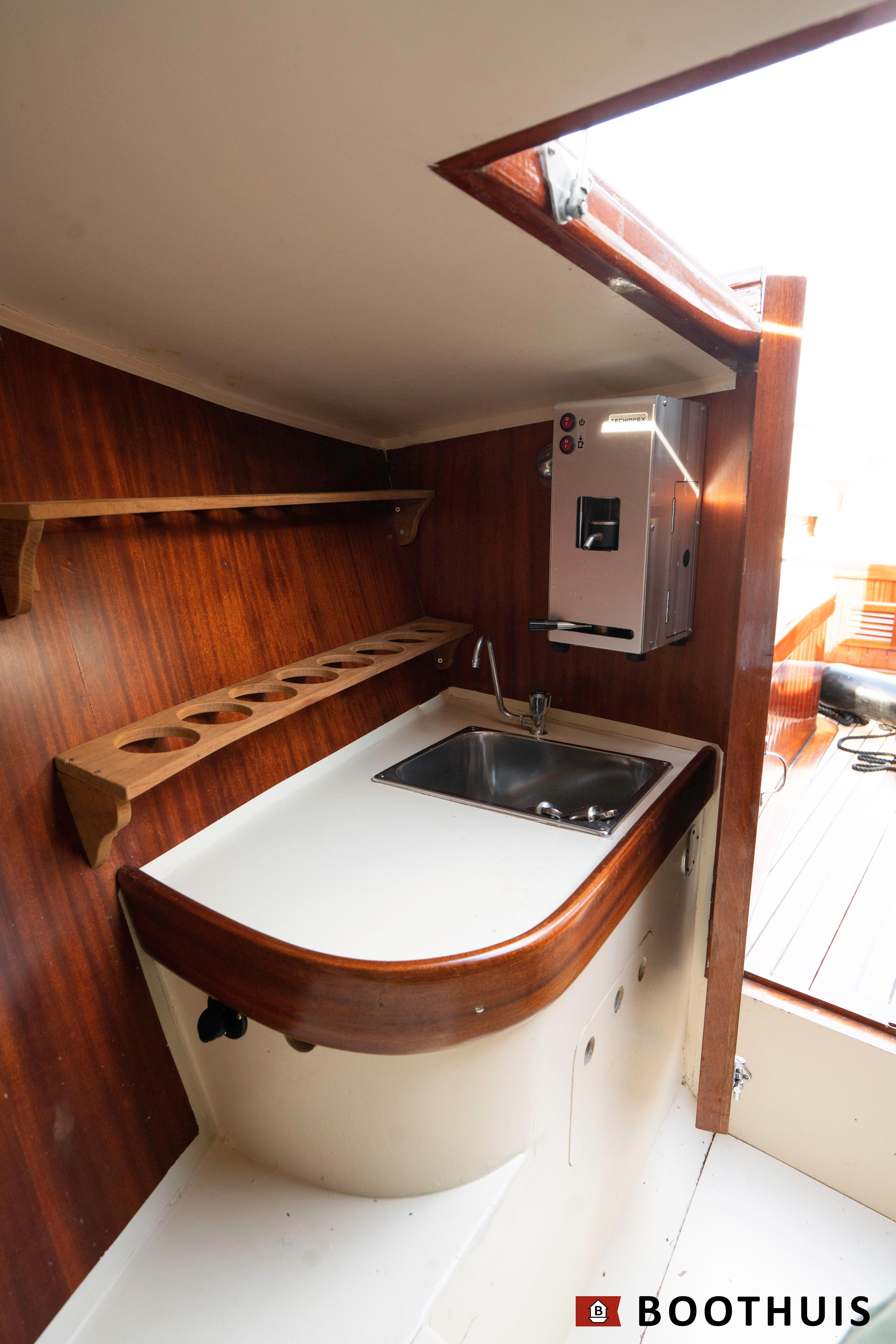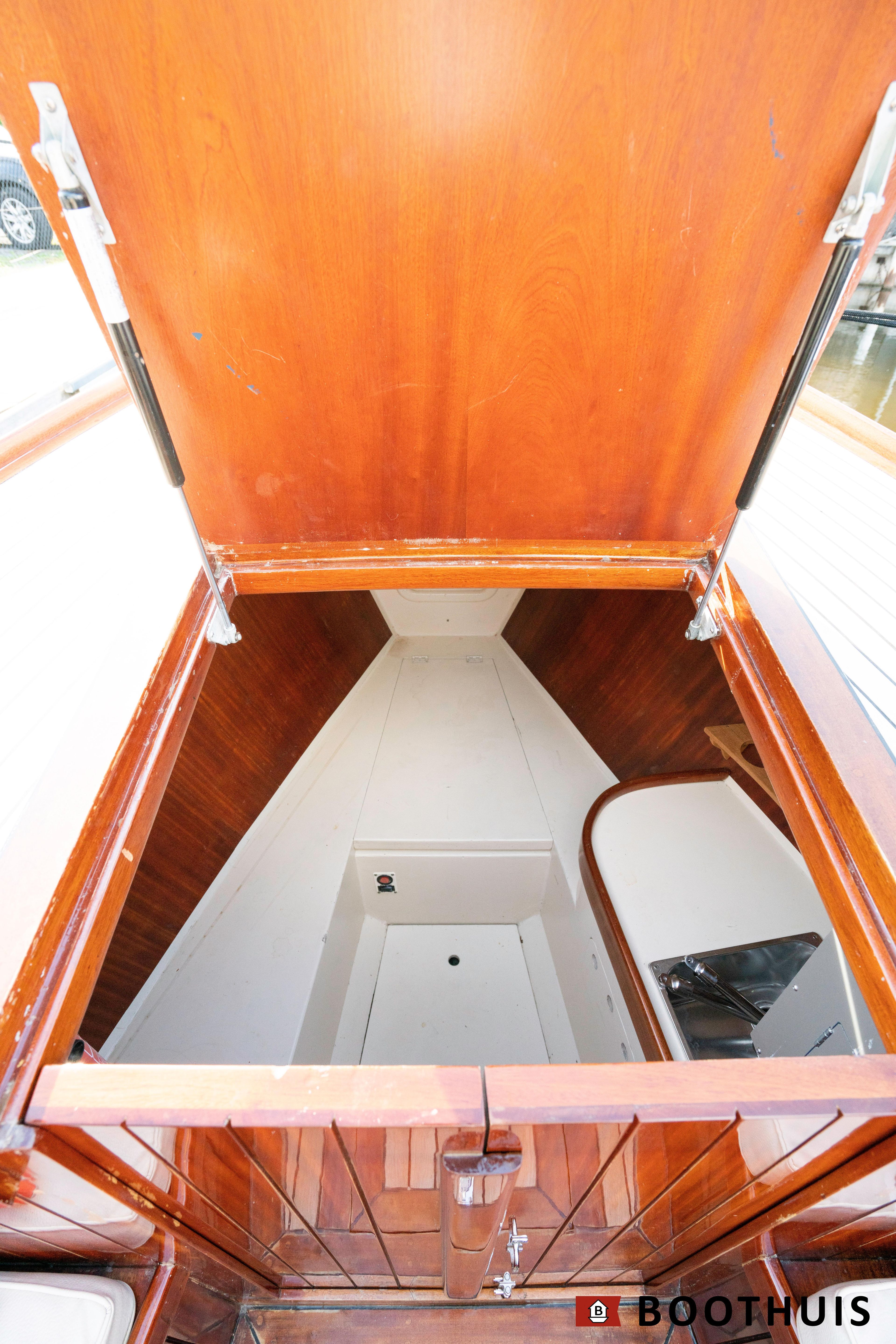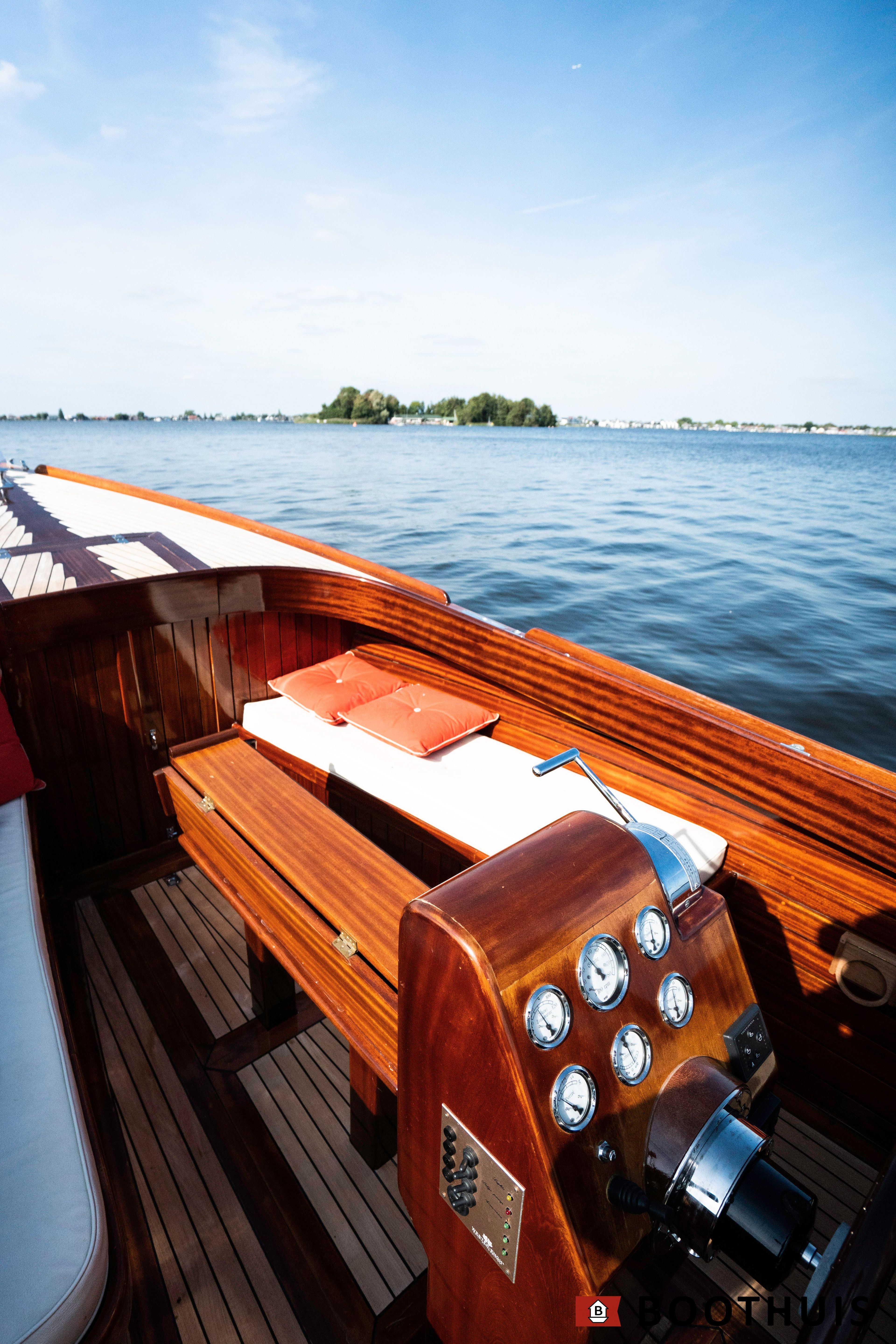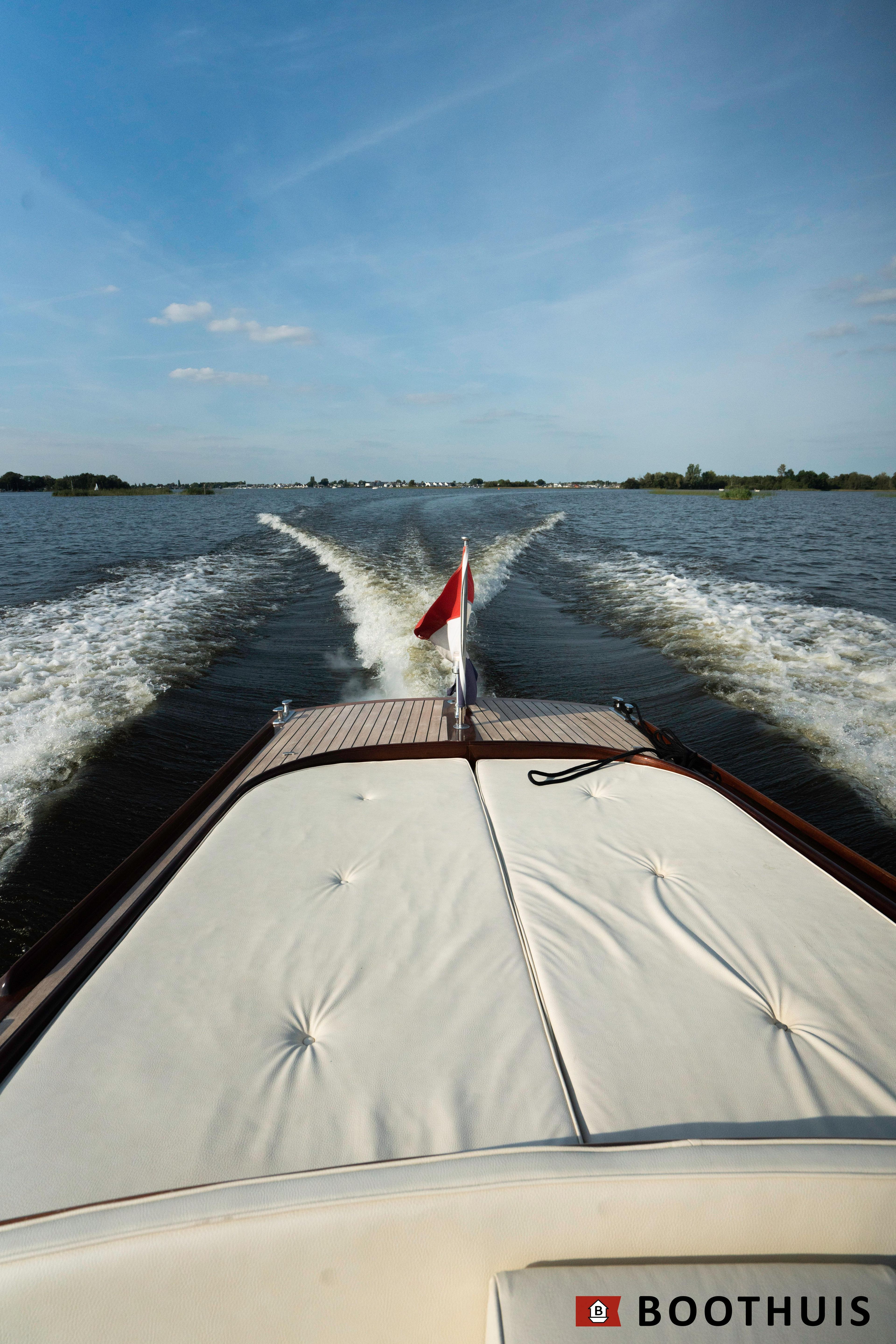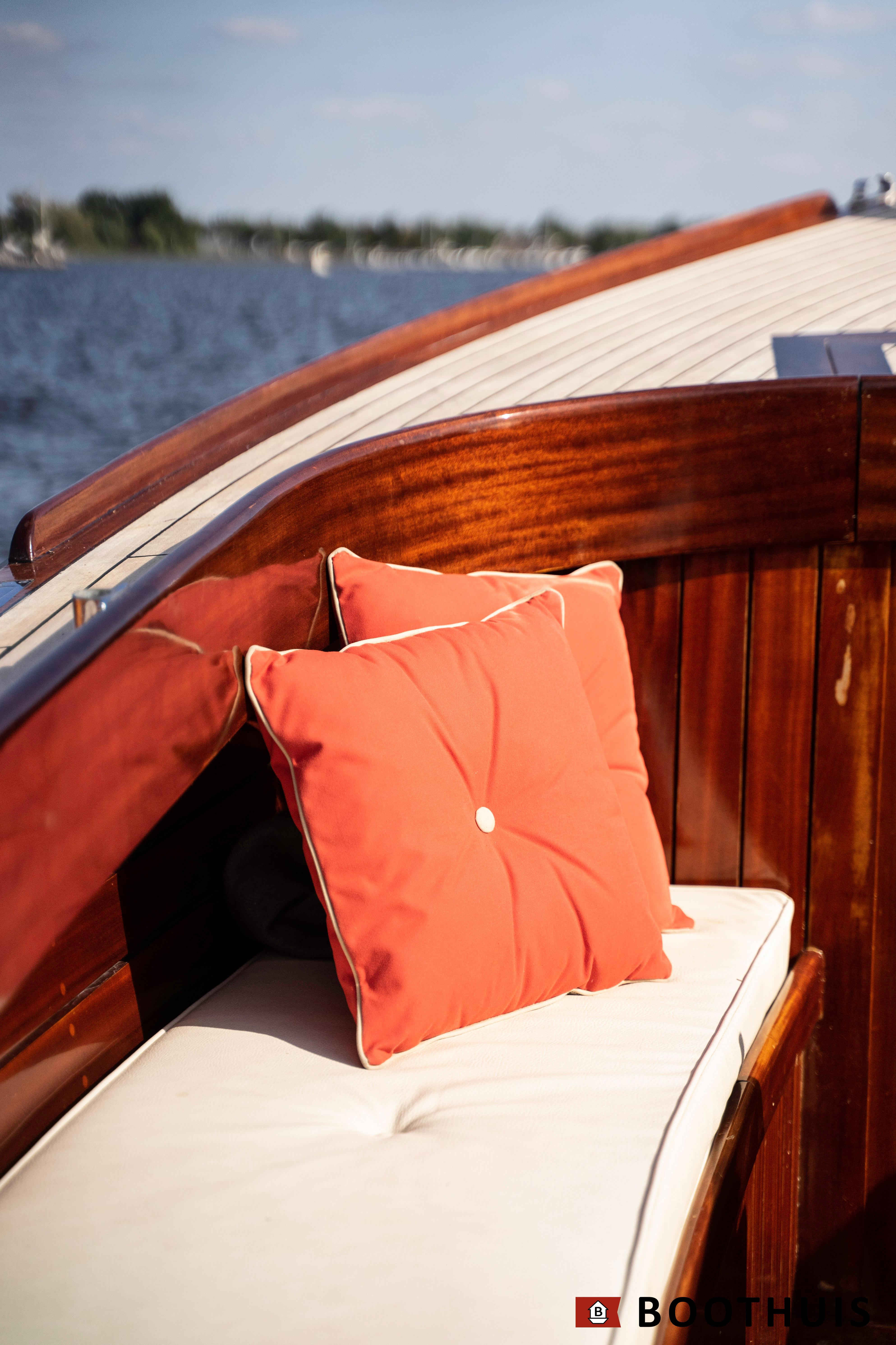 Een van de meest iconische dagboten. Ze vaart heerlijk rustig voor een tochtje over de Vecht of desgewenst snel over het IJsselmeer. De Yanmar doet in alle rust zijn werk, mede dankzij een extra geluidsisolerende kist.
