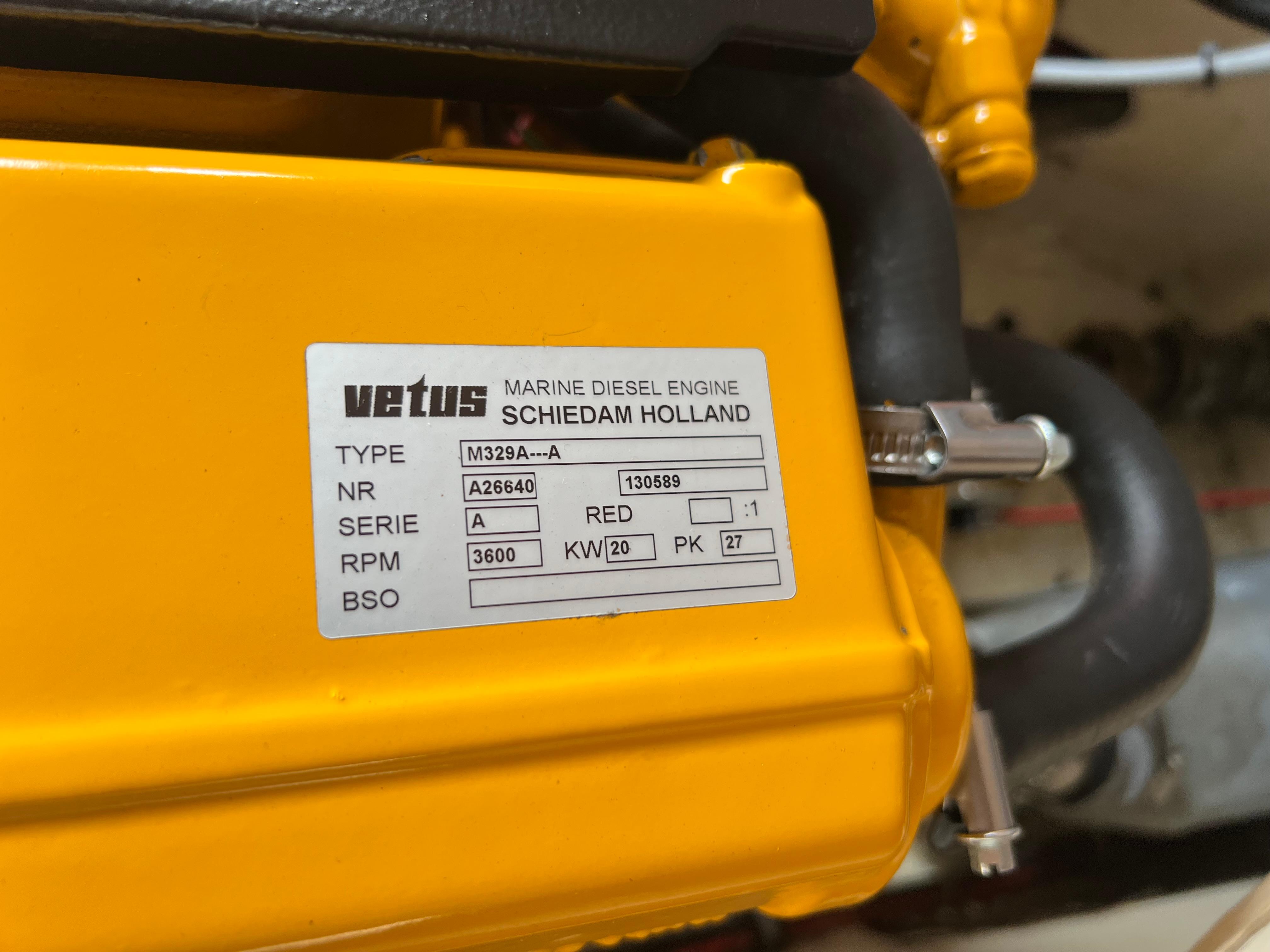 De zo goed als nieuwe Vetus 3 cilinder diesel is goed geïsoleerd zodat het motorgeluid tot een minimum beperkt blijft.