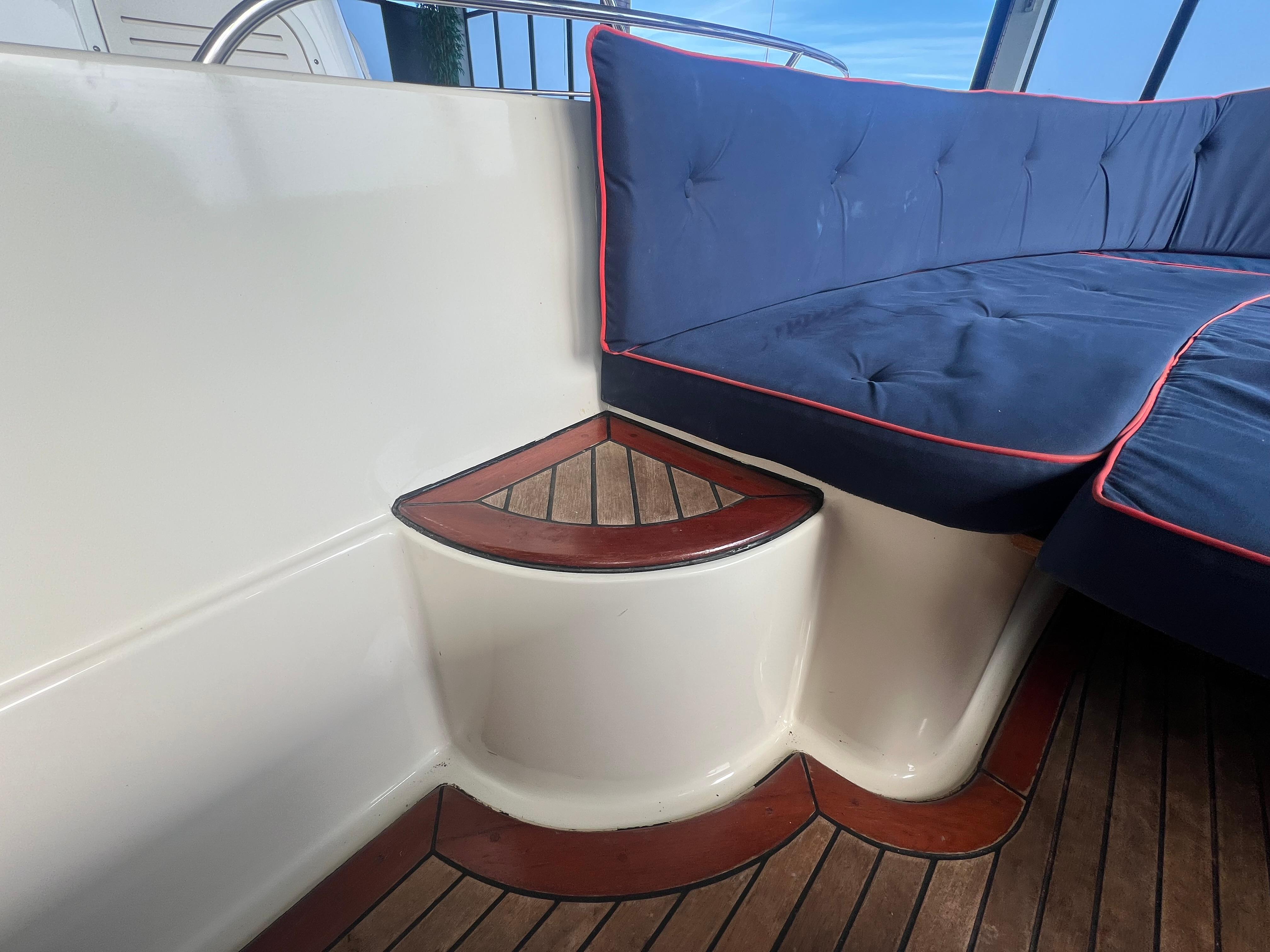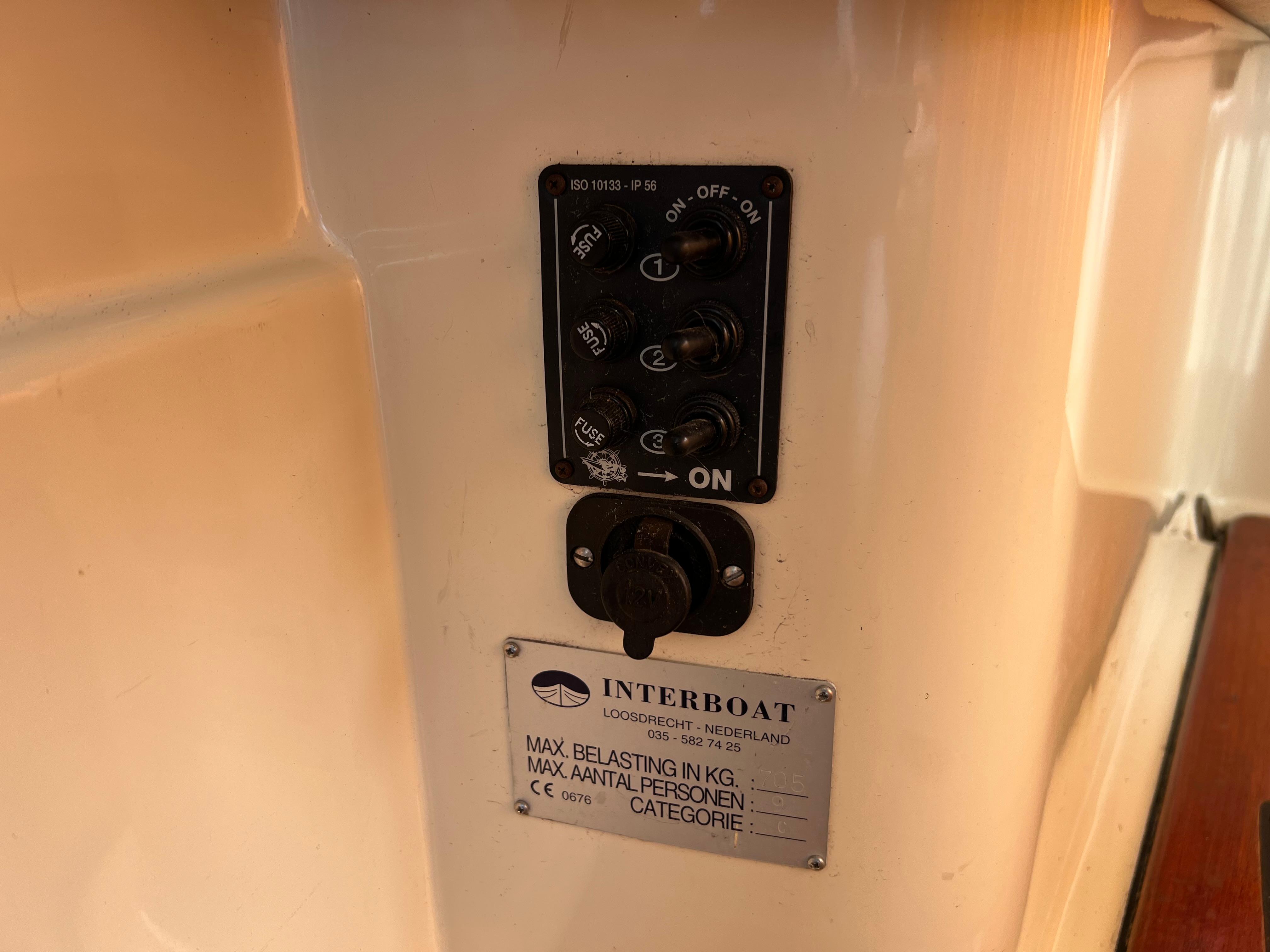 De Interboat is voorzien van een volledig afsluitbare buiskap, complete kussenset met zonnedek, kabelaring met kopleguaan, teakhouten dek, teakhouten kuipvloer, teakhouten stootlijst, bekerhouders, kompas, biminitop, instaphulp, handmatige lenspomp, veel opbergruimte, demontabele zwemtrap, navigatieverlichting, lijnen, fenders en een anker.