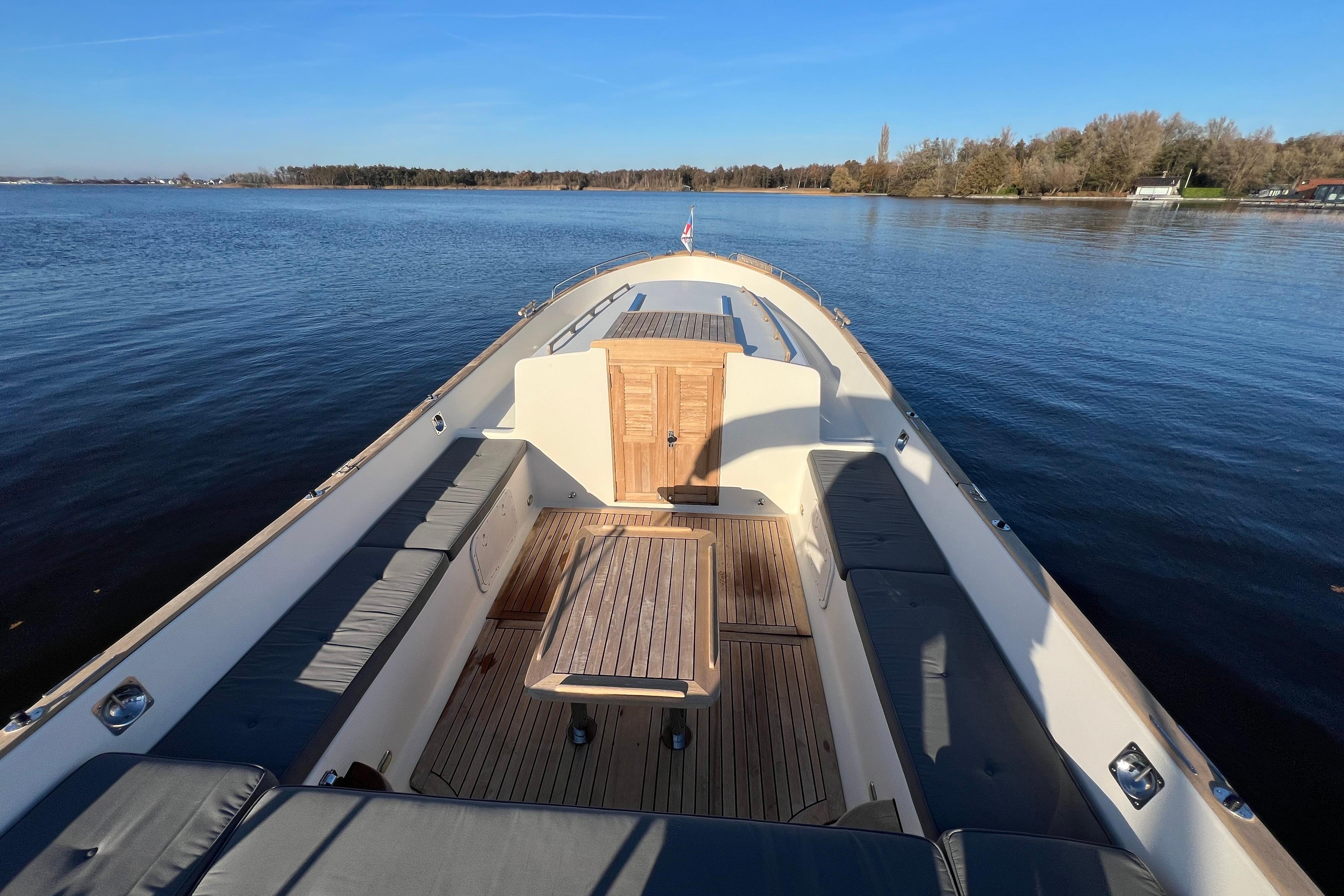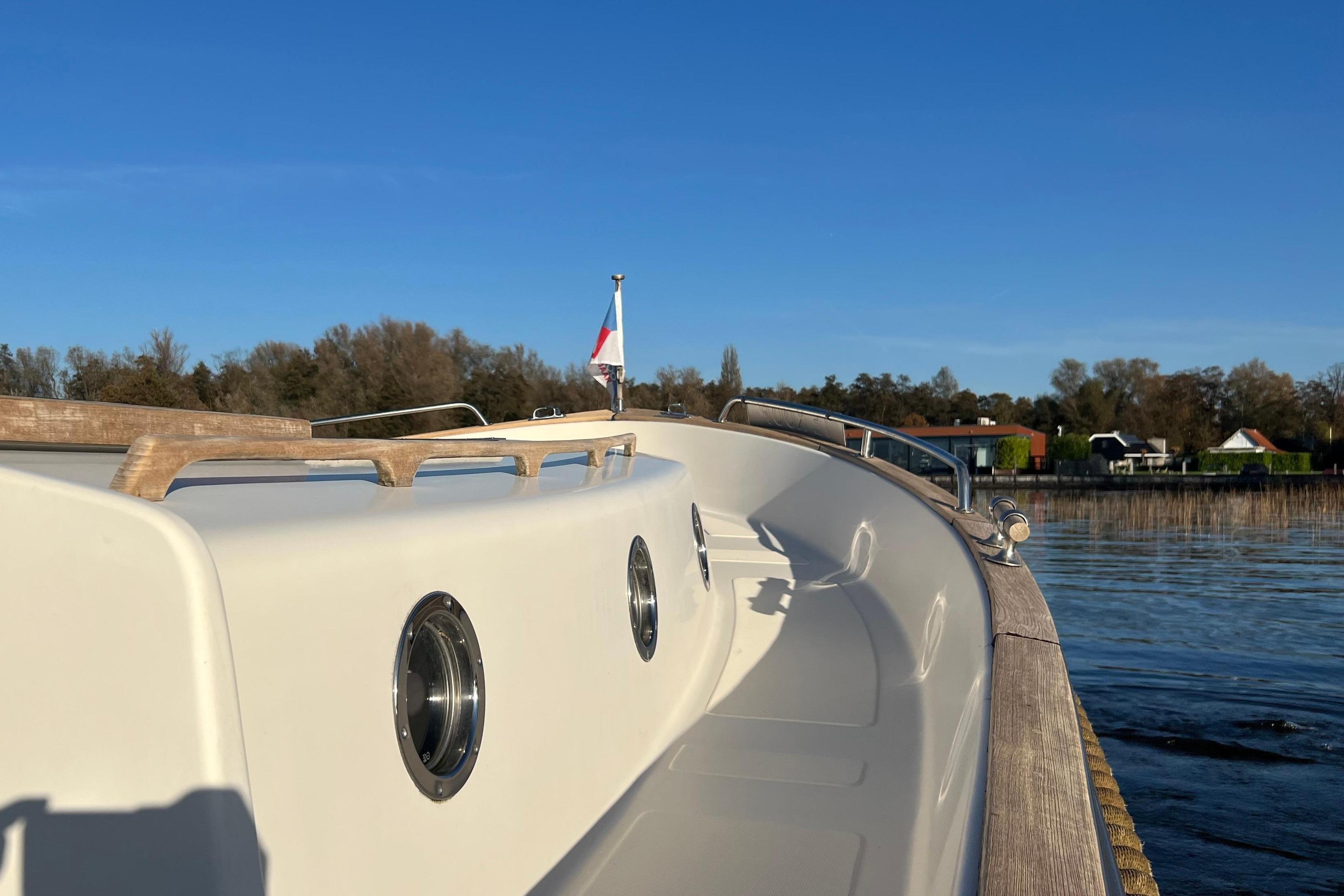 De Jan van Gent is voorzien van een complete kussenset, zonnedek, biminitop, elektrisch toilet, bekerhouders, boegschroef, kuipverlichting, douche-installatie, zwemplateau inclusief zwemtrap, koelkast, kuiptafel, wasbak, dekwaspomp, teak vloer, veel opbergruimte, stuurstandhoes, 220 aansluiting, diverse 12V aansluitingen, walstroomaansluiting, navigatieverlichting, anker, lijnen en fenders.